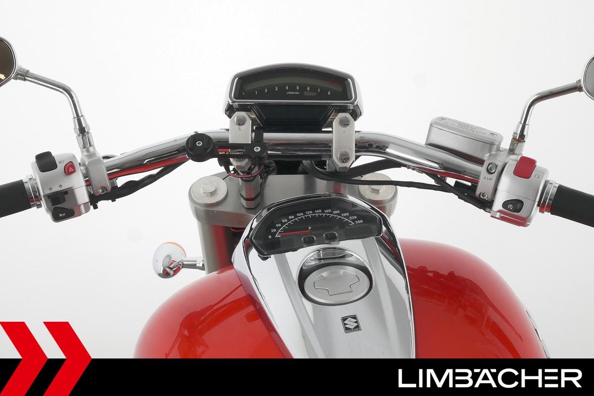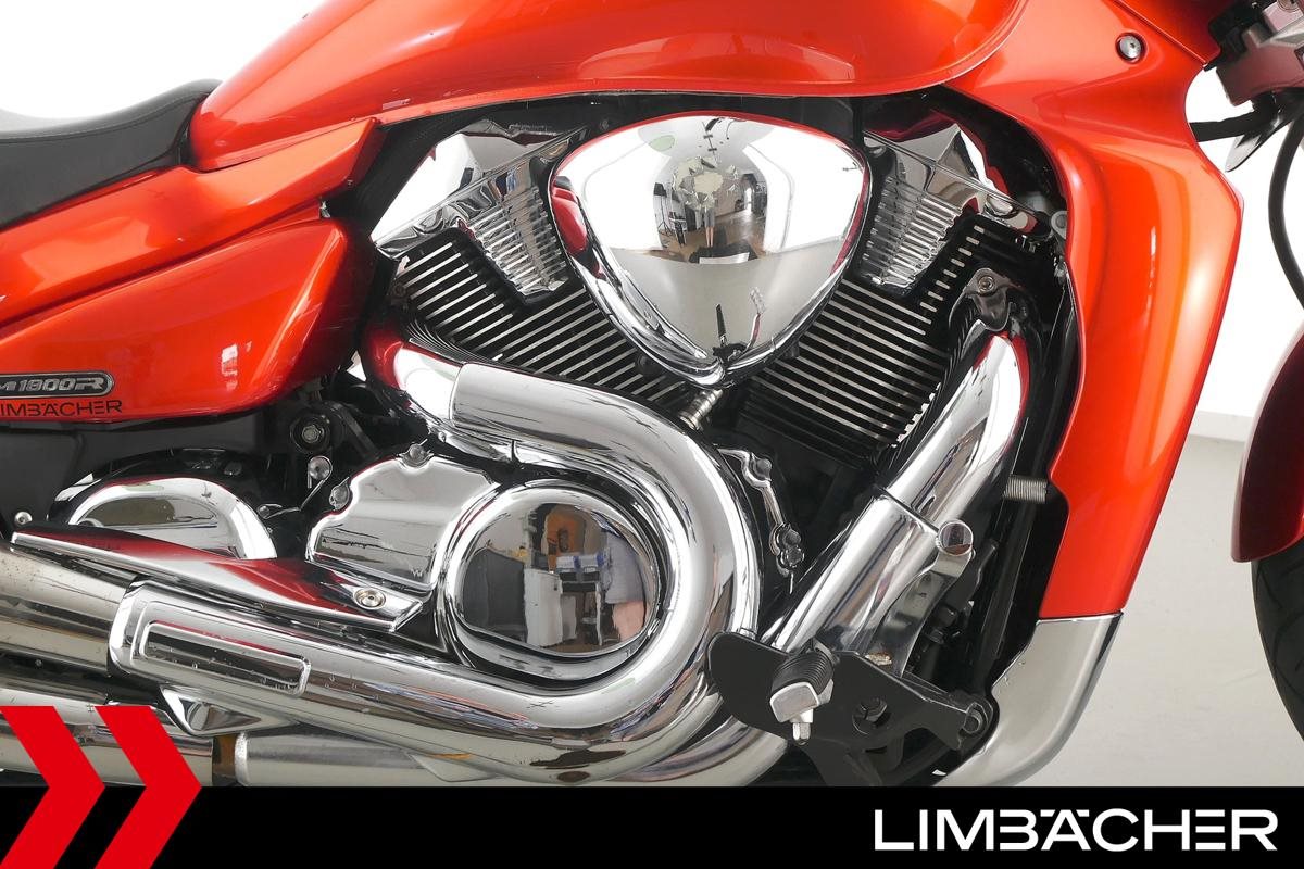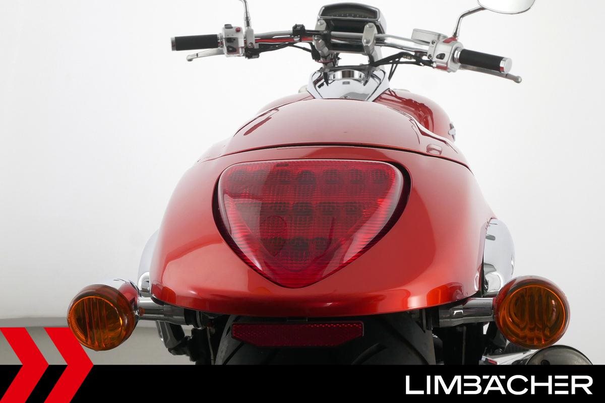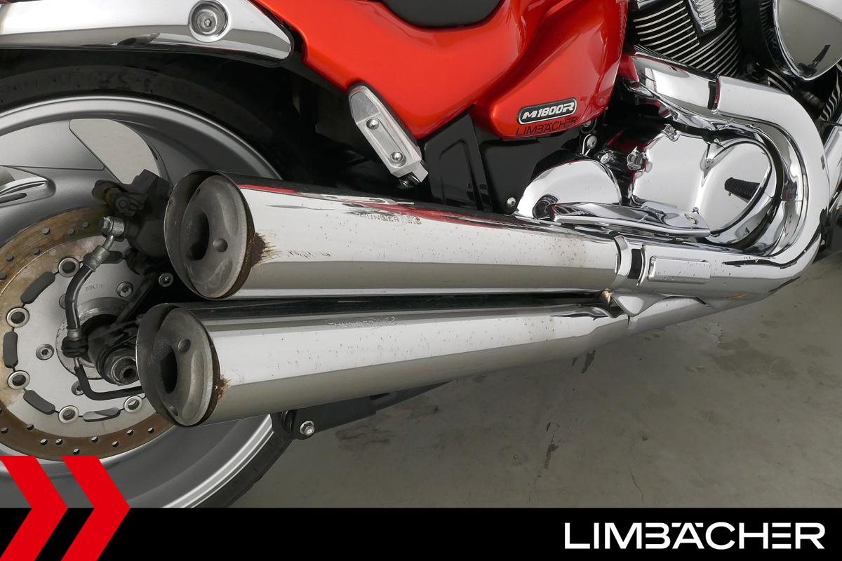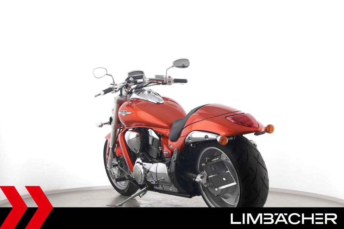 Eine Suzuki VZR M 1800 R Intruder in gebrauchtem Zustand u.a. mit Thunderbike-Endschalldämpfer sowie seitlichem Kennzeichenhalter.