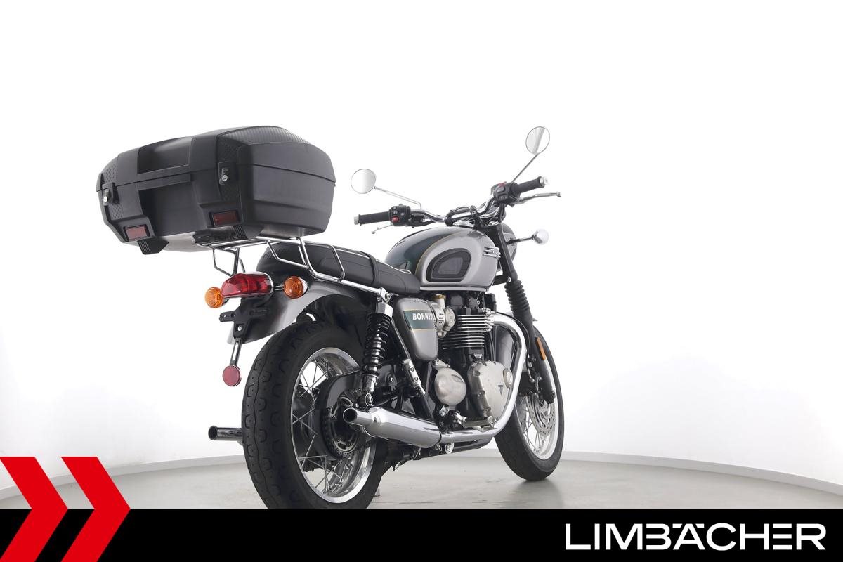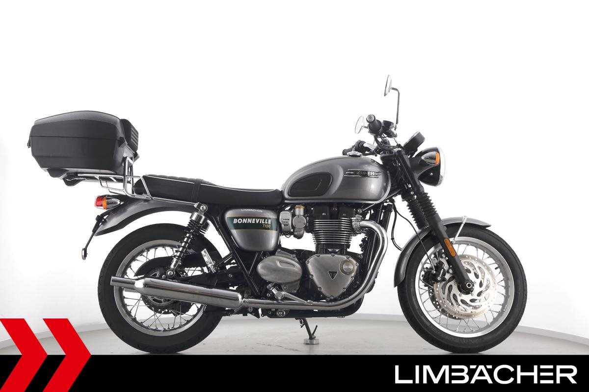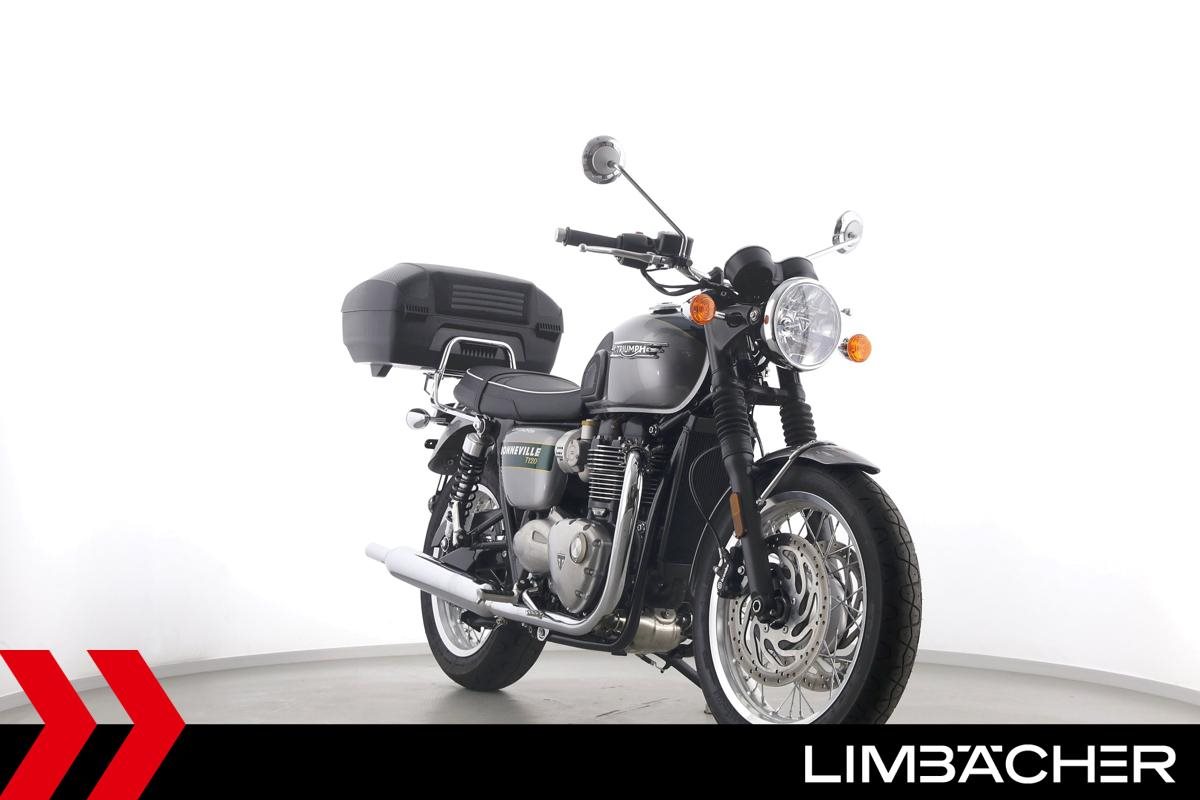 Eine scheckheftgepflegte Triumph Bonneville T120 aus erster Hand in sehr gepflegtem Zustand u.a. mit großem Hepco&Becker-Topcase und Temporegelung.