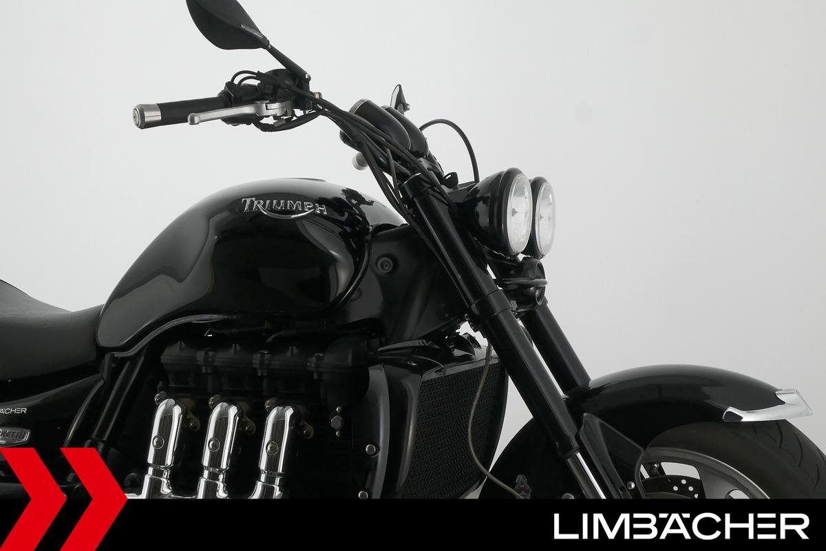 Eine Triumph Rocket III in gepflegtem Zustand u.a. mit kurzem Kennzeichenhalter sowie Highsider-Spiegel.