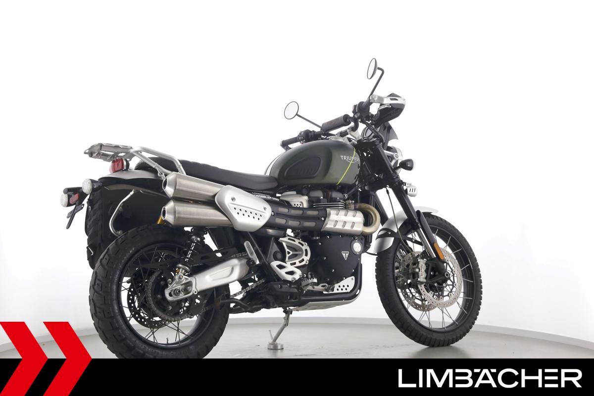 Eine scheckheftgepflegte Triumph Scrambler 1200 XC aus erster Hand in gepflegtem Zustand u.a. mit LED Zusatzscheinwerfern sowie Öhlins-Federbeinen.