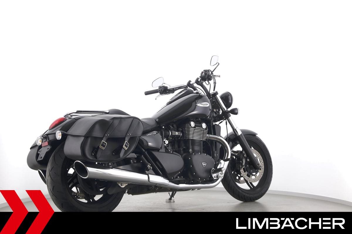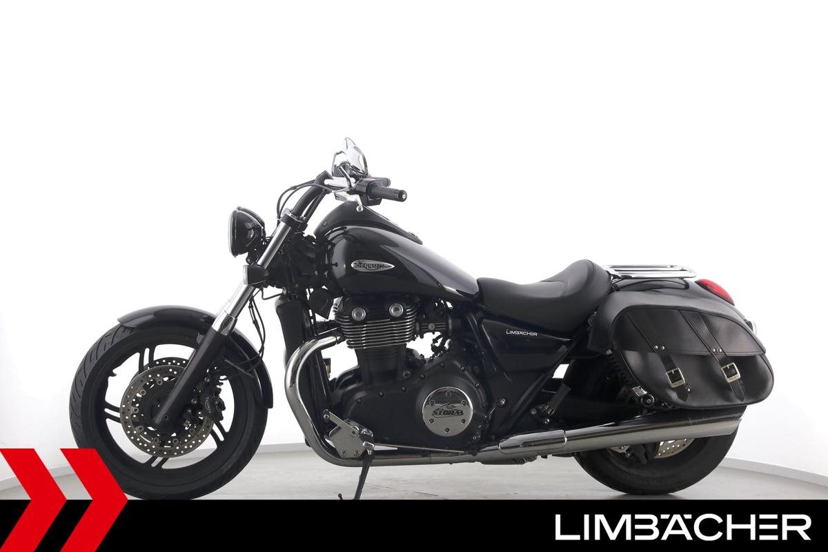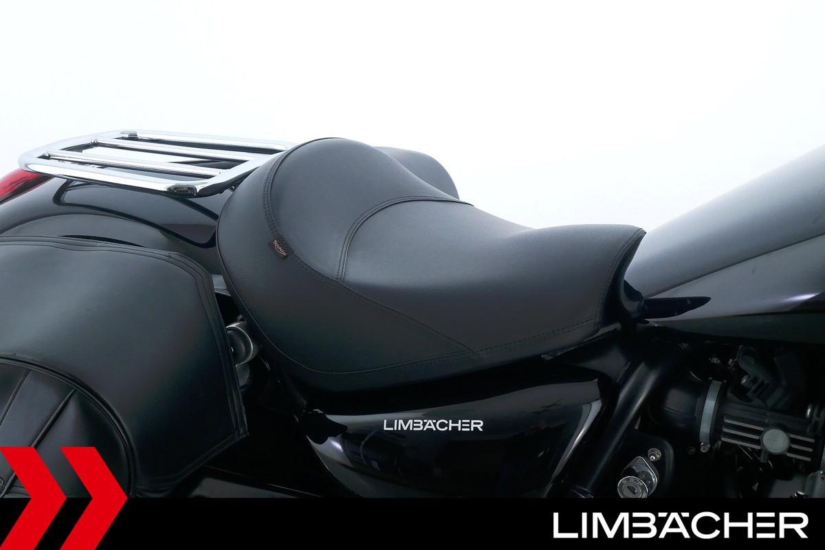 Eine Triumph Thunderbird Storm 1700 in sehr gepflegtem Zustand u.a. mit Chrom-Gepäcktrager sowie Triumph-Ledertaschen.