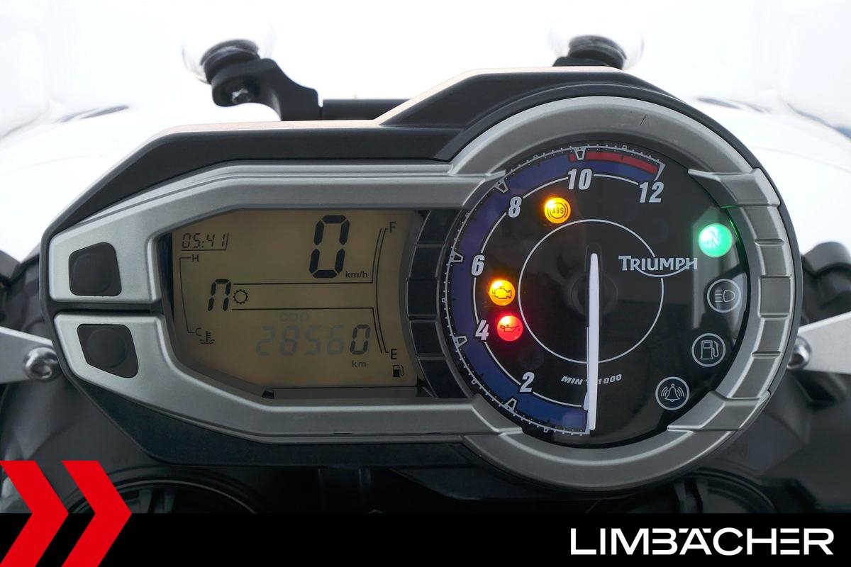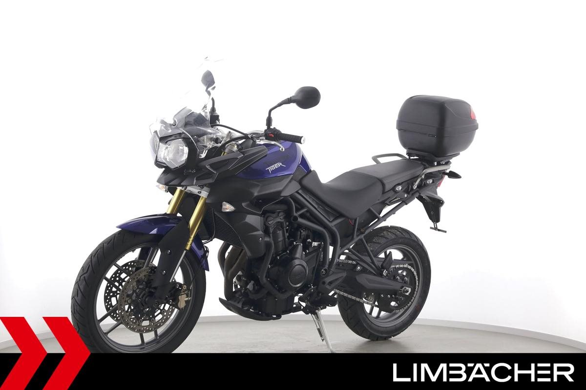 Eine scheckheftgepflegte Triumph Tiger 800 aus zweiter Hand in gepflegtem Zustand u.a. mit Arrow-Endschalldämpfer sowie Givi-Topcase.