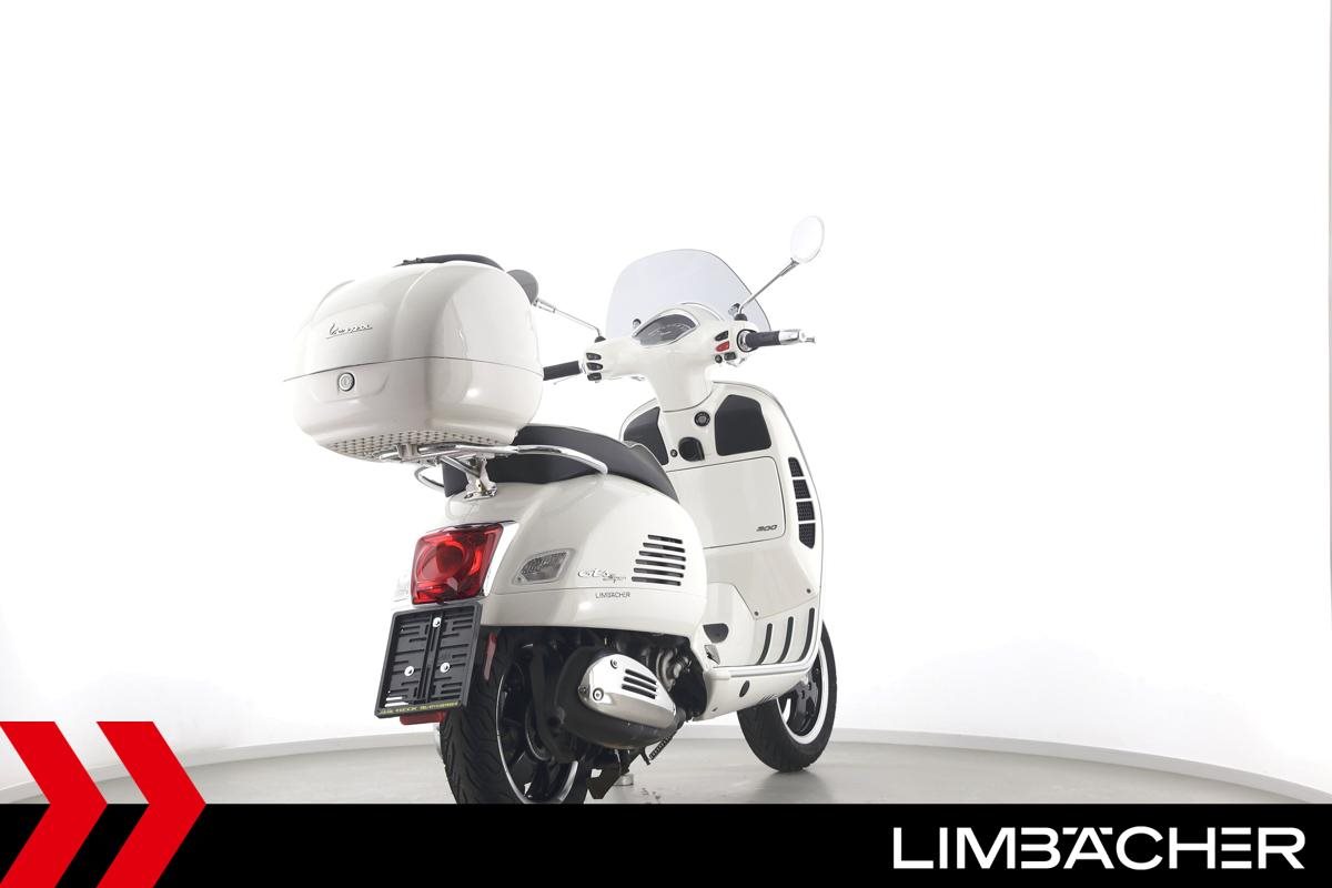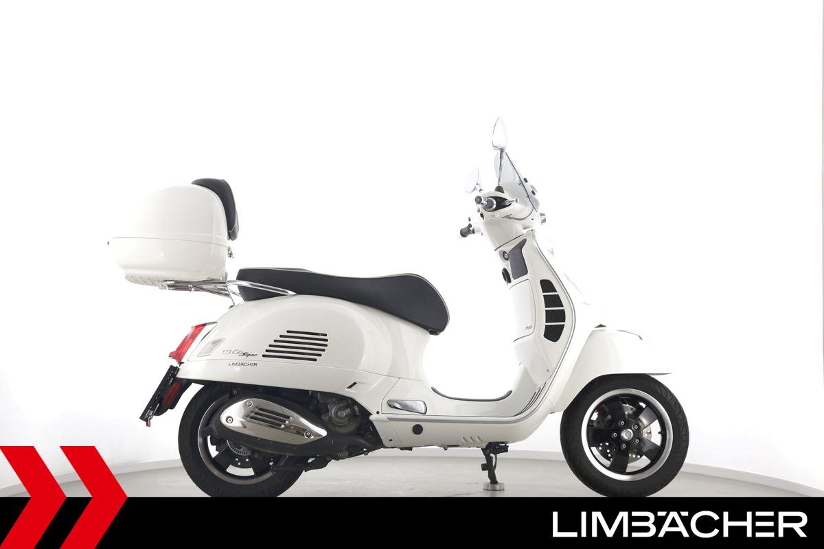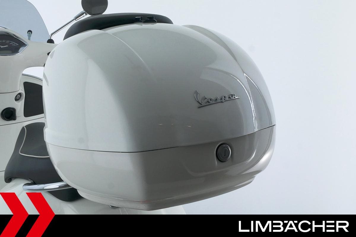 Eine Vespa GTS 300 E5 aus erster Hand in sehr gepflegtem Zustand u.a. mit Vespa-Topcase und Scheibe.