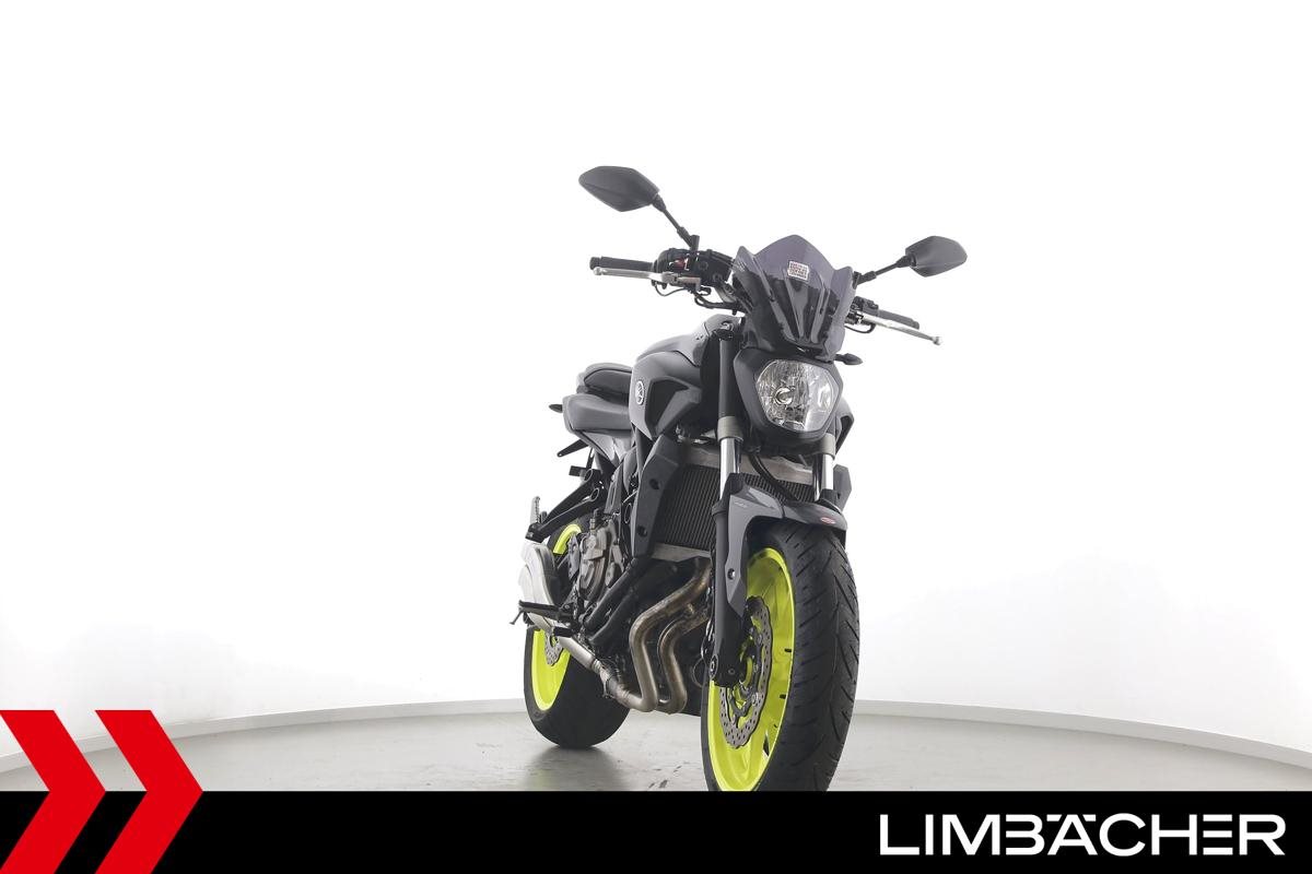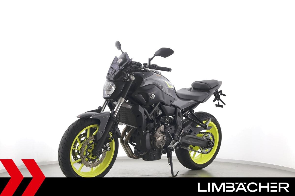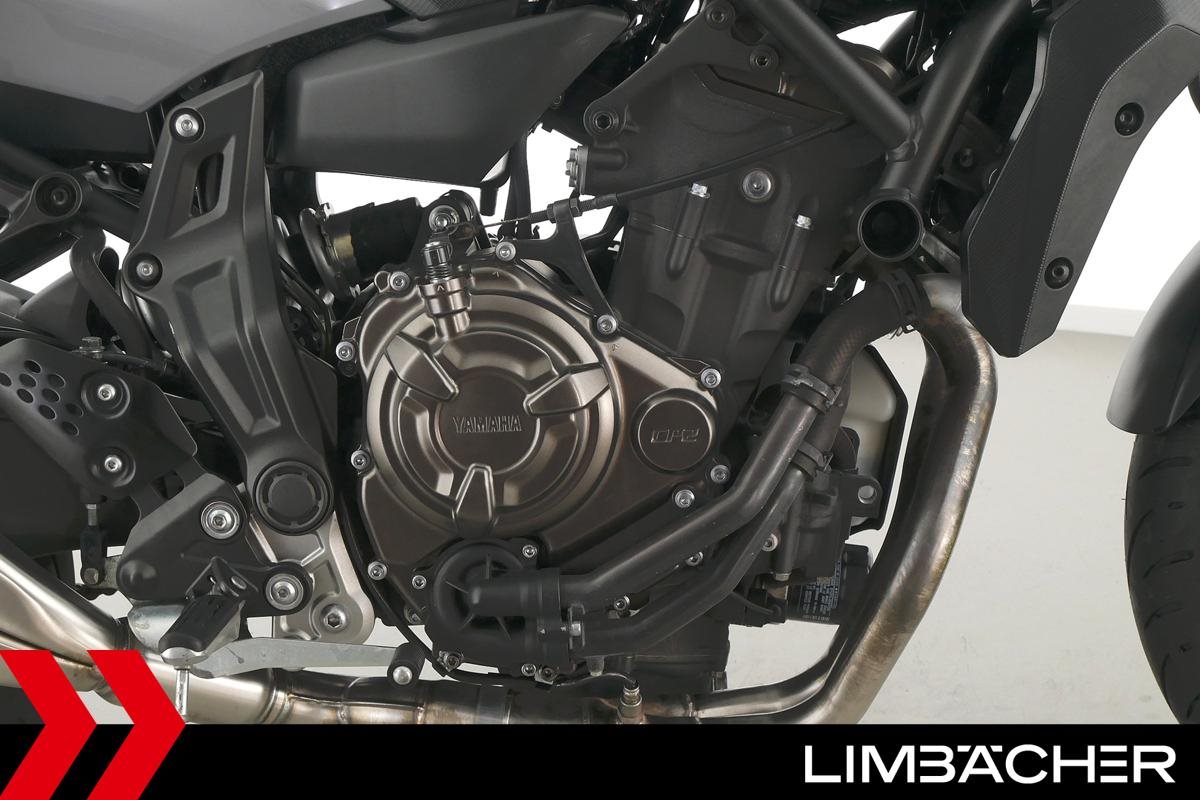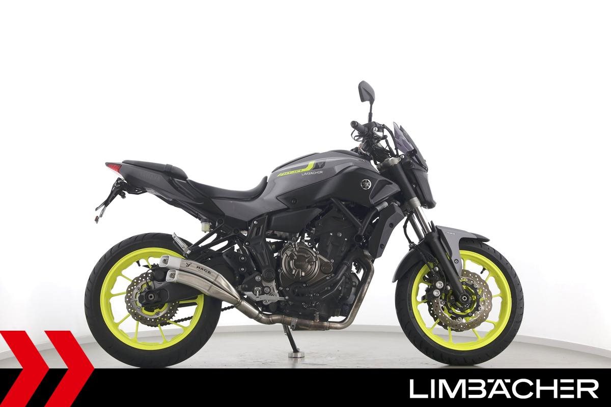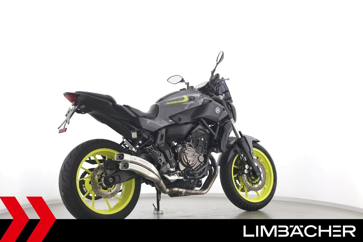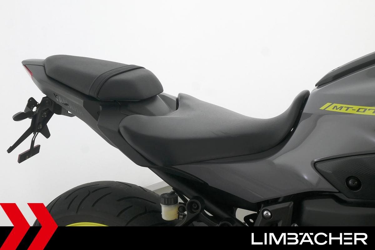 Eine scheckheftgepflegte Yamaha MT-07 aus zweiter Hand in gepflegtem Zustand u.a. mit IXRACE Z7 Abgasanlage und kurzem Kennzeichenhalter.
