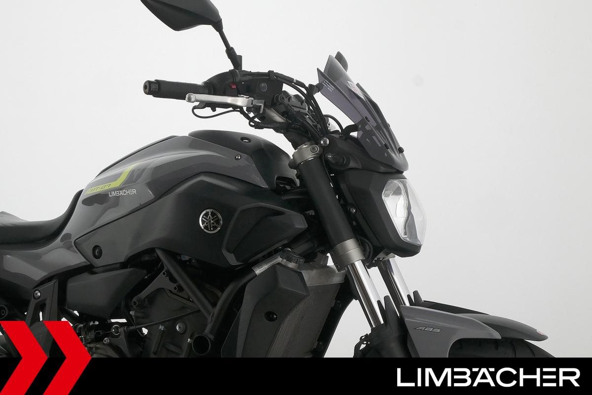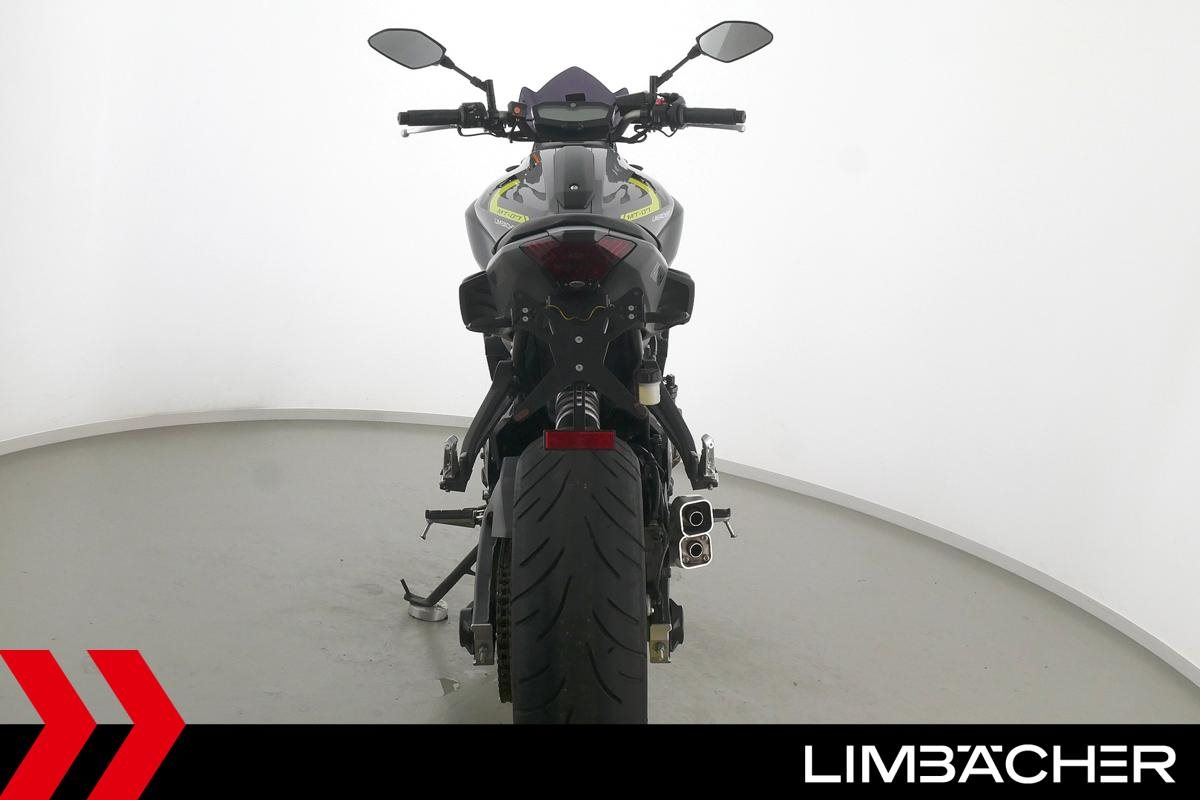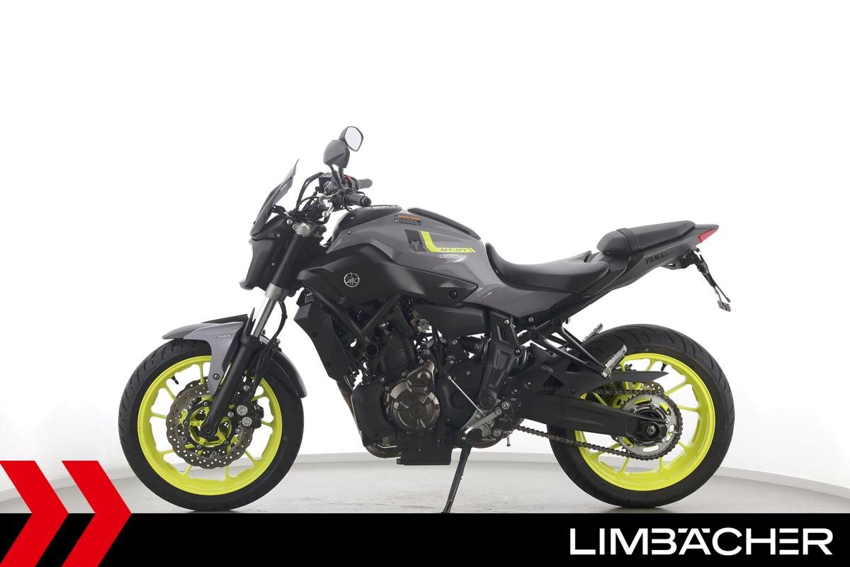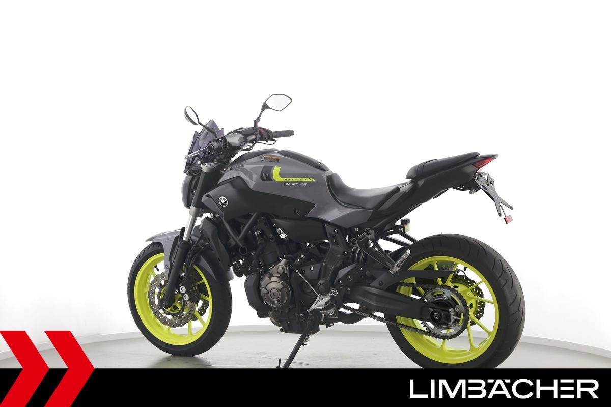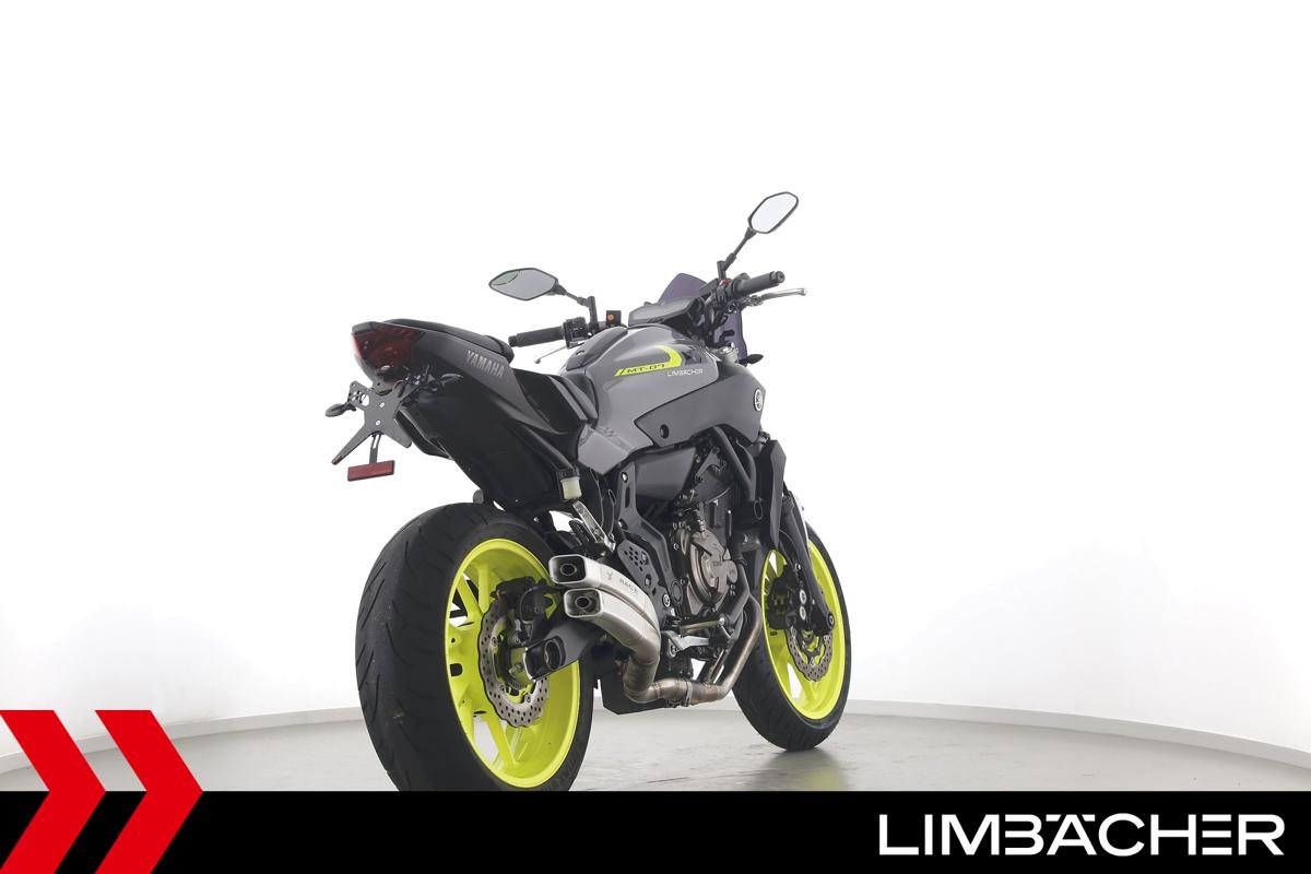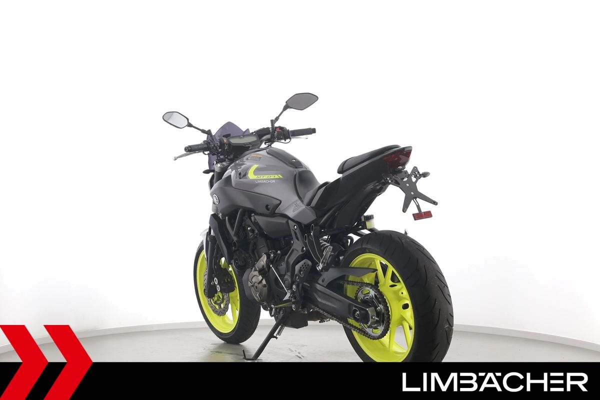Eine scheckheftgepflegte Yamaha MT-07 aus zweiter Hand in gepflegtem Zustand u.a. mit IXRACE Z7 Abgasanlage und kurzem Kennzeichenhalter.