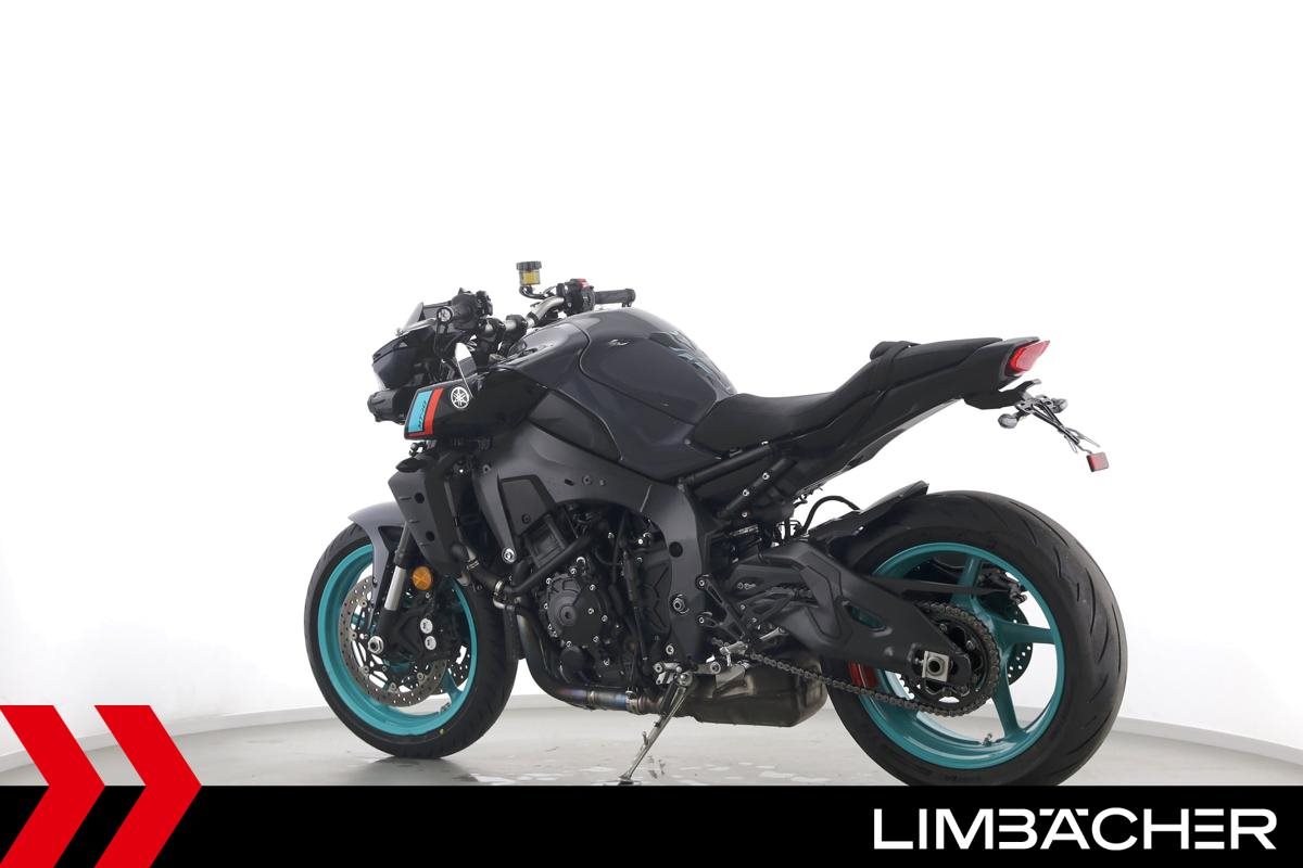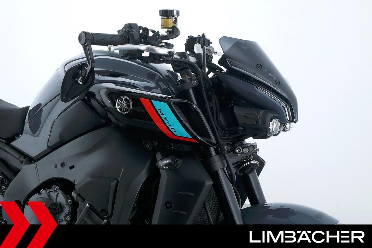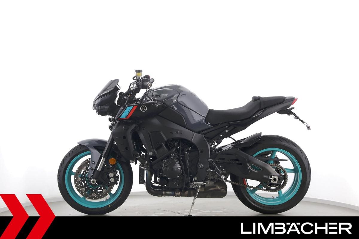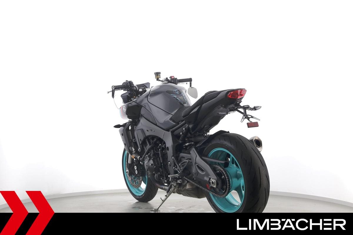 Eine scheckheftgepflegte Yamaha MT-10 aus zweiter Hand in sehr gepflegtem Zustand u.a. mit kurzem Kennzeichenhalter sowie motogadget-Lenkerend-Alu-Spiegel.