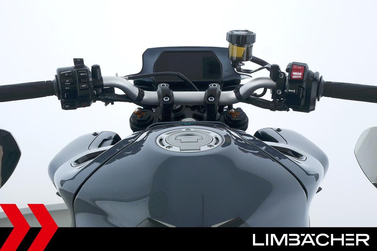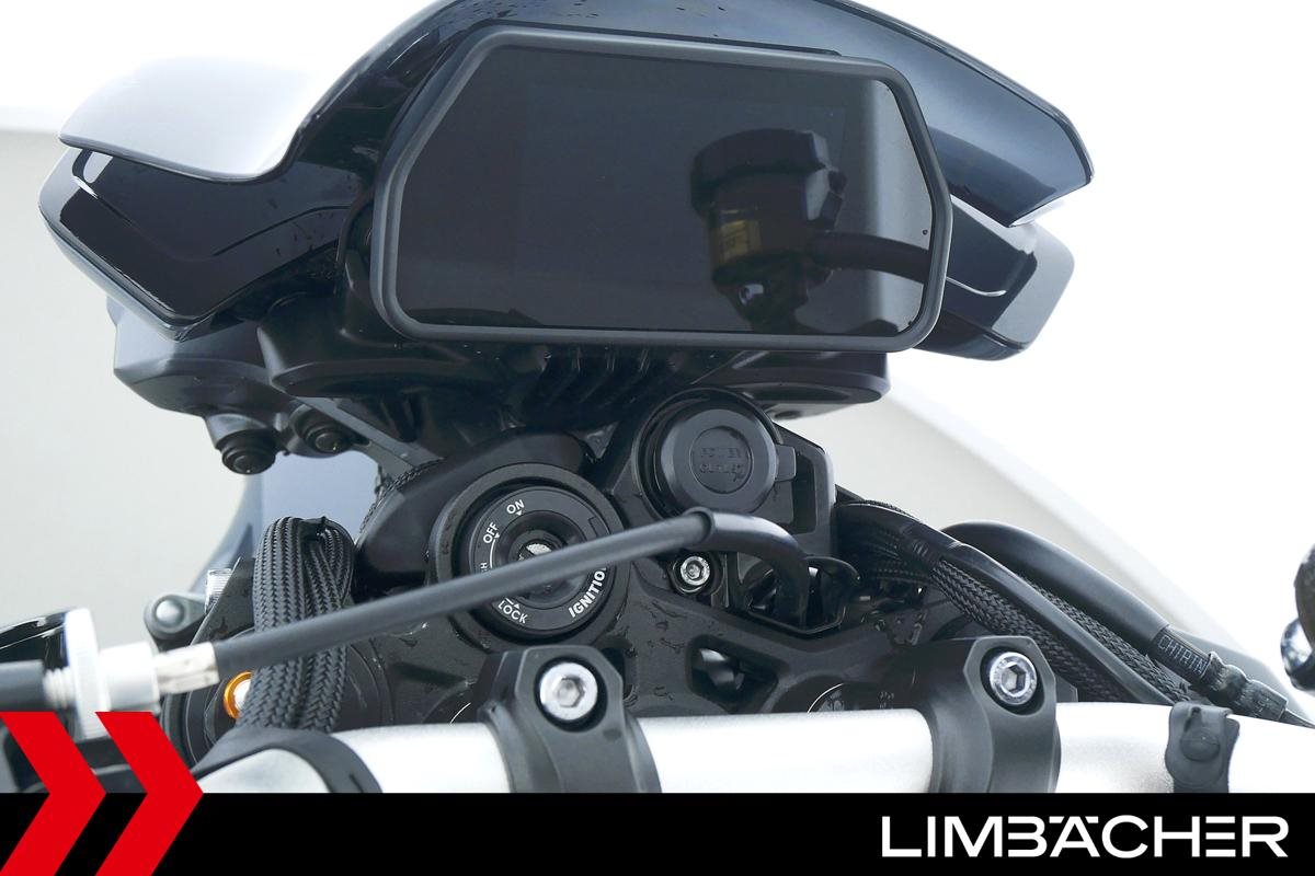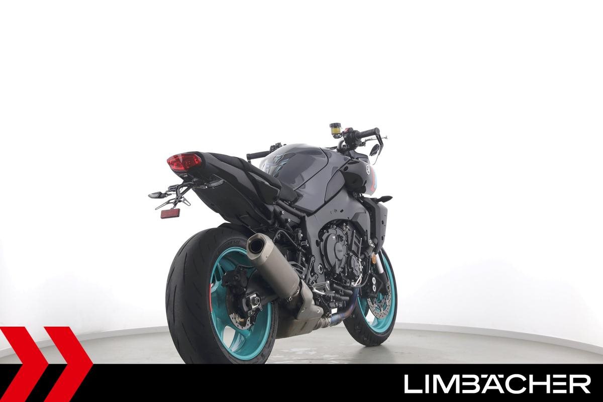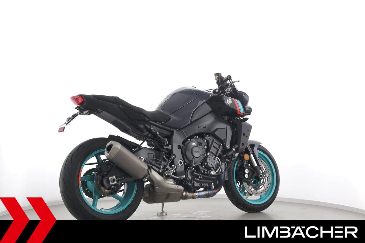 Eine scheckheftgepflegte Yamaha MT-10 aus zweiter Hand in sehr gepflegtem Zustand u.a. mit kurzem Kennzeichenhalter sowie motogadget-Lenkerend-Alu-Spiegel.