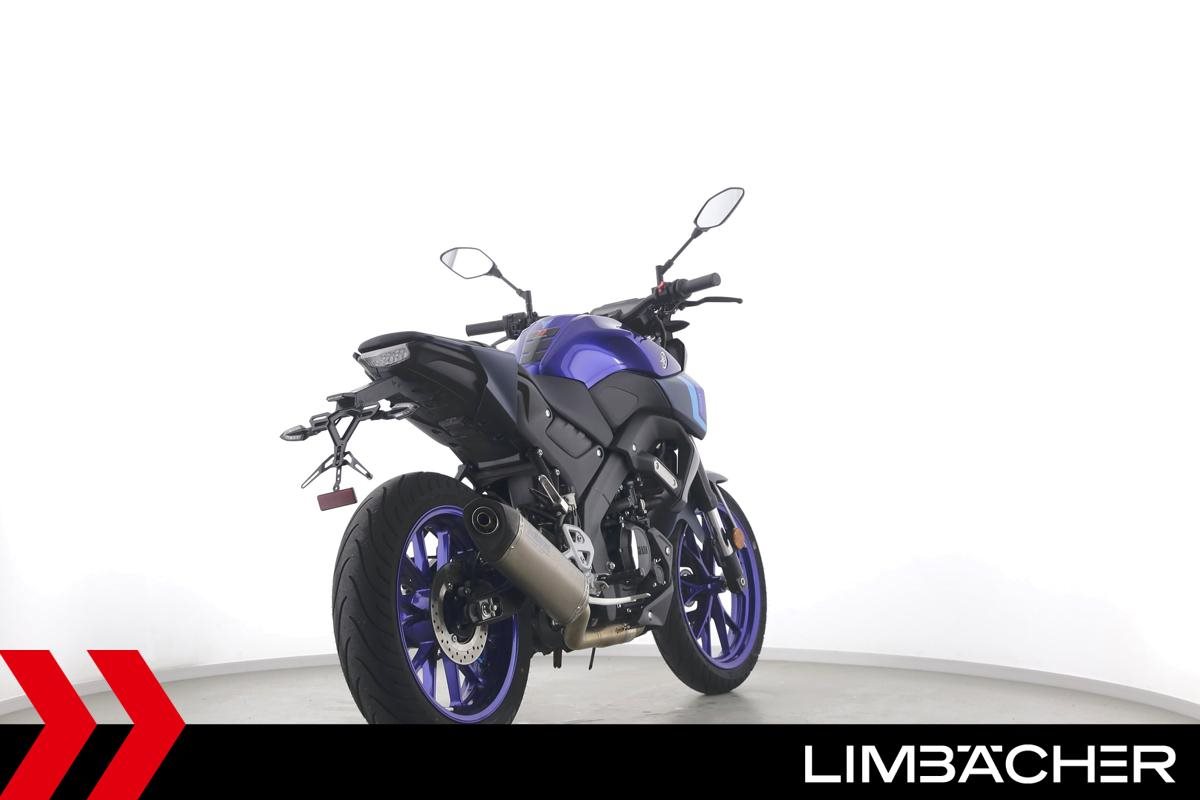 Eine Yamaha MT-125 aus erster Hand in Topzustand u.a. mit Akrapovic-Titan-Komplettauspuffanlage sowie getöntem Sportwindschild.