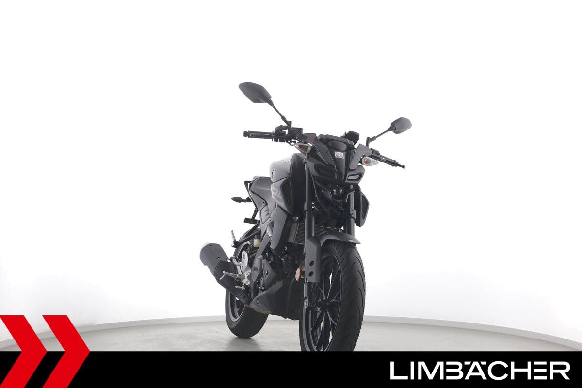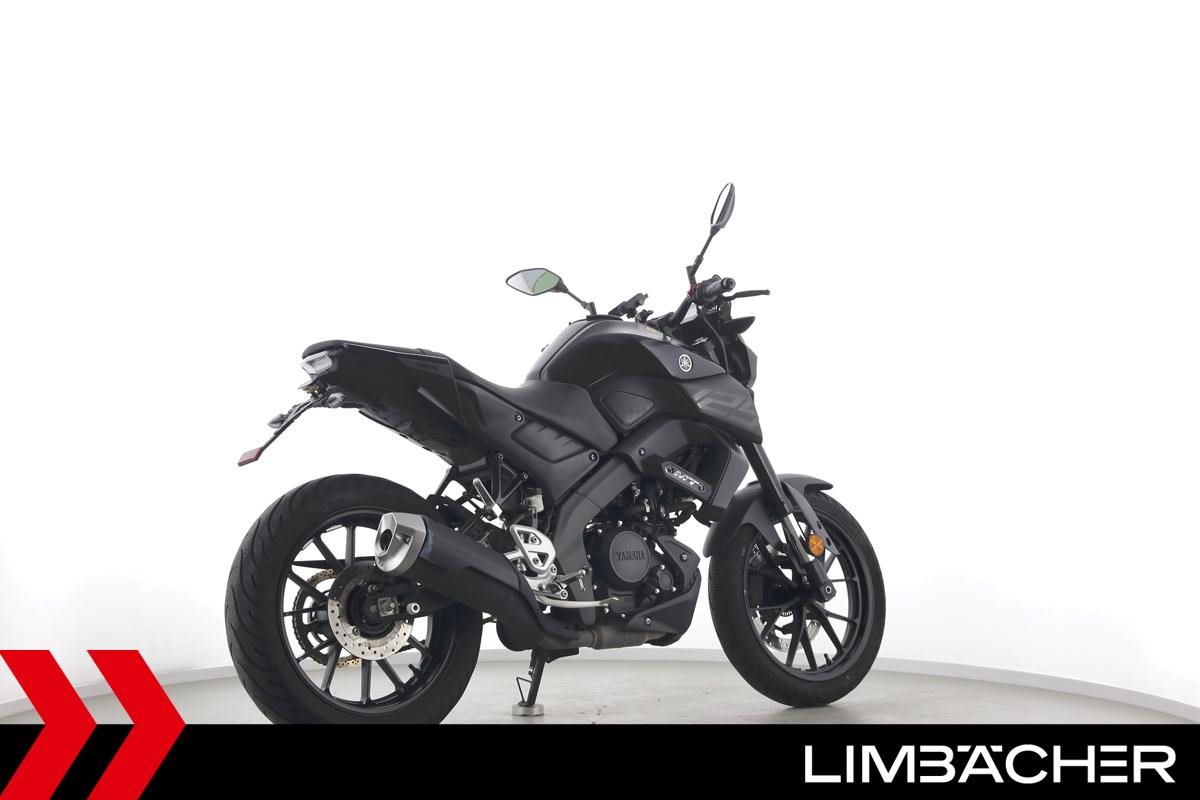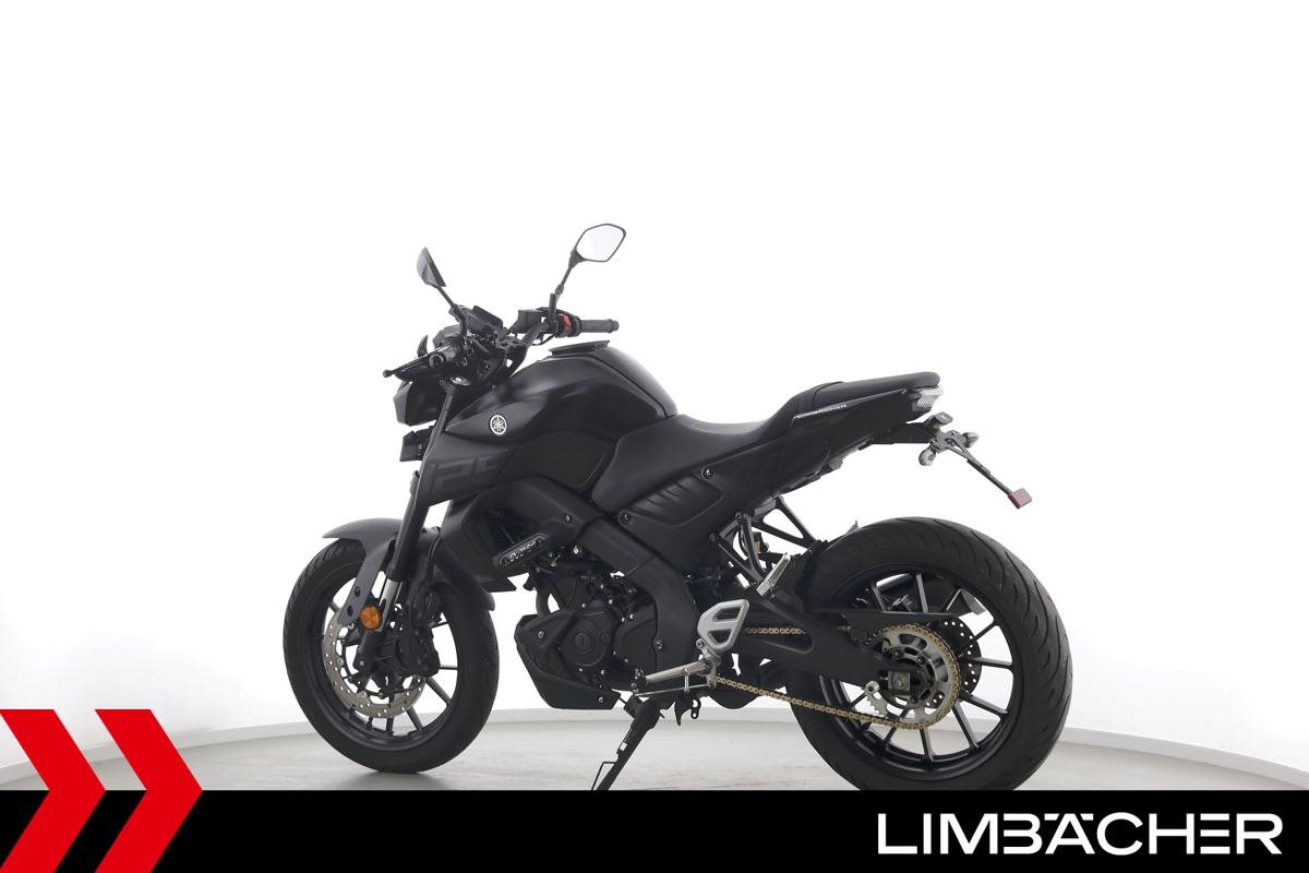 Eine scheckheftgepflegte Yamaha MT-125 in gepflegtem Zustand u.a. mit kurzem Kennzeichenhalter sowie LED-Blinkern hinten.