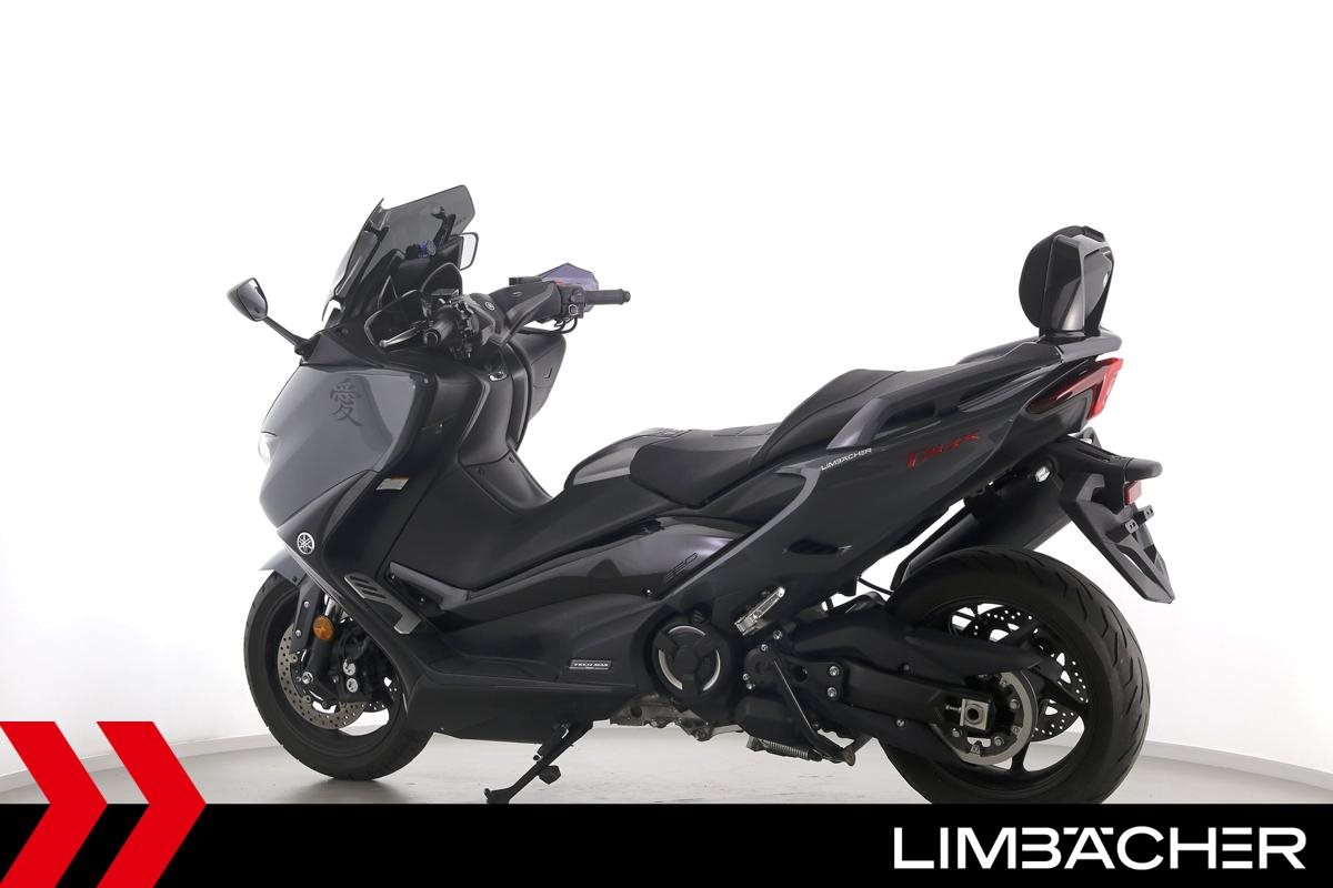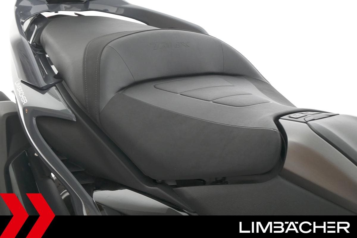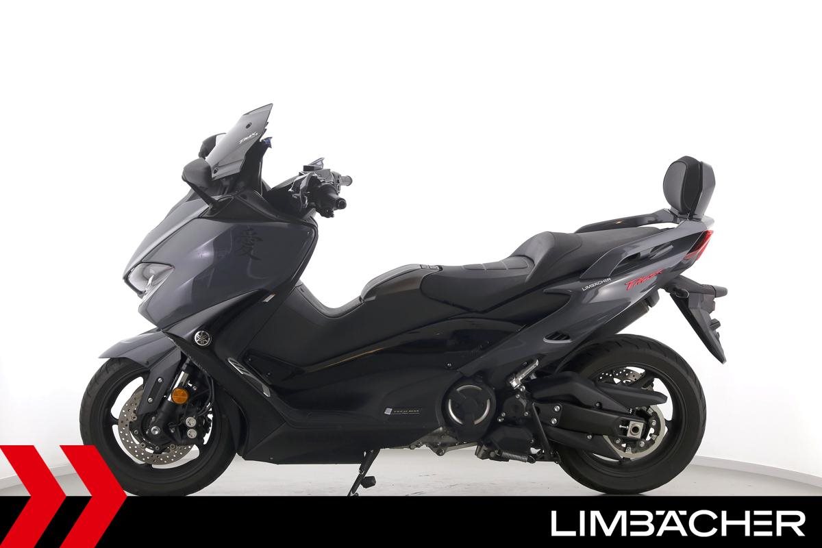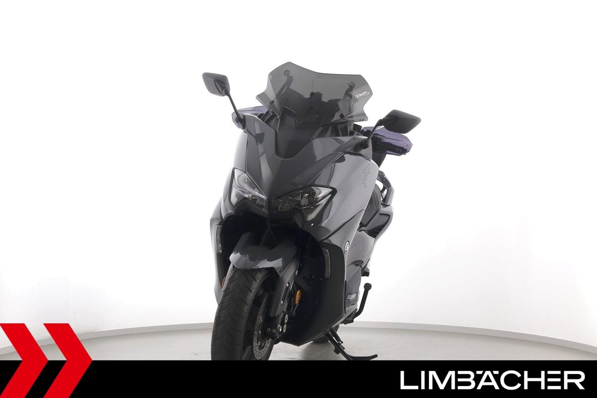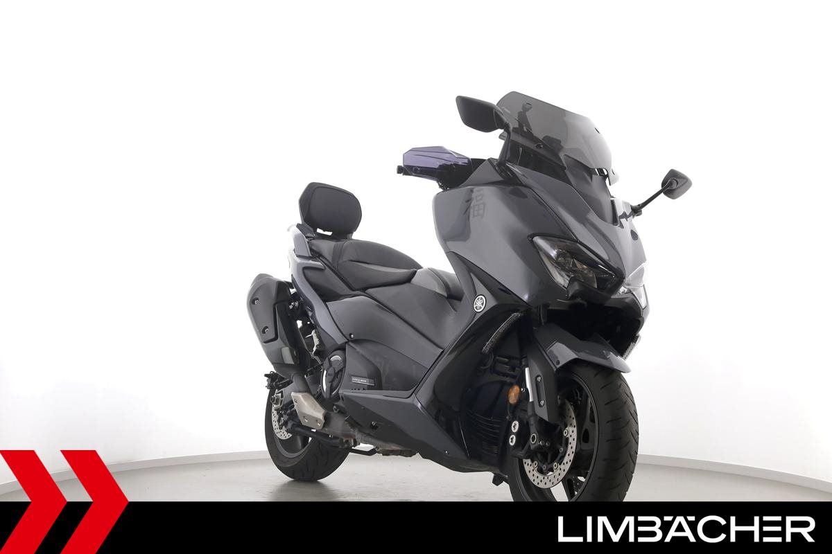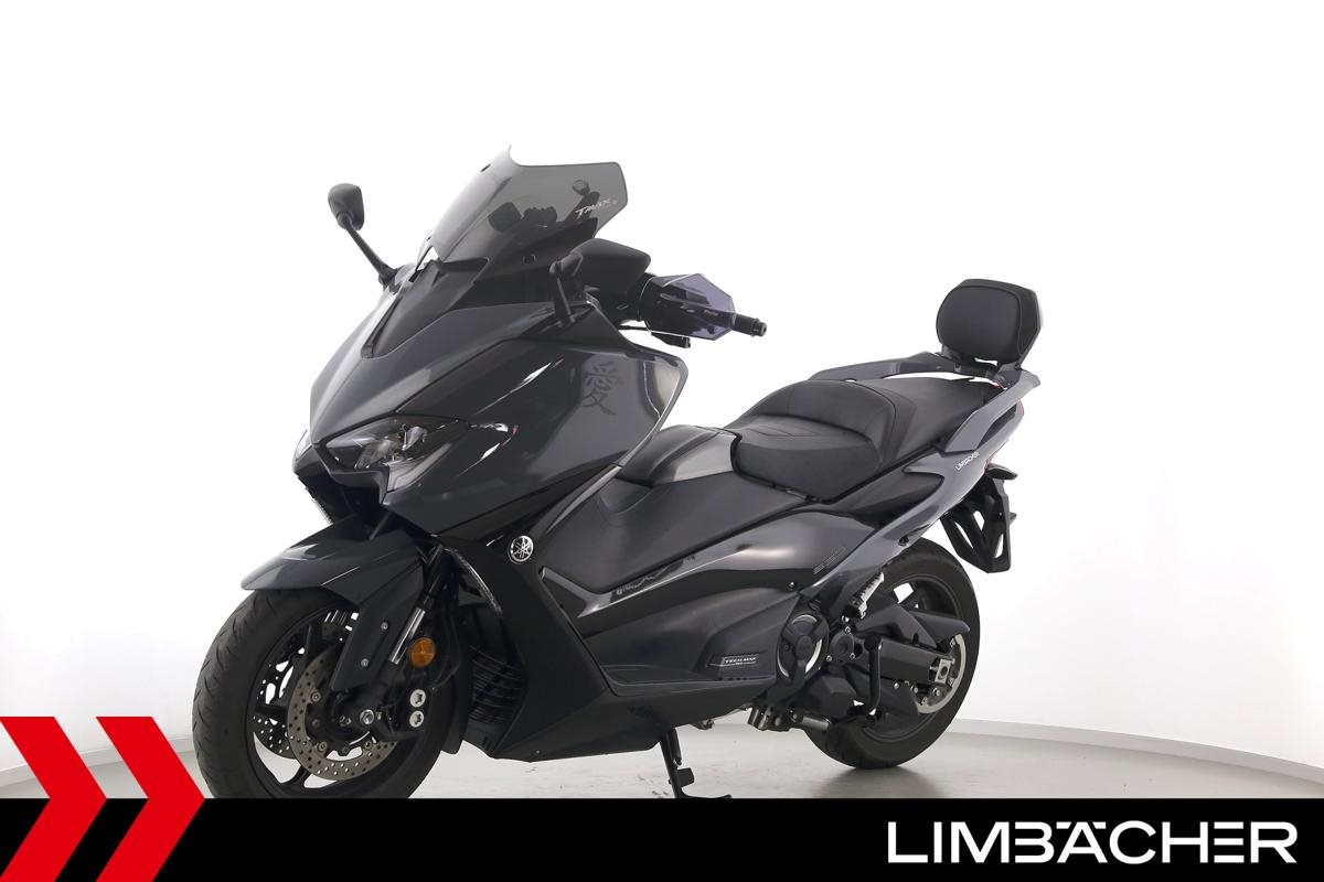 Eine scheckheftgepflegte Yamaha TMAX 560 Tech Max aus zweiter Hand in gepflegtem Zustand u.a. mit Yamaha-Sportscheibe und Yamaha-Rückenlehne.
