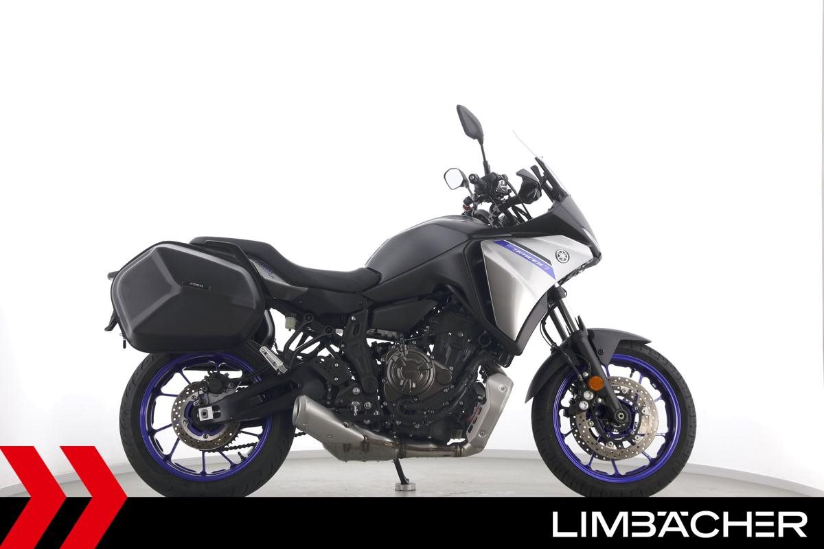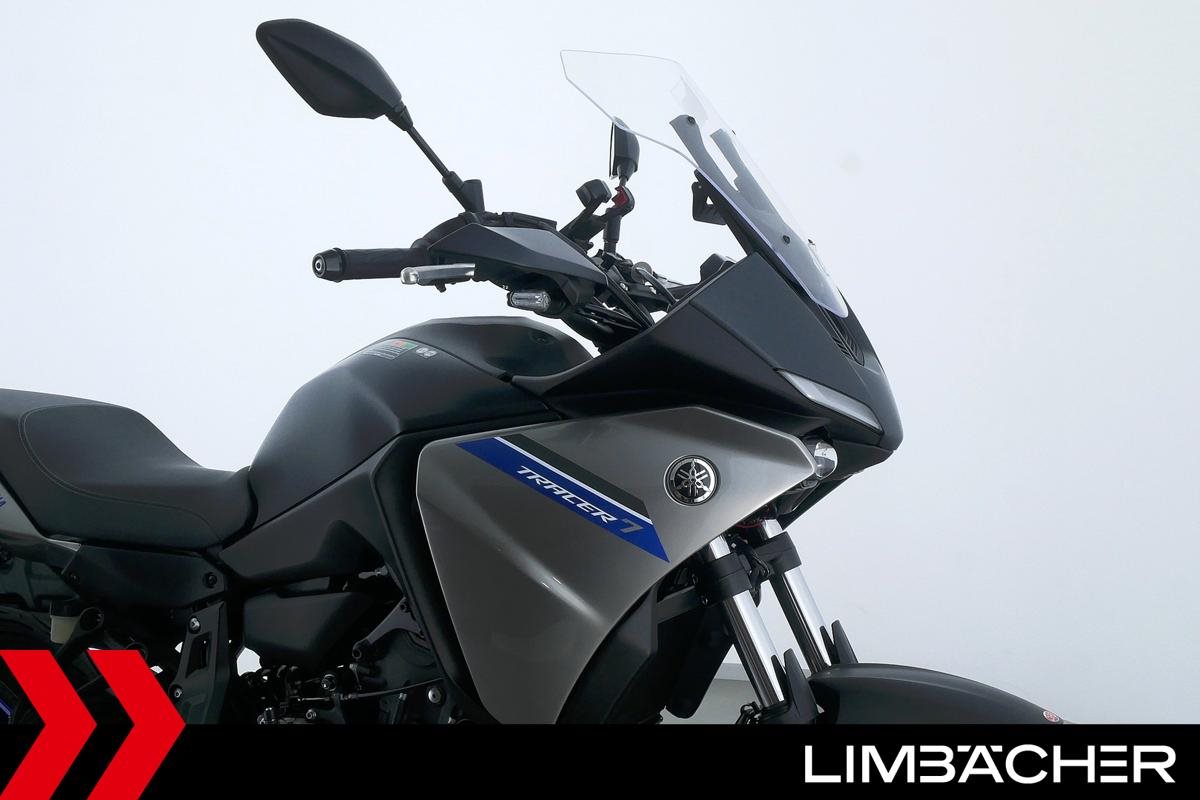 Eine scheckheftgepflegte Yamaha Tracer 7 aus zweiter Hand in Topzustand u.a. mit Yamaha-GT-Koffern sowie LED-Blinkern und -Rücklicht.