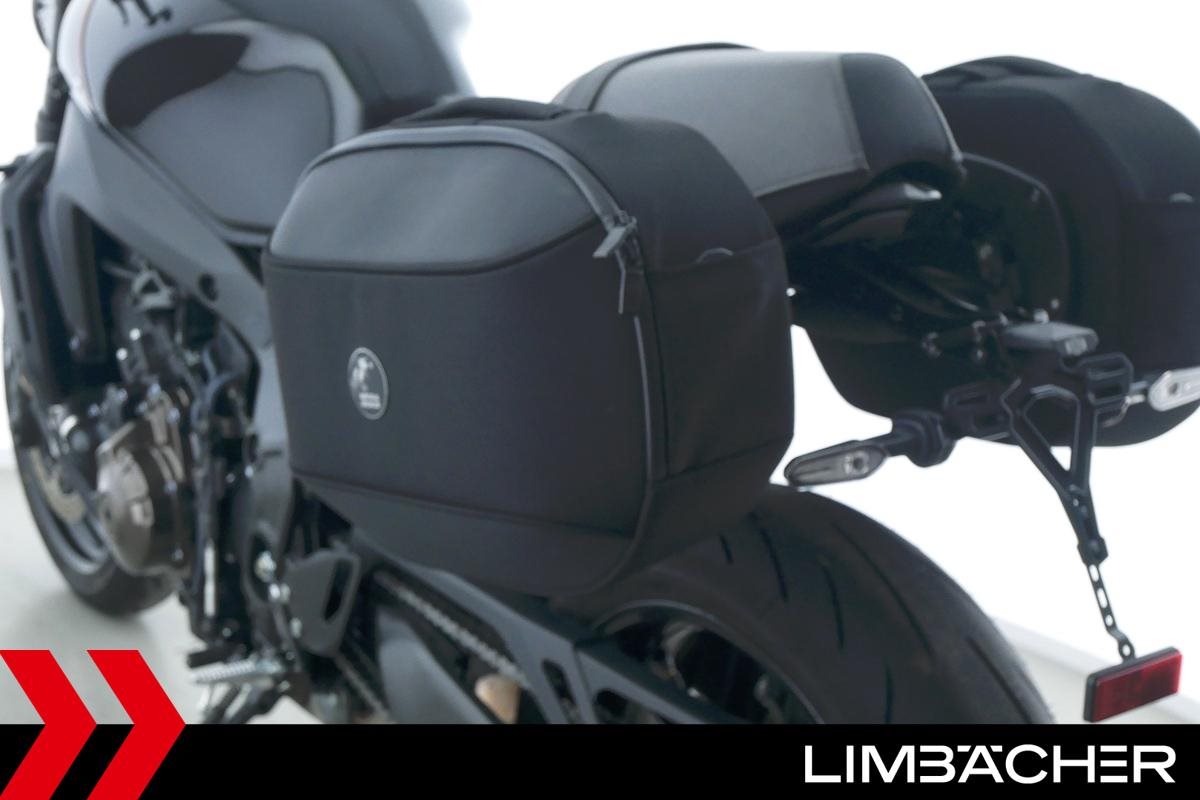 Eine Yamaha XSR 900 in sehr gepflegtem Zustand u.a. mit kurzem Kennzeichenhalter sowie Hepco&Becker-Softkoffer-System.