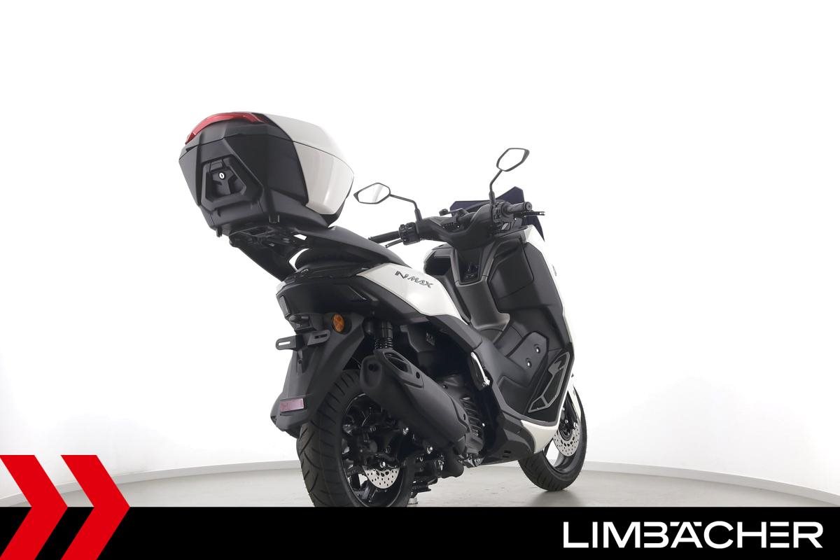 Eine Yamaha NMAX 125 als Neufahrzeug u.a. mit 34-Liter-Topcase und Design-Sitzbank.