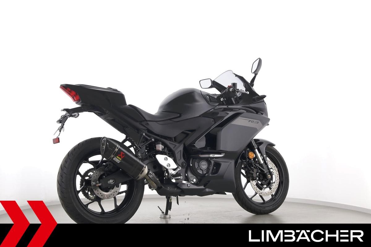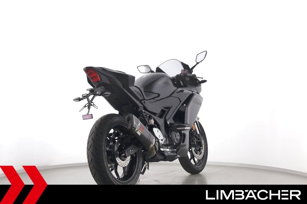 Eine Yamaha YZF-R3 als Neufahrzeug mit umfangreichem Originalzubehörpaket.