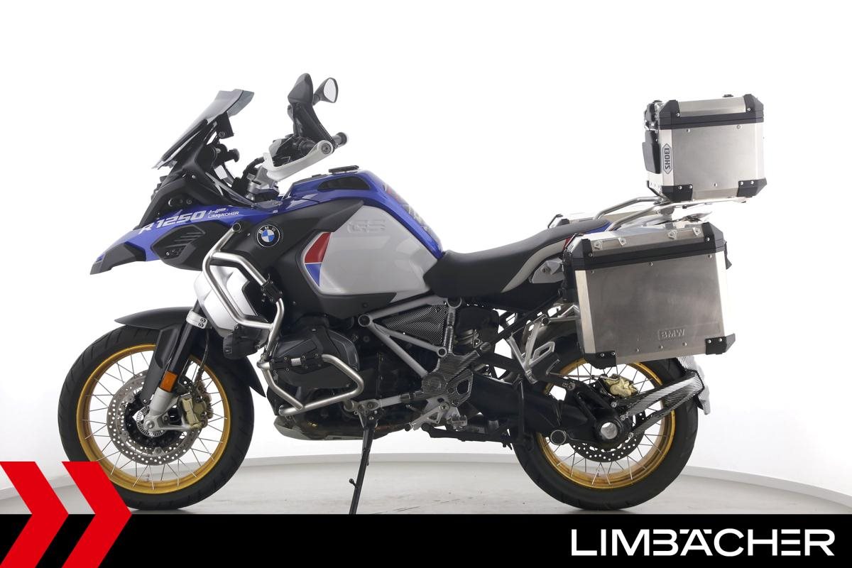 Eine scheckheftgepflegte BMW R 1250 GS Adventure in gepflegtem Zustand u.a. mit Akrapovic-Endschalldämpfer sowie BMW-Alukoffer-System incl Topcase gleichschließend.
