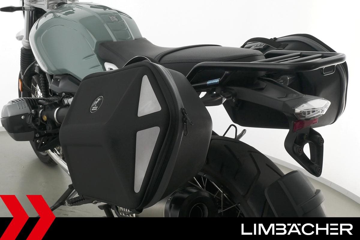 Eine scheckheftgepflegte BMW R nineT Urban G/S aus zweiter Hand in sehr gepflegtem Zustand u.a. mit Koffern und Heckträger von Hepco Becker sowie Griffschutz.