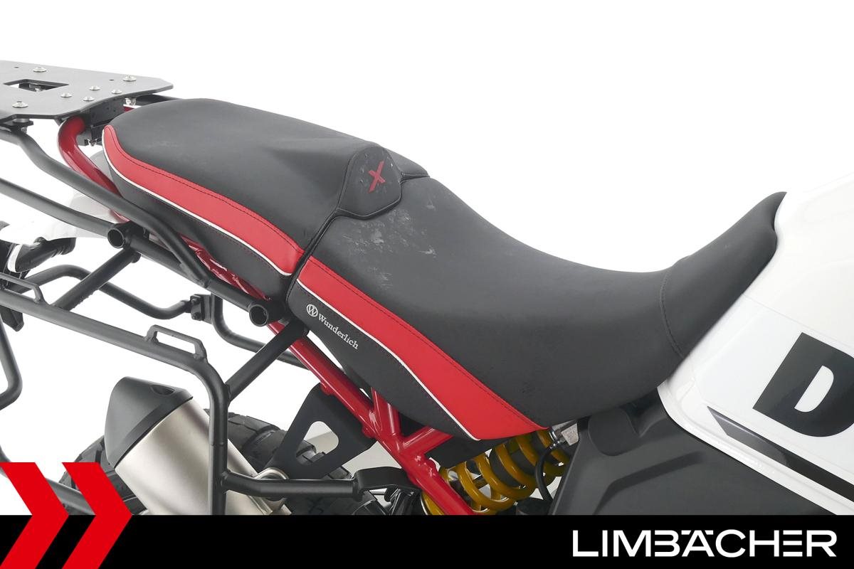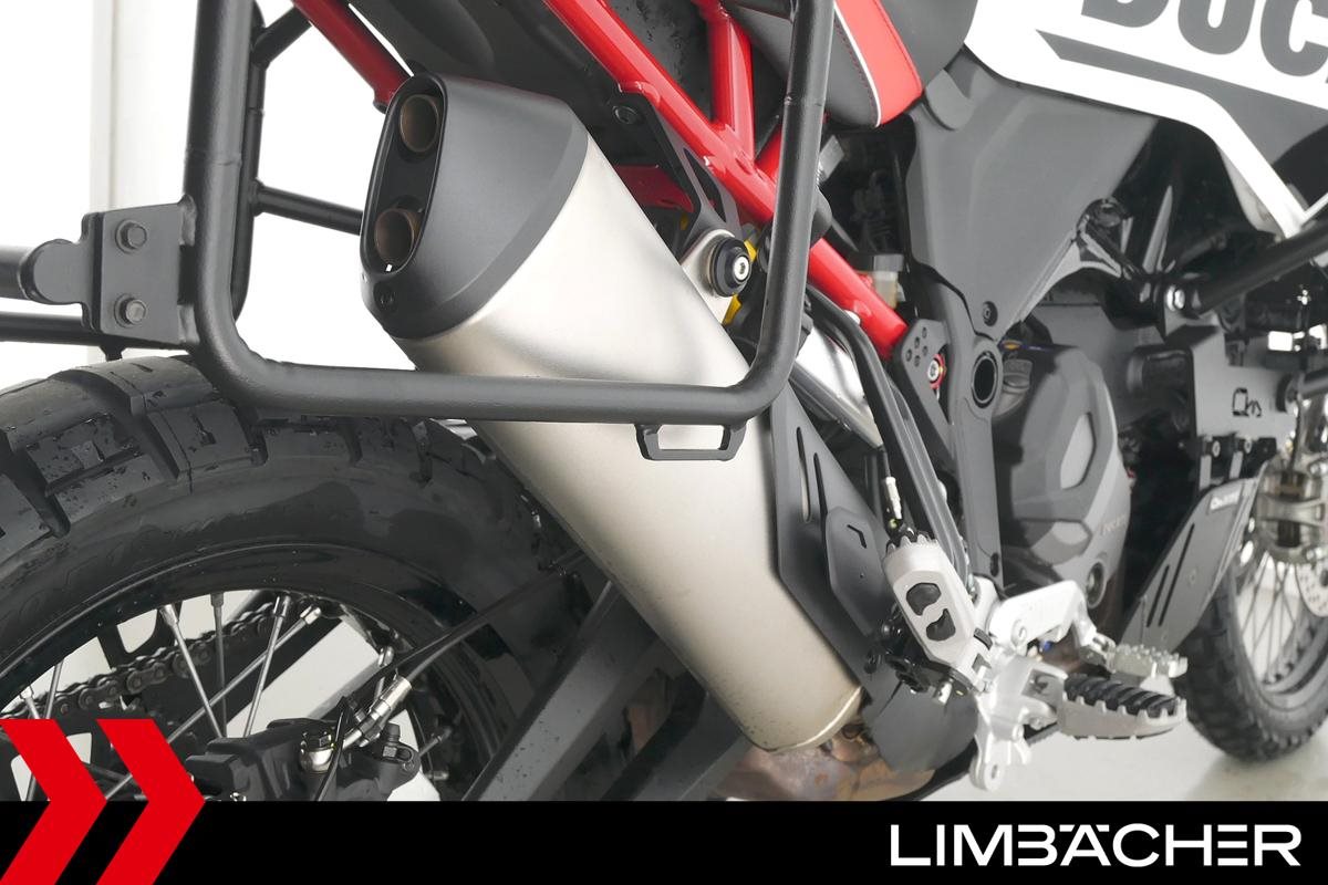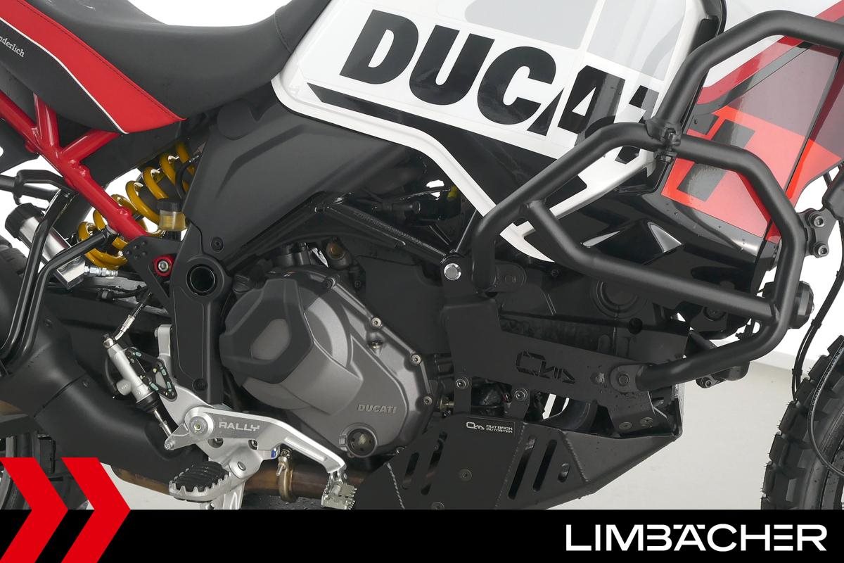 Eine scheckheftgepflegte Ducati DesertX Rally aus erster Hand in sehr gepflegtem Zustand u.a. mit Outbackmotortek-Sturzbügel in schwarz sowie Wunderlich-Komfortsitzbank.