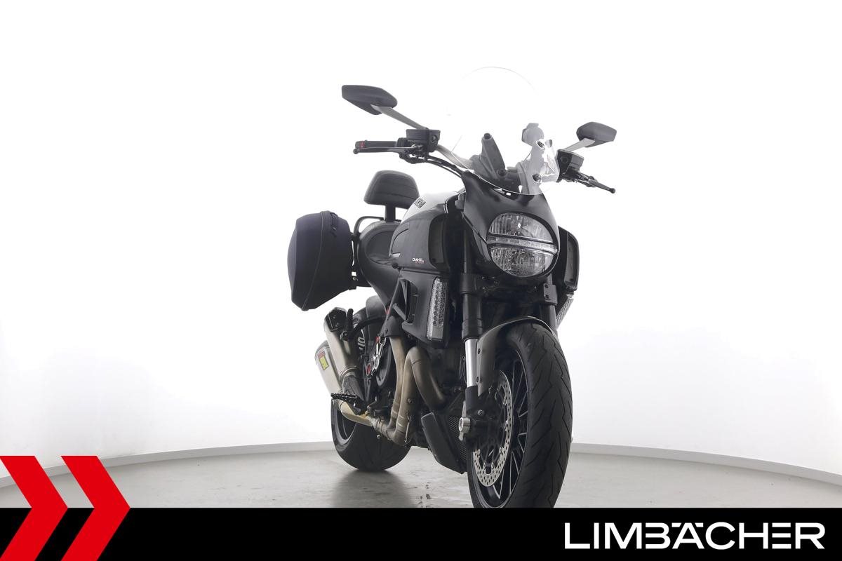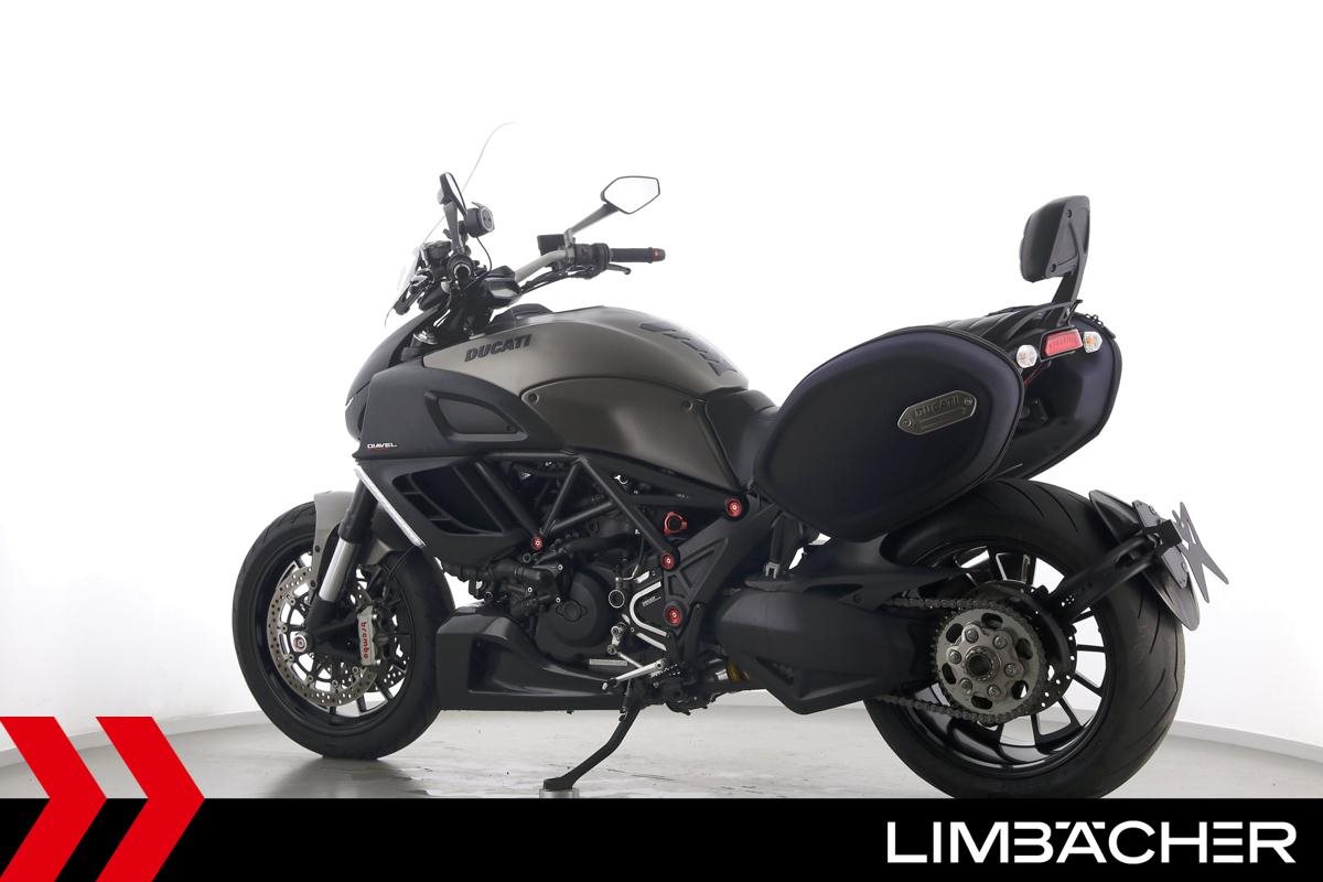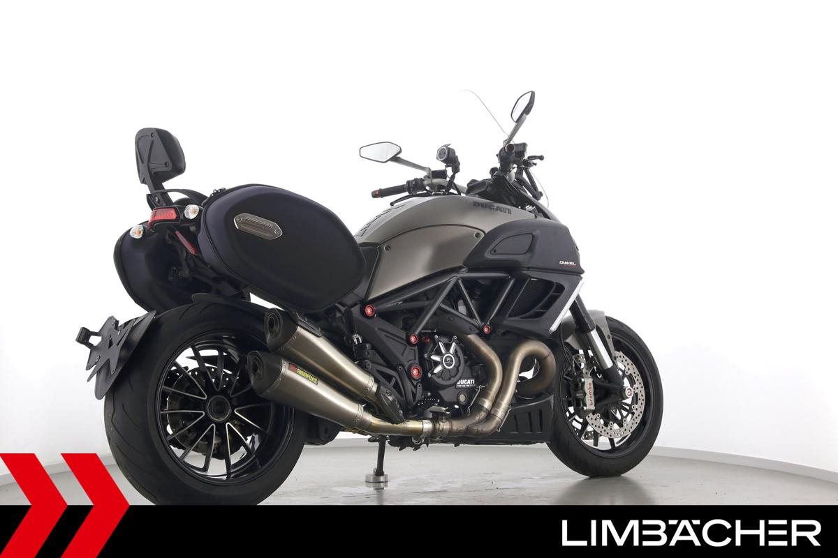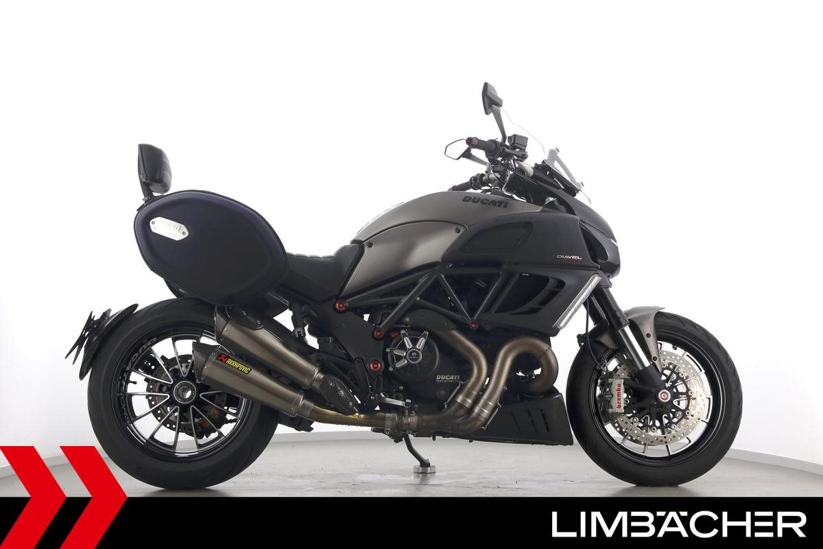 Eine scheckheftgepflegte Ducati Diavel Strada in sehr gepflegtem Zustand u.a. mit Akrapovic-Doppel-Endschalldämpfer sowie Ducati-Softkoffer-System.