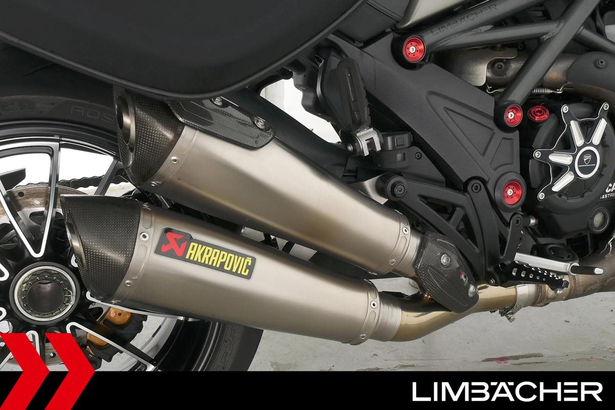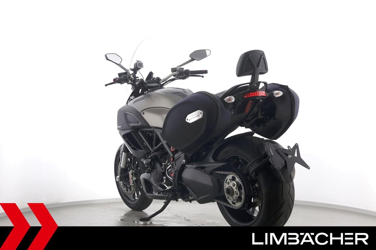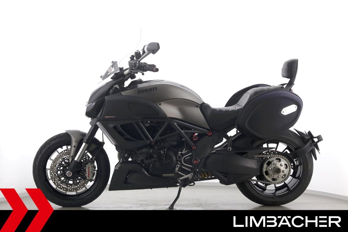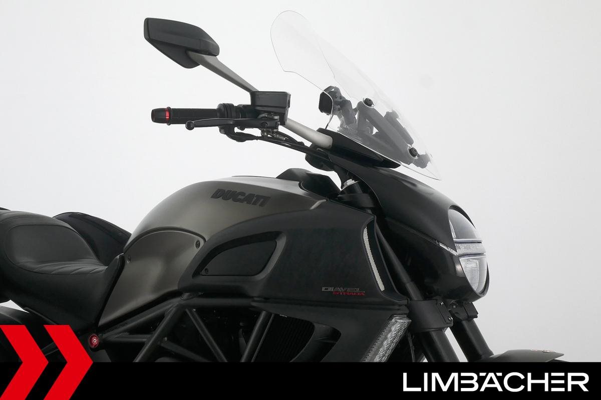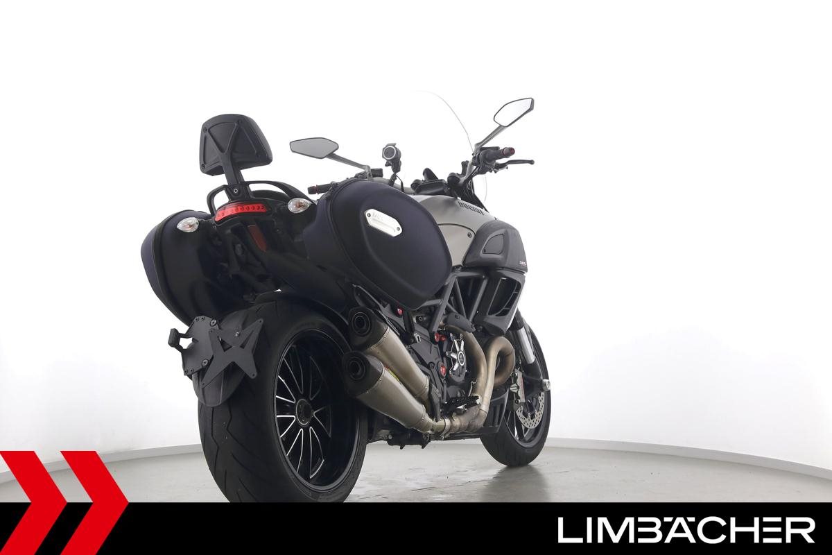 Eine scheckheftgepflegte Ducati Diavel Strada in sehr gepflegtem Zustand u.a. mit Akrapovic-Doppel-Endschalldämpfer sowie Ducati-Softkoffer-System.