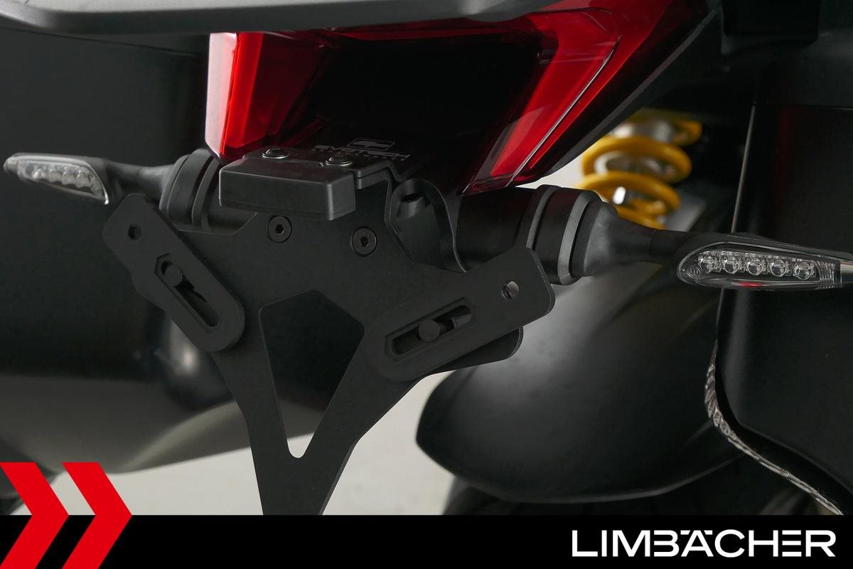 Eine Ducati Multistrada V2 S Travel aus zweiter Hand in sehr gepflegtem Zustand u.a. mit Ducati-Koffersystem und kurzem Kennzeichenhalter.