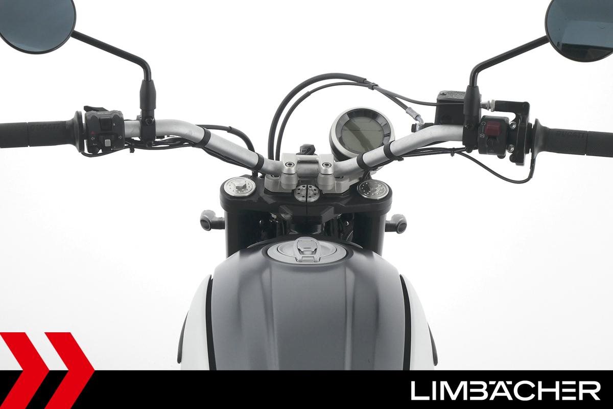 Eine scheckheftgepflegte Ducati Scrambler Street Classic aus erster Hand in sehr gepflegtem Zustand u.a. mit Drosselung auf 34 kW und Akrapovic-Endschalldämpfer.