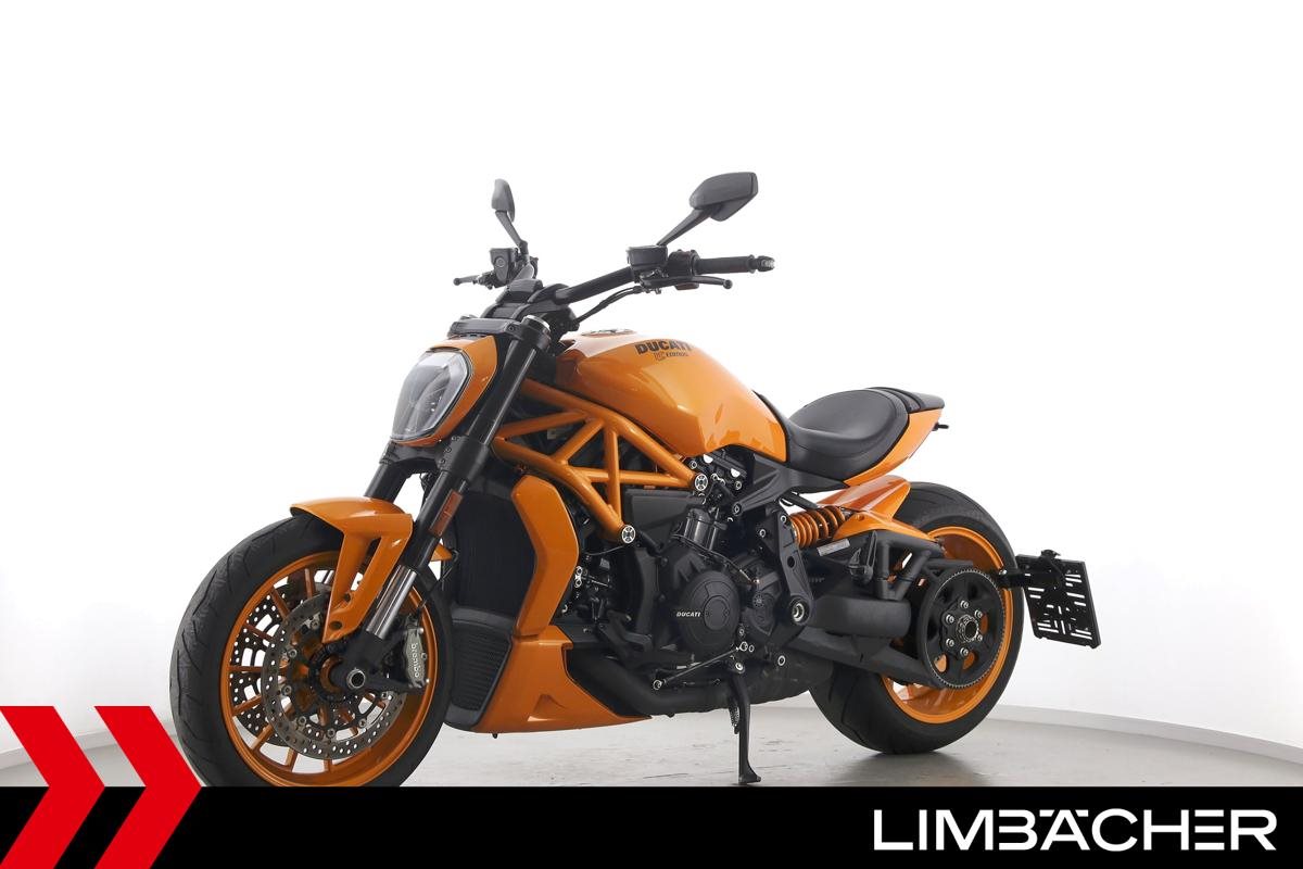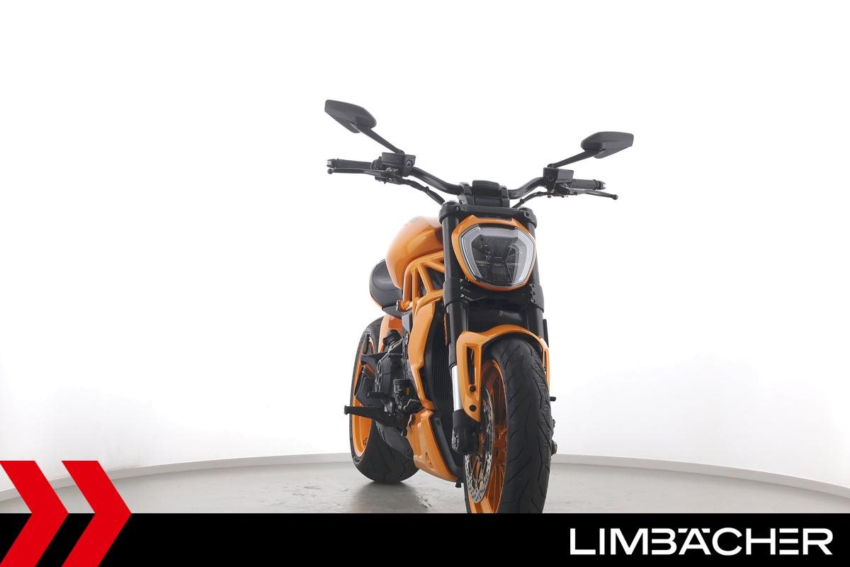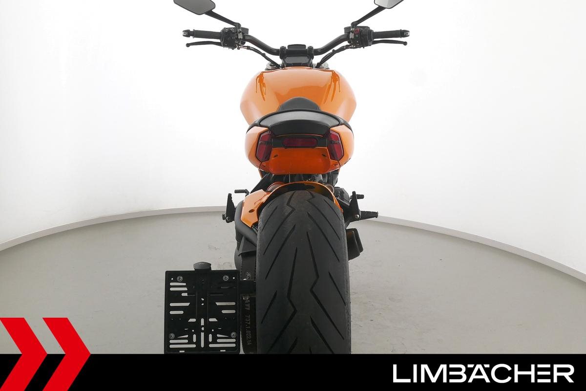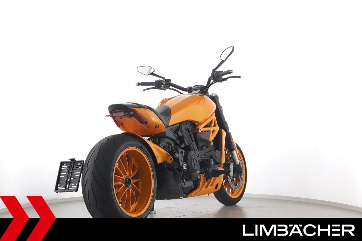 Eine scheckheftgepflegte Ducati XDiavel LLC aus zweiter Hand in Topzustand u.a. mit Sonderlackierung in Lambo-Orange sowie seitlichem Kennzeichenhalter von Rizoma.