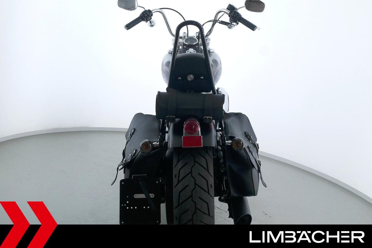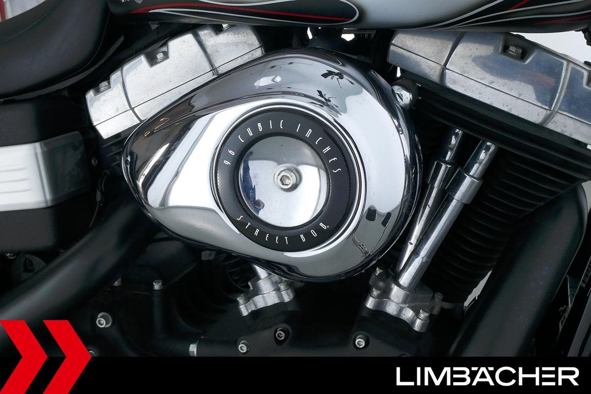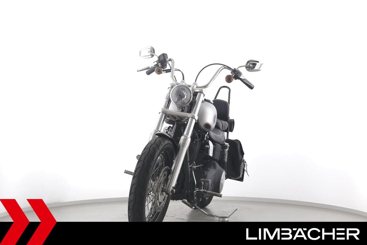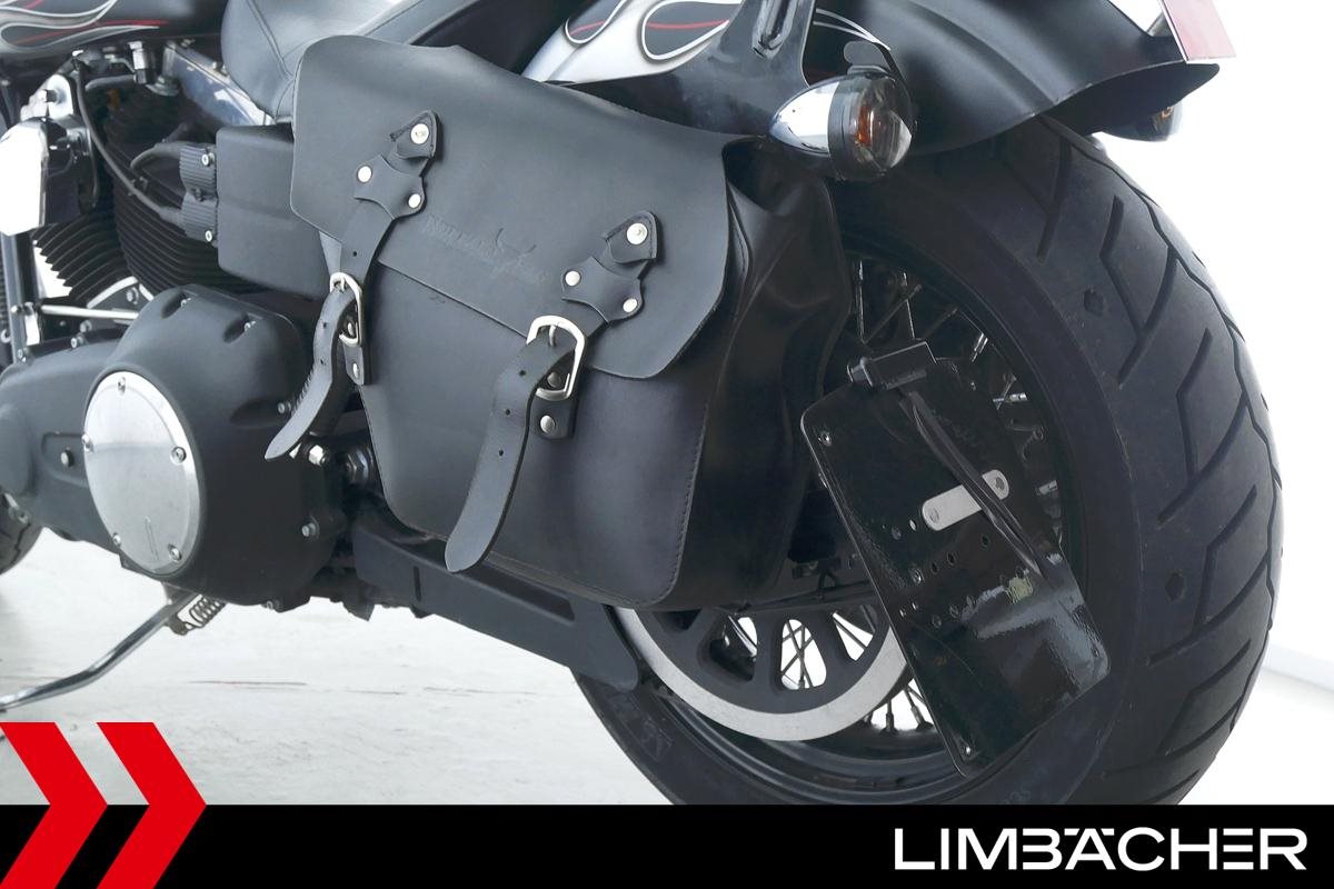 Eine Harley-Davidson Dyna Street Bob FXDB in gepflegtem Zustand u.a. mit Remus-Endschalldämpfer sowie seitlichem Kennzeichenhalter.