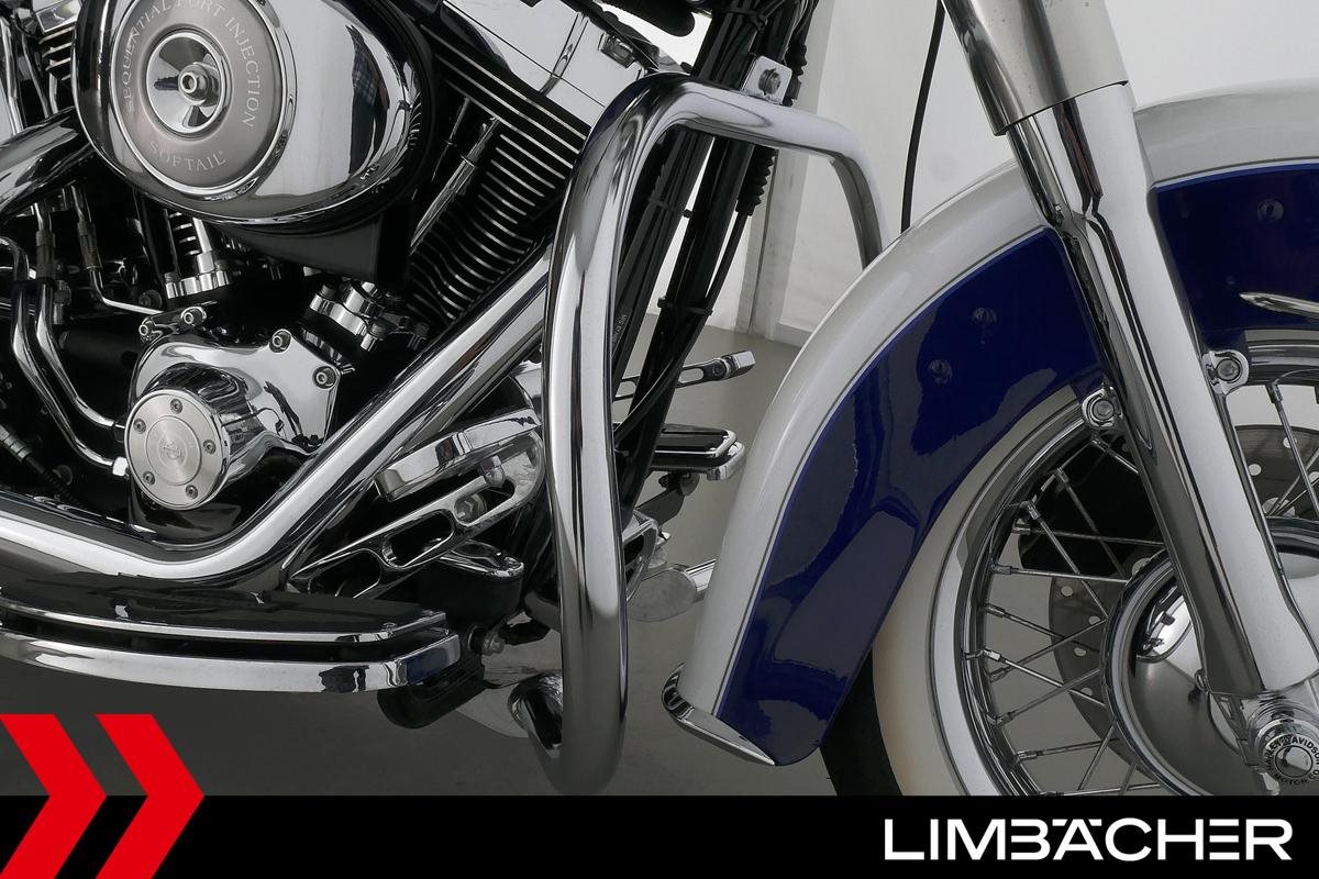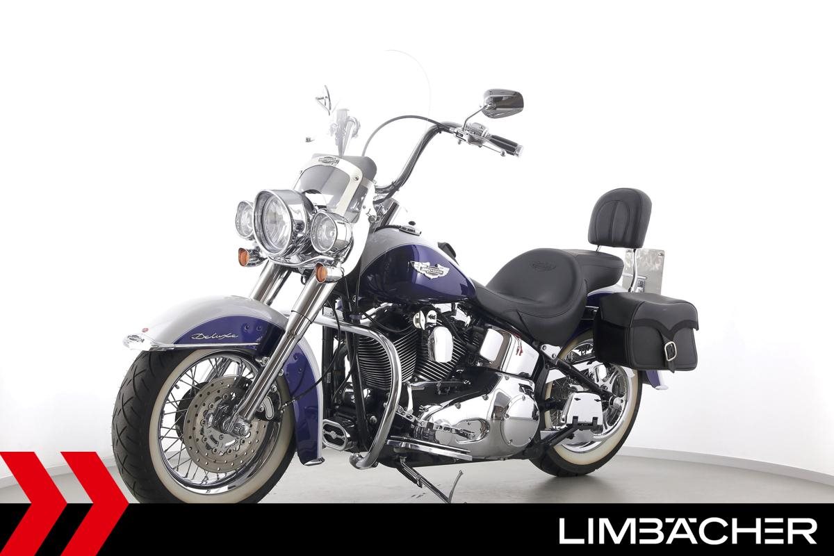 Eine Harley-Davidson Softail Deluxe FLSTNI aus zweiter Hand in sehr gepflegtem Zustand u.a. mit Penzl-Klappenauspuff manuell sowie Sturzbügel.