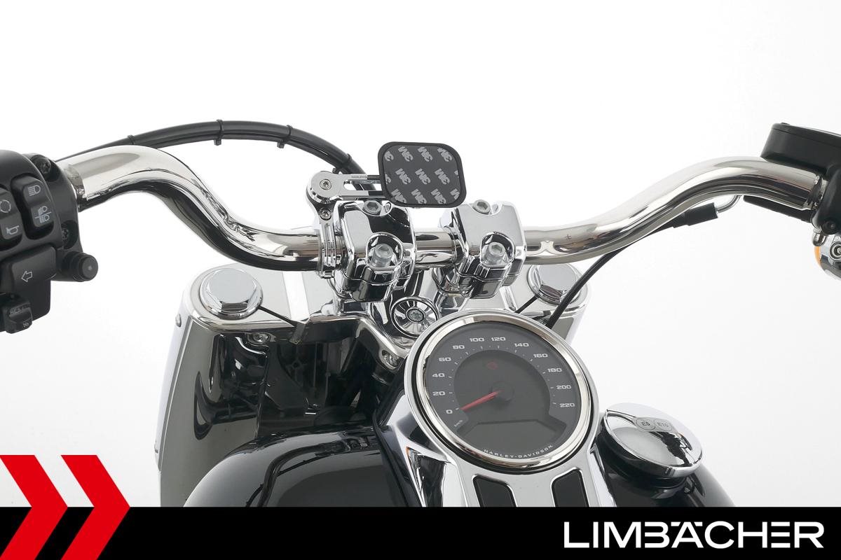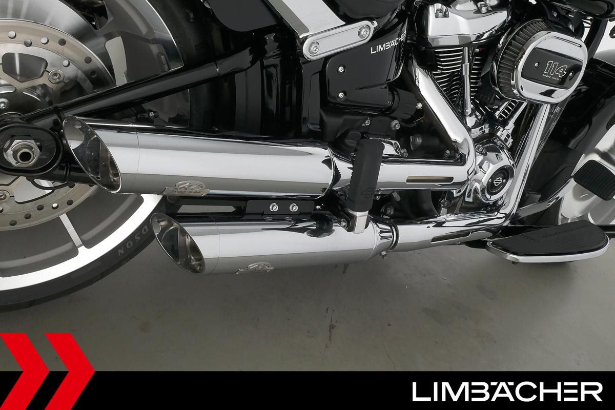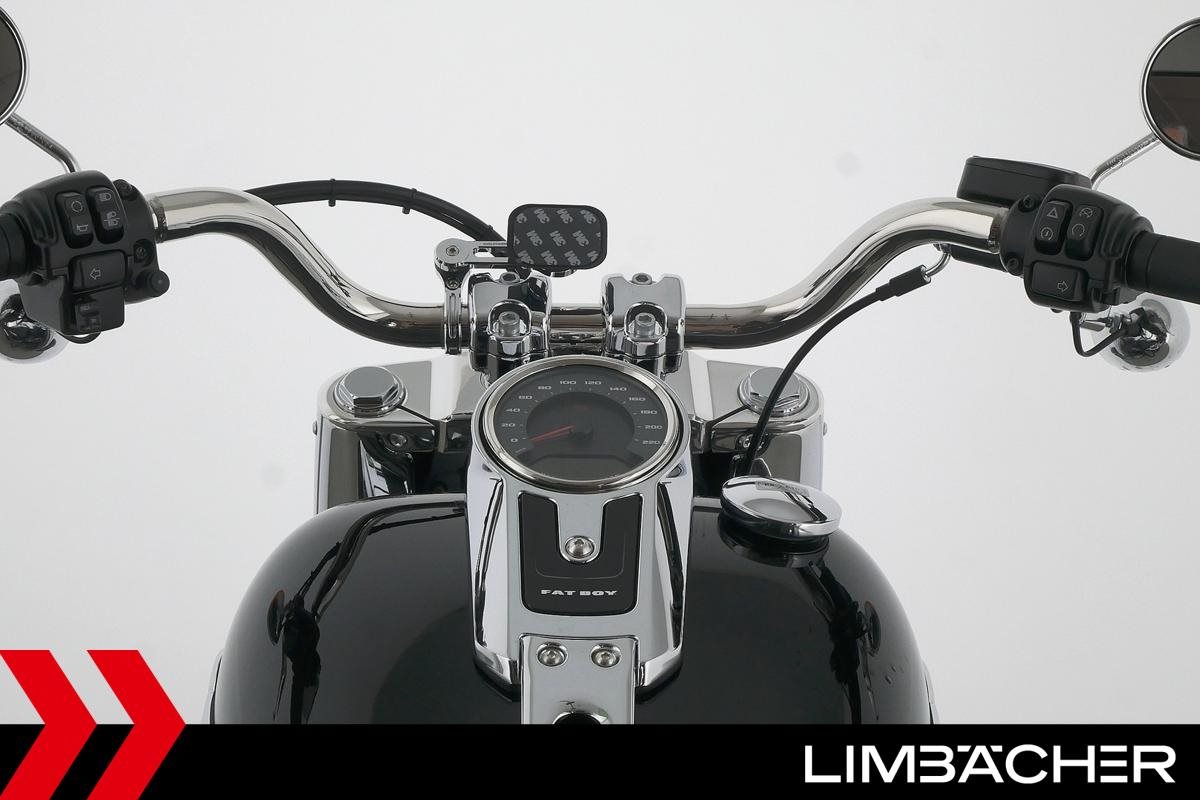 Eine Harley-Davidson Softail Fat Boy 114 FLFBS aus erster Hand in neuwertigem Zustand u.a. mit Jekill&Hyde-Klappenauspuff sowie Sturzbügel in schwarz.