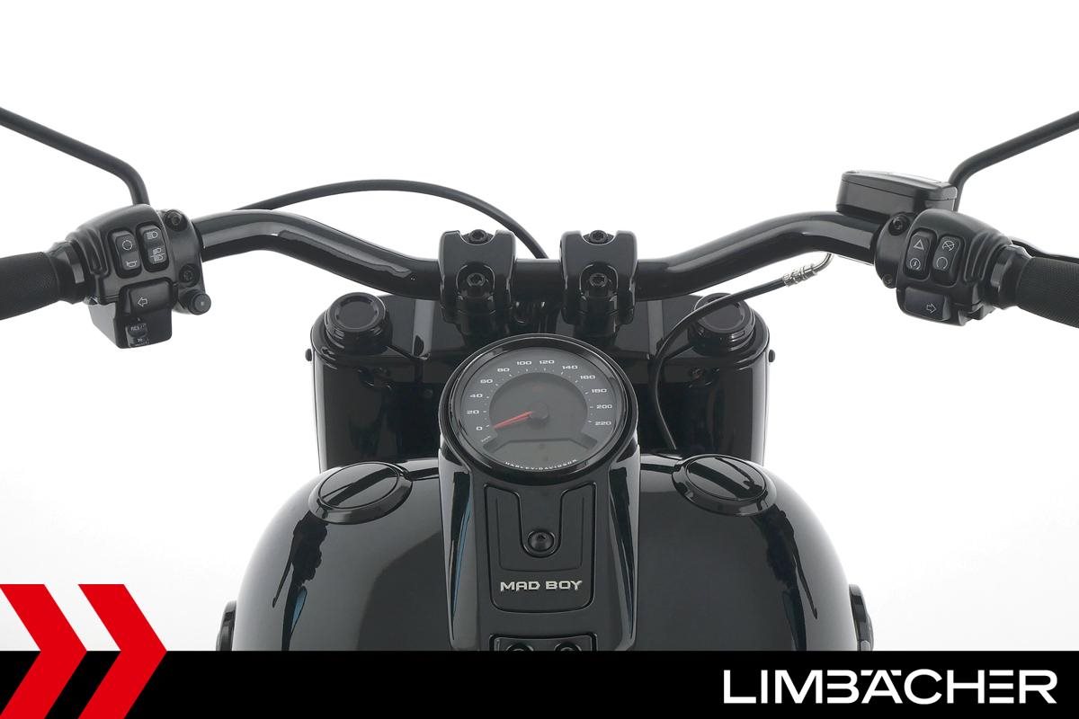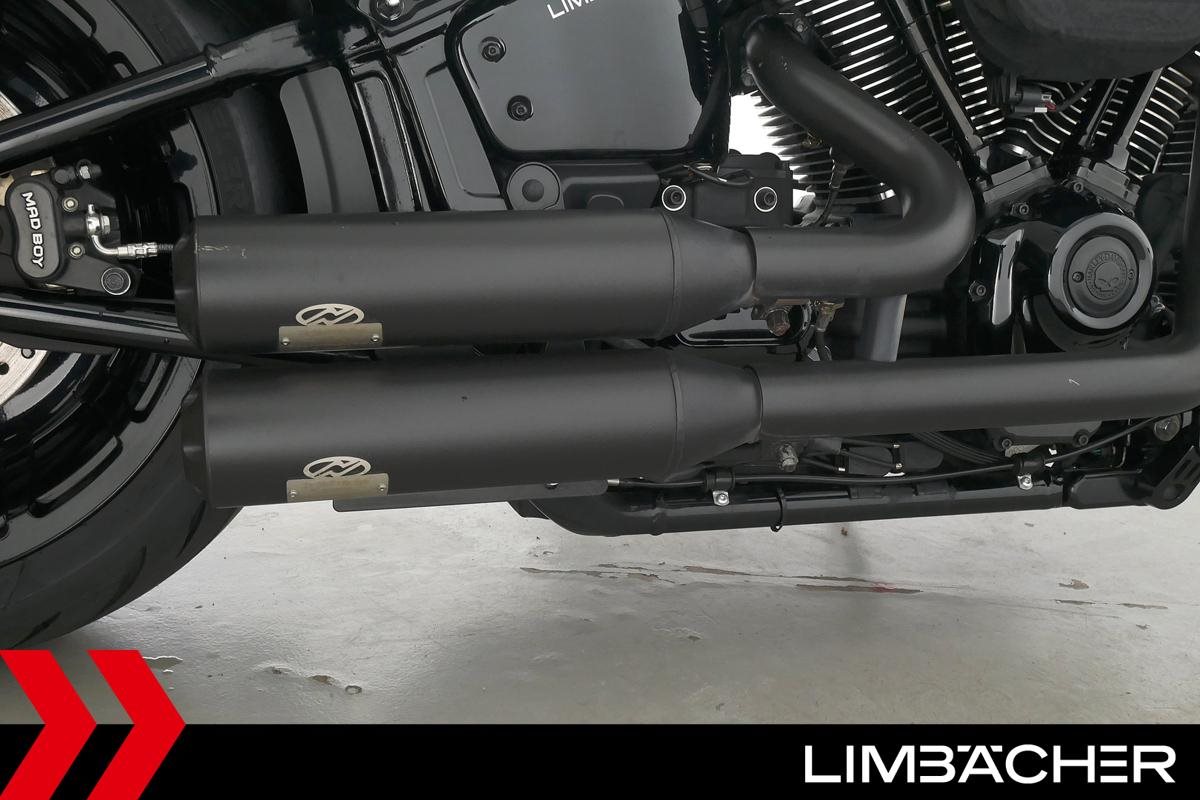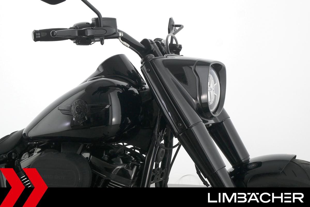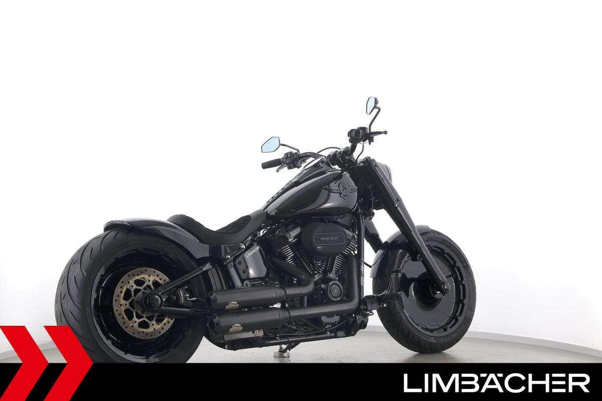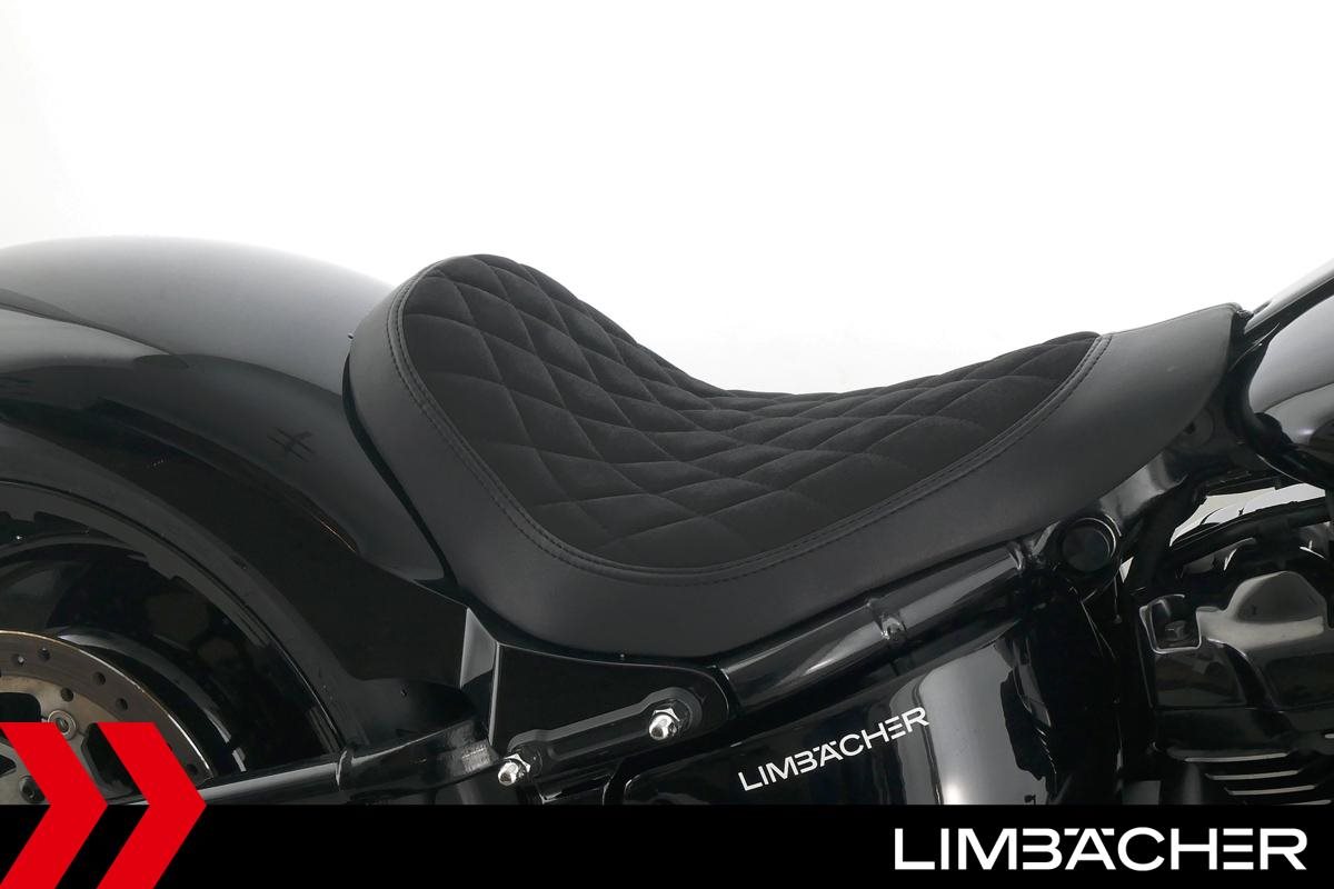 Eine scheckheftgepflegte Harley-Davidson Softail Fat Boy 114 FLFBS aus erster Hand in sehr gepflegtem Zustand u.a. mit Thunderbike-Heckumbau sowie Jekill&Hyde-Klappenauspuff.