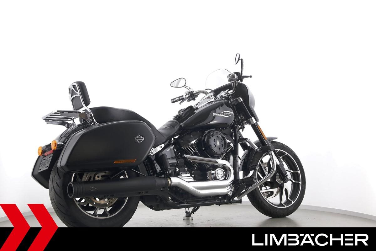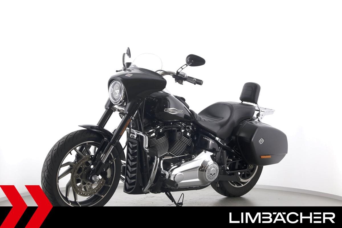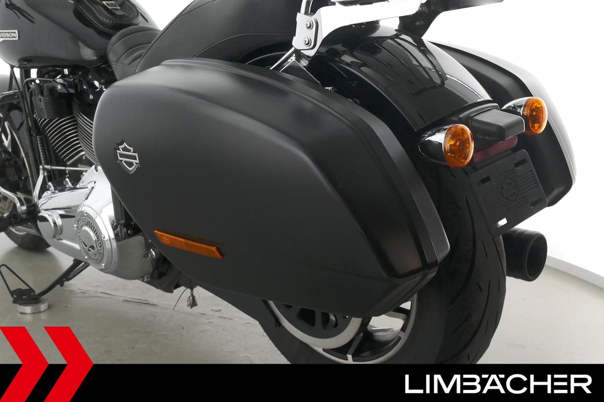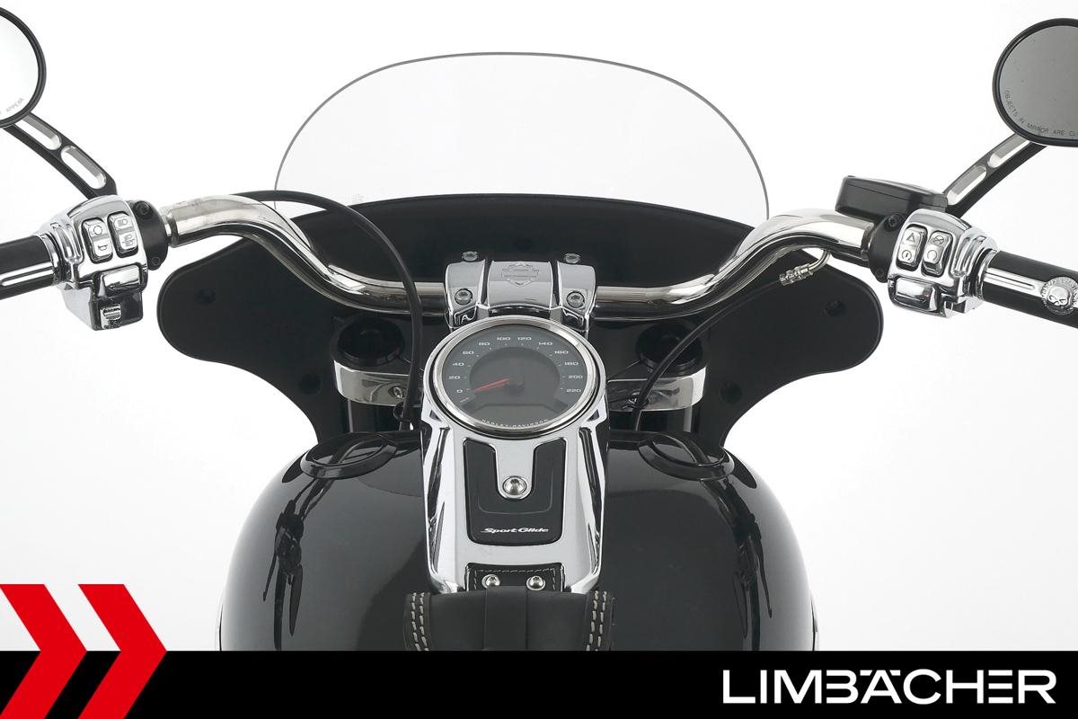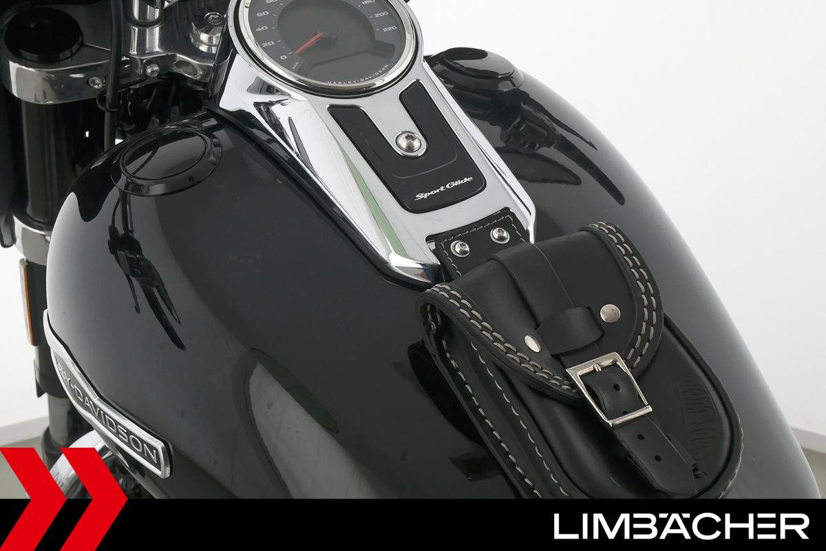 Eine scheckheftgepflegte Harley-Davidson Softail Sport Glide FLSB aus erster Hand in Topzustand u.a. mit MCJ-Klappenauspuff manuell sowie Komfort-Sitzbank.