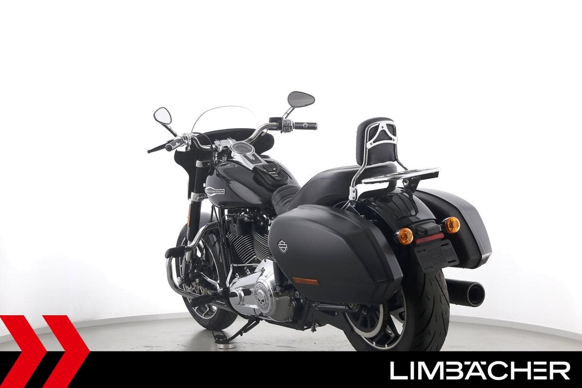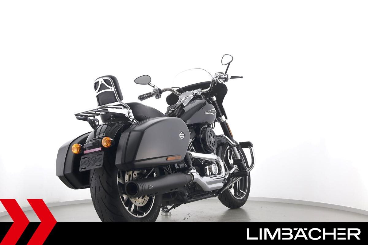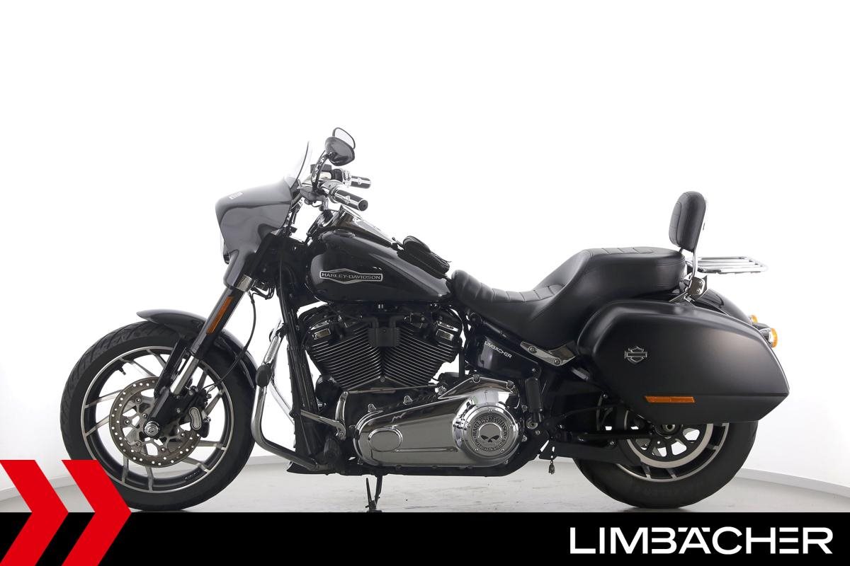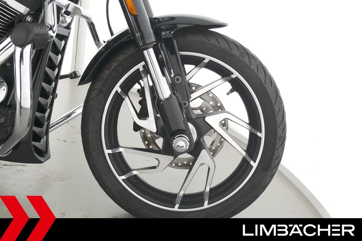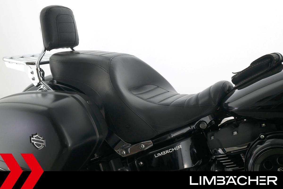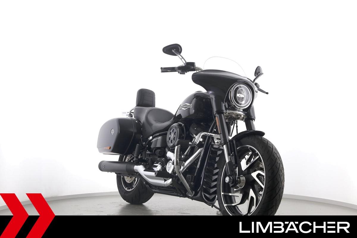 Eine scheckheftgepflegte Harley-Davidson Softail Sport Glide FLSB aus erster Hand in Topzustand u.a. mit MCJ-Klappenauspuff manuell sowie Komfort-Sitzbank.