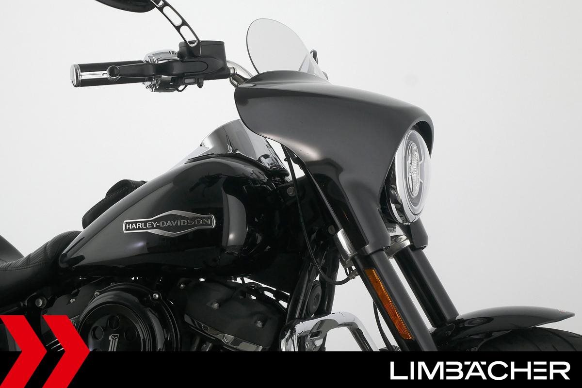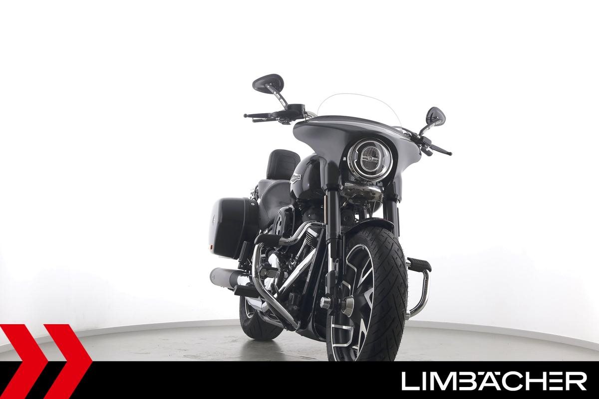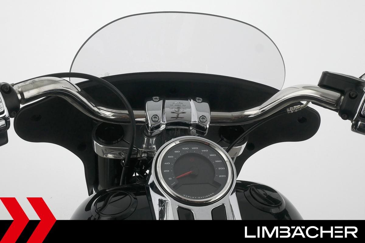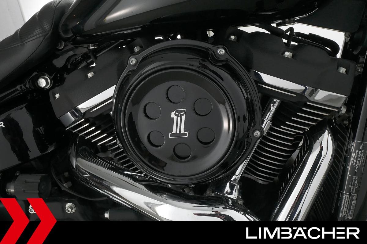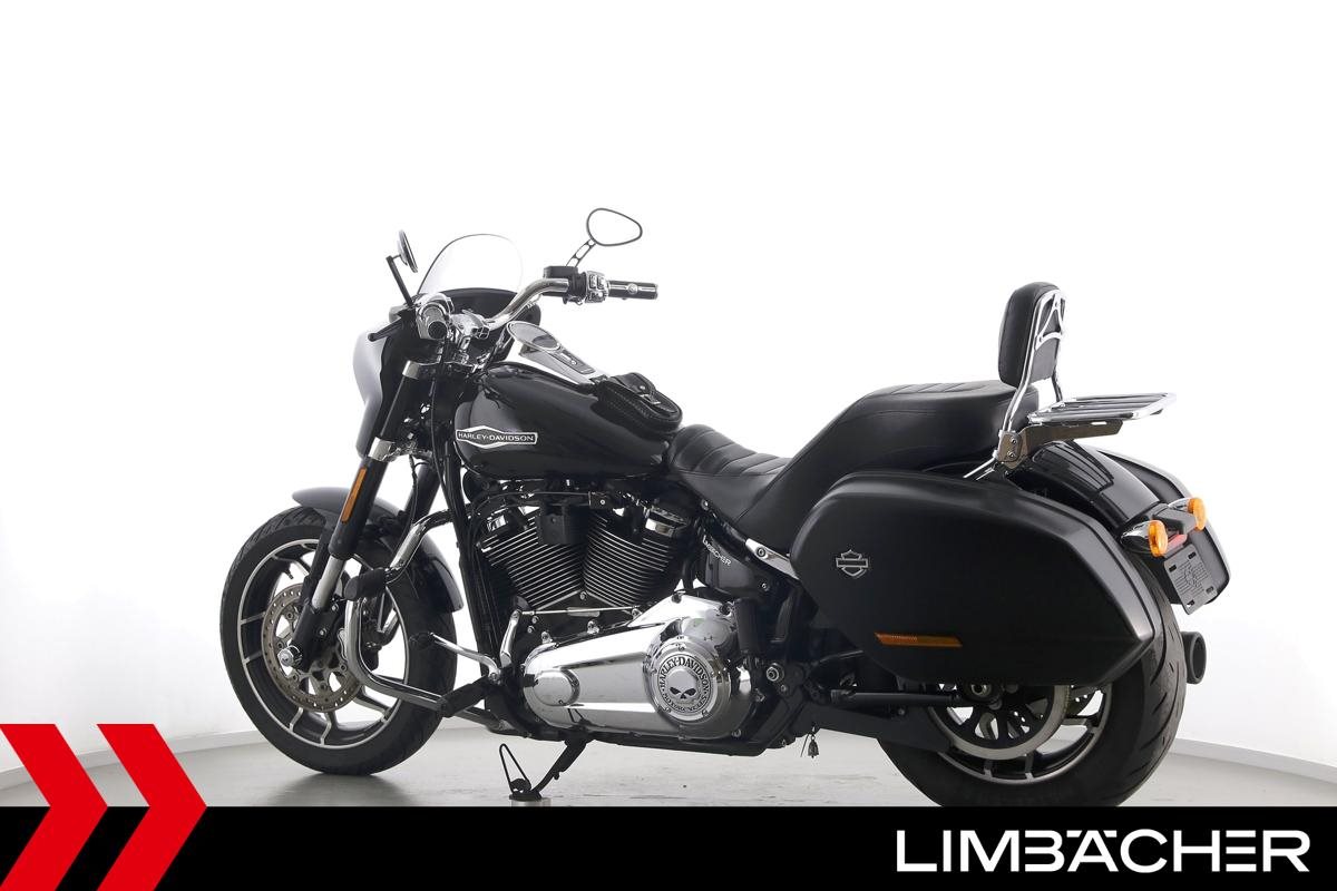 Eine scheckheftgepflegte Harley-Davidson Softail Sport Glide FLSB aus erster Hand in Topzustand u.a. mit MCJ-Klappenauspuff manuell sowie Komfort-Sitzbank.