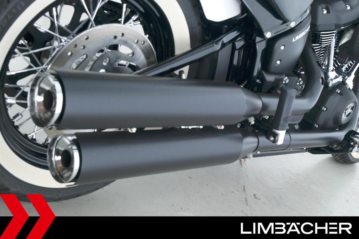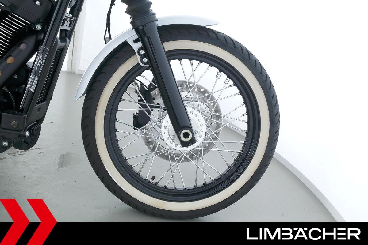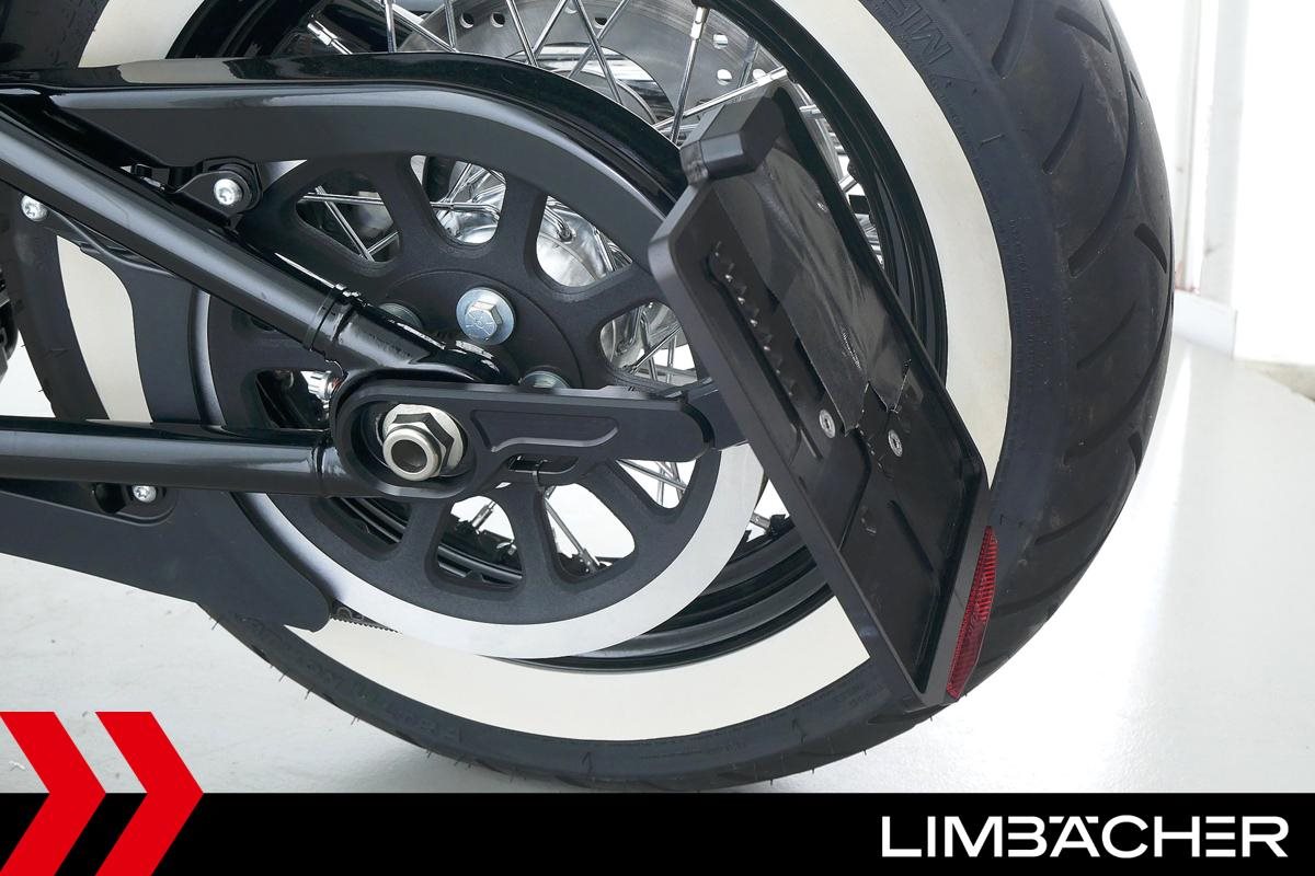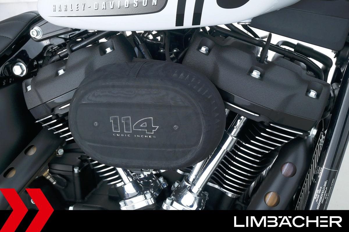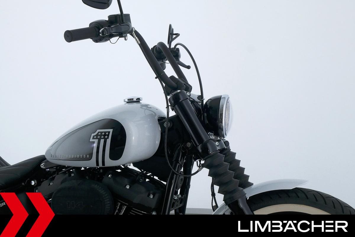 Eine Harley-Davidson Softail Street Bob 114 FXBBS aus erster Hand in Topzustand u.a. mit gesteppten Komfort-Ledersitzen sowie Kellermann-3in1-LED-Micro-Blinkern hinten.