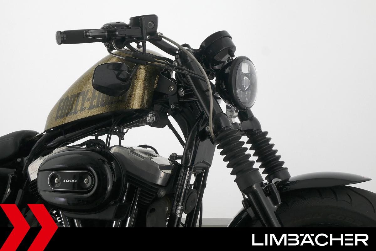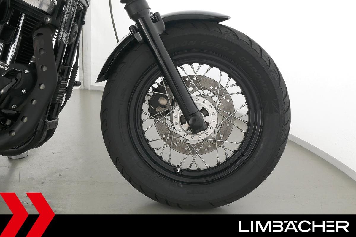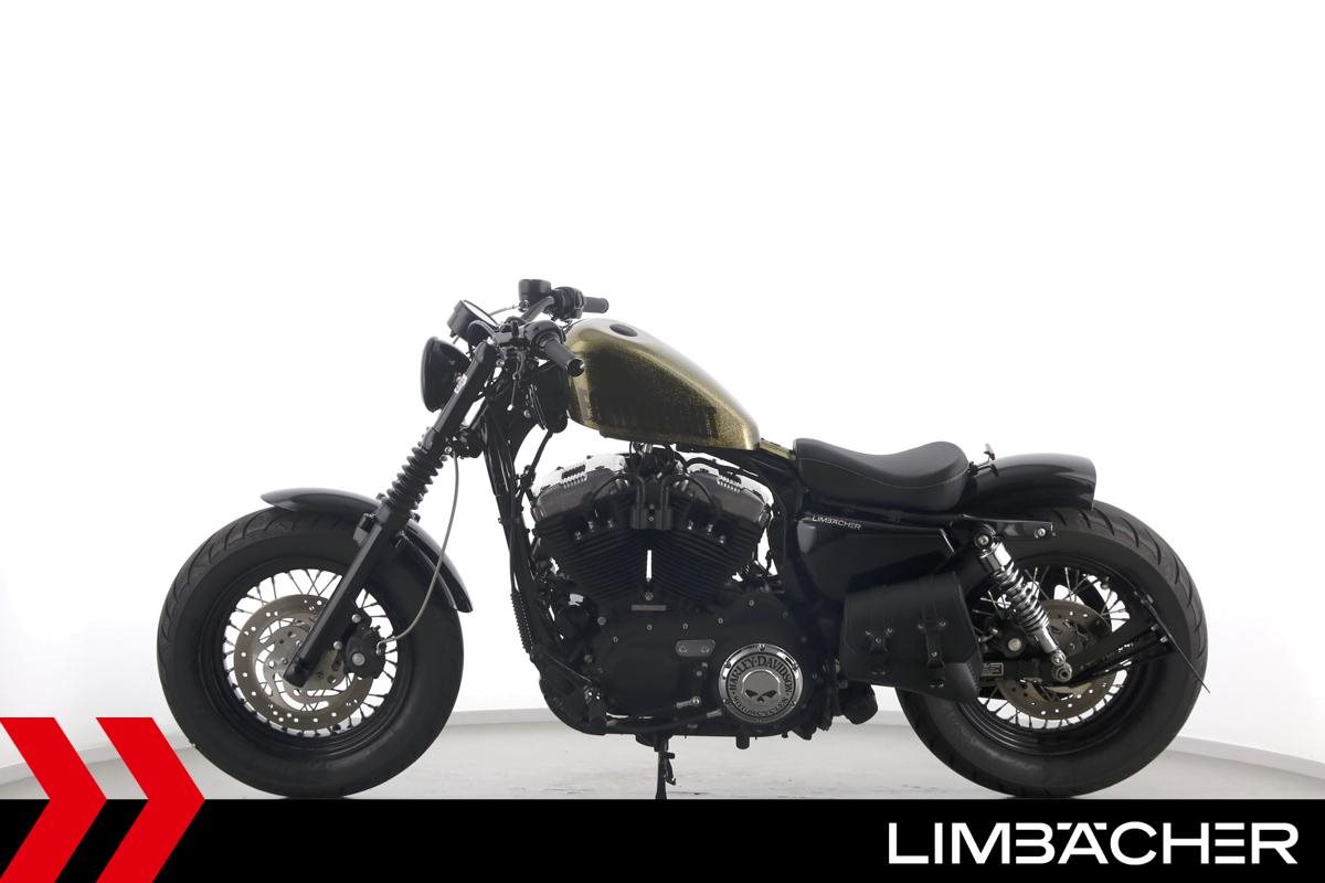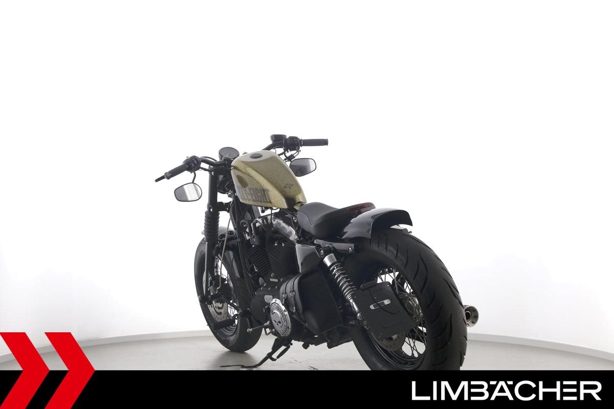Eine Harley-Davidson Sportster XL 1200 X Forty Eight in gepflegtem Zustand u.a. mit Falcon-Endschalldämpfer sowie Wunderkind-Brems- und -Kupplungshebel.