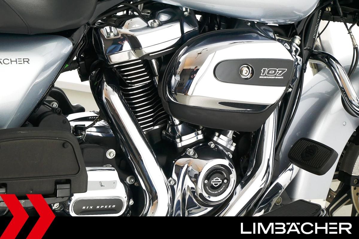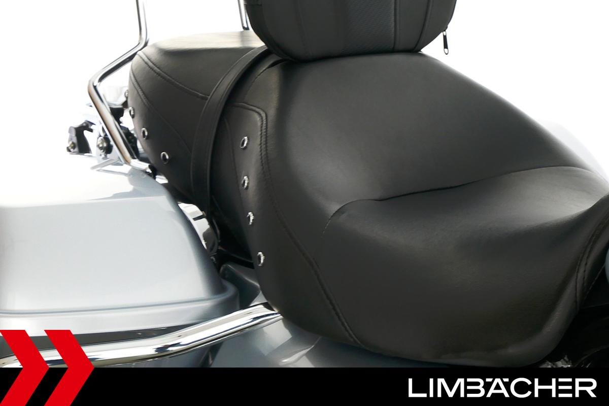 Eine Harley-Davidson Road King FLHR aus zweiter Hand in gepflegtem Zustand u.a. mit Windschild und HD-Koffersystem.