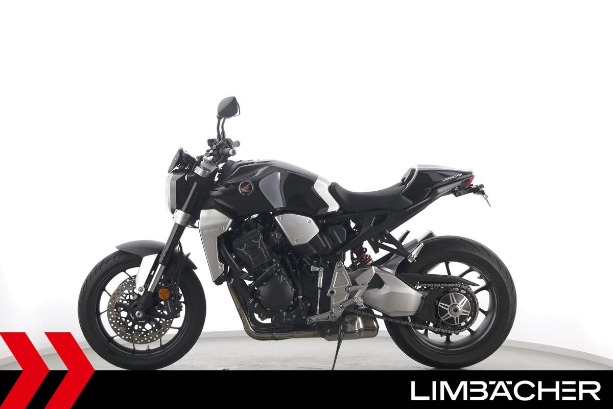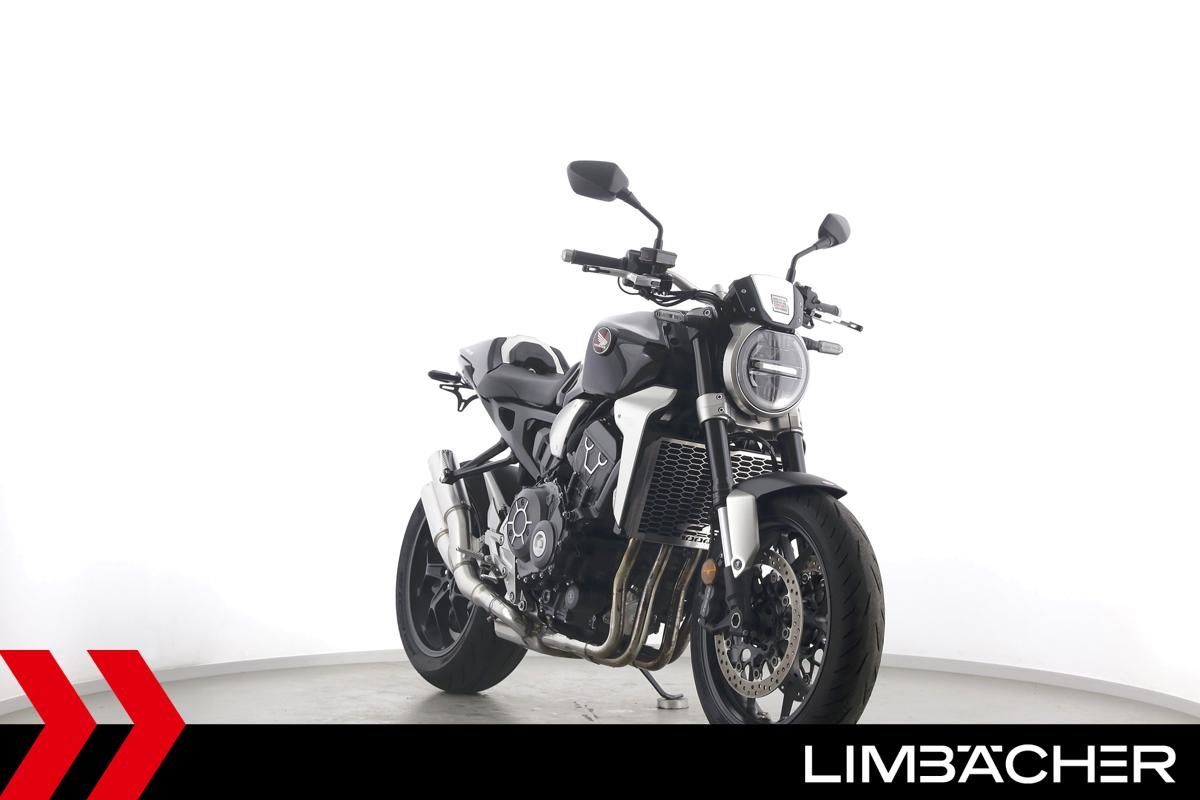 Eine scheckheftgepflegte Honda CB 1000 R aus zweiter Hand in sehr gepflegtem Zustand u.a. mit Shark-Endschalldämpfer sowie Synto-Brems- und -Kuppungshebel.