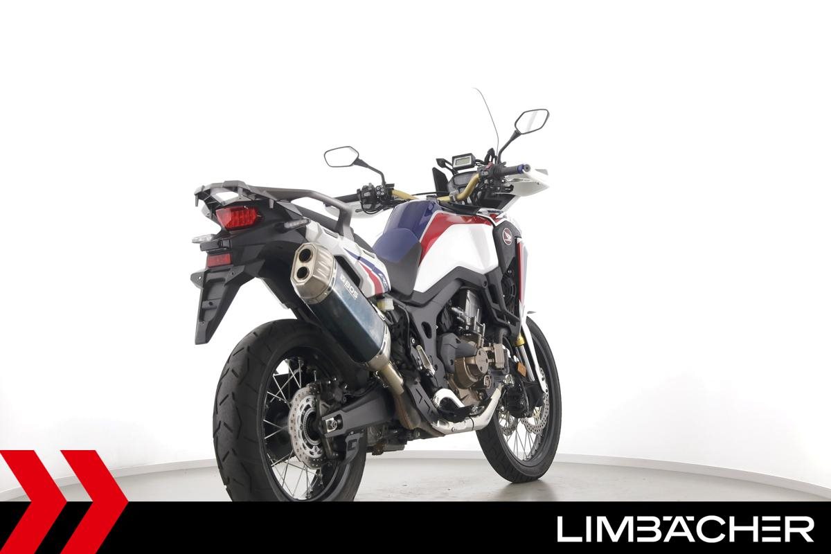 Eine Honda CRF 1000 L Africa Twin DCT in gepflegtem Zustand u.a. mit BOS-Endschalldämpfer sowie DCT-Automatik.