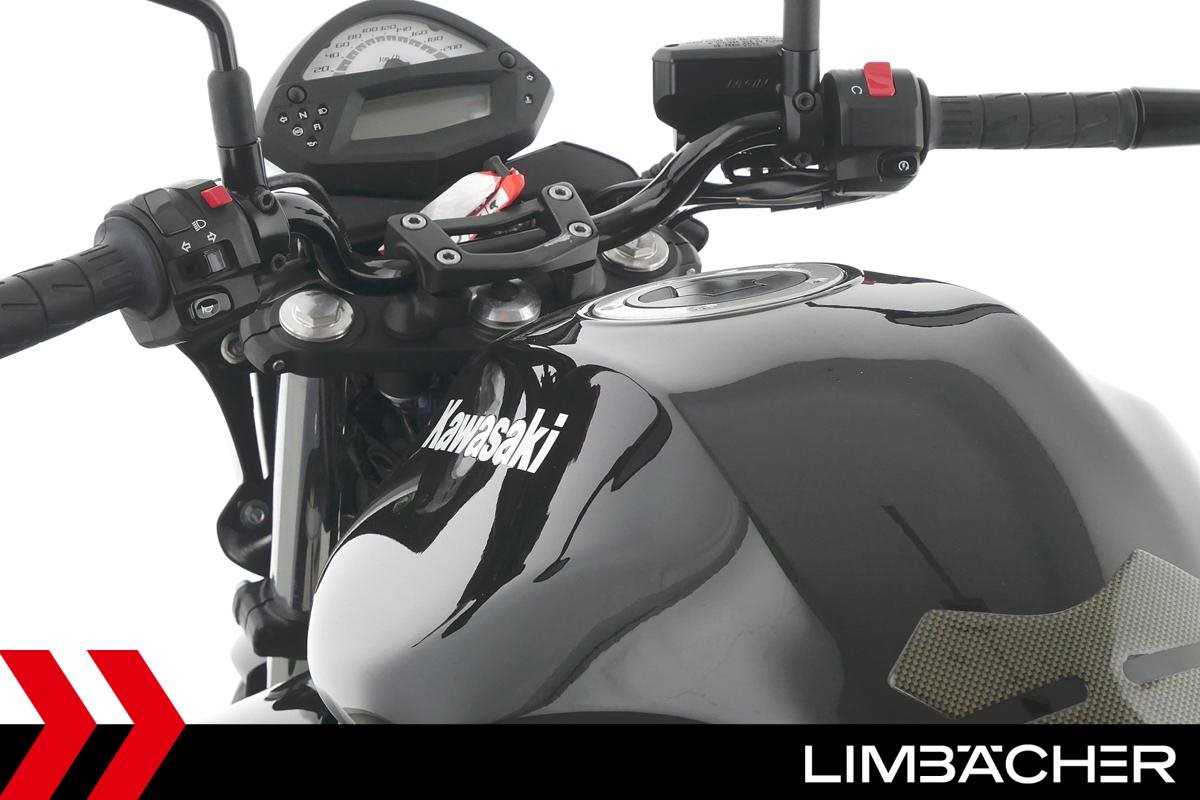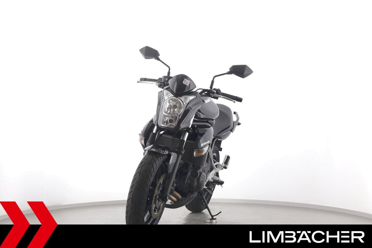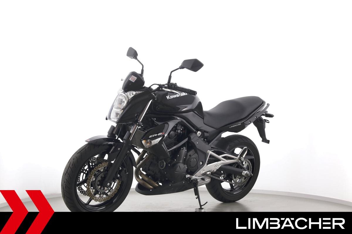 Eine Kawasaki ER-6n aus zweiter Hand in gepflegtem Zustand mit Tankpad.