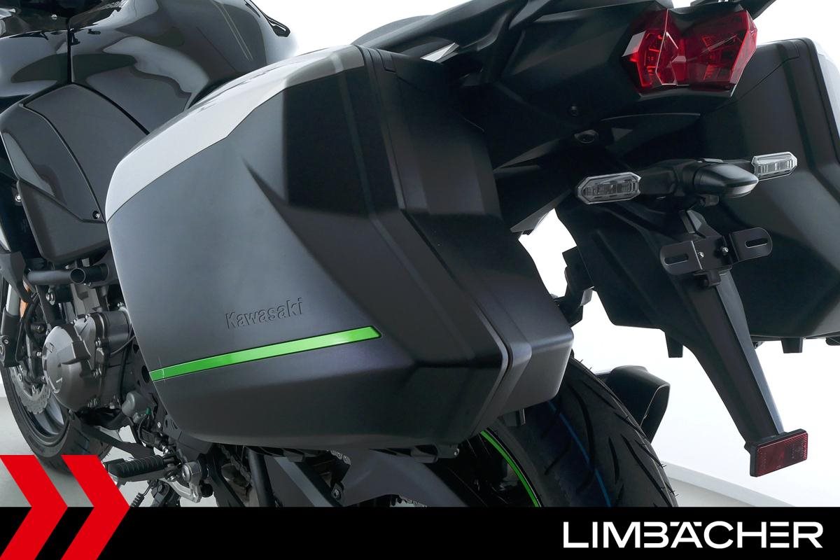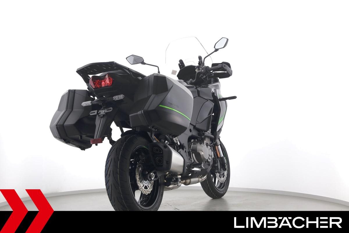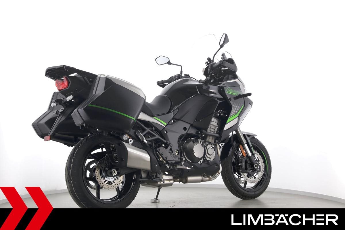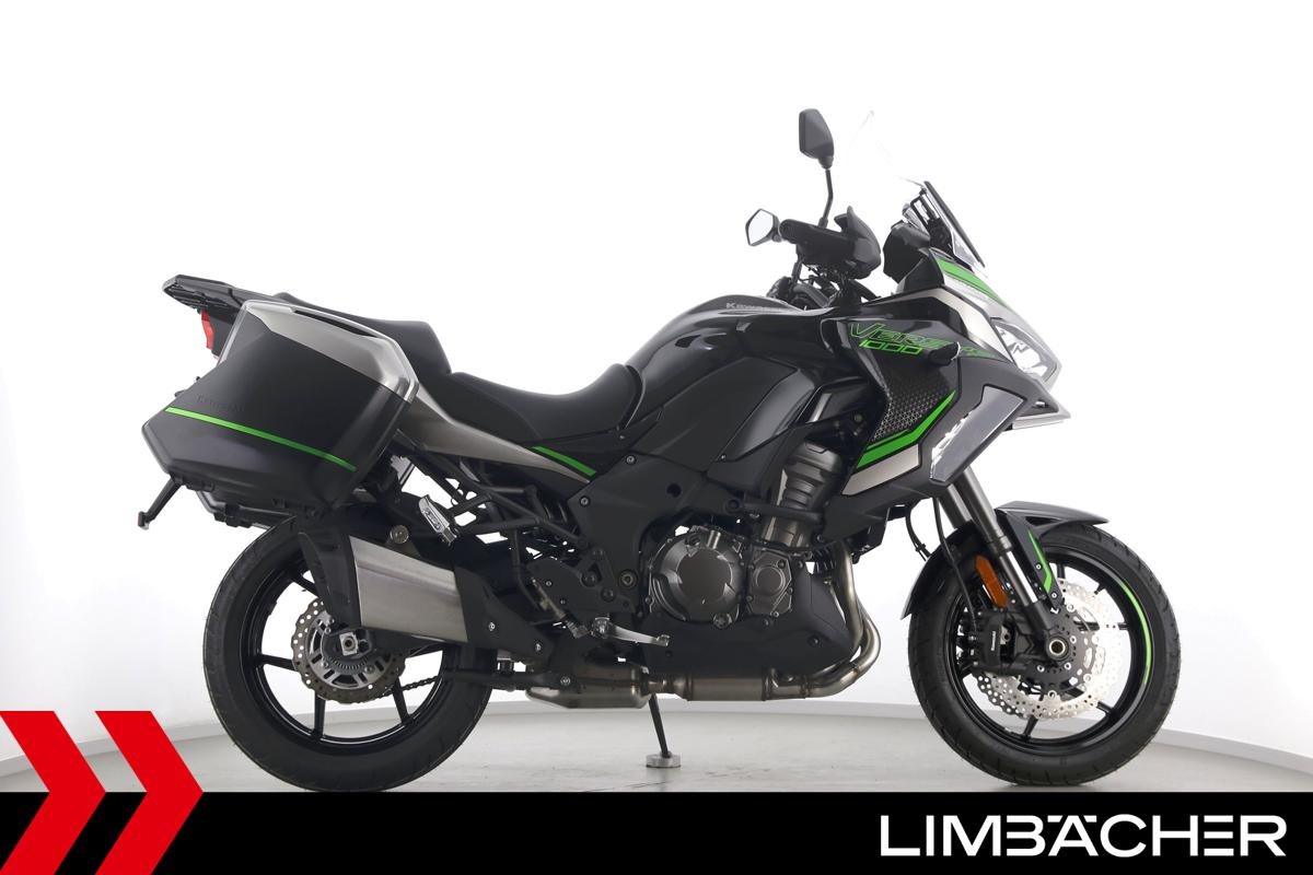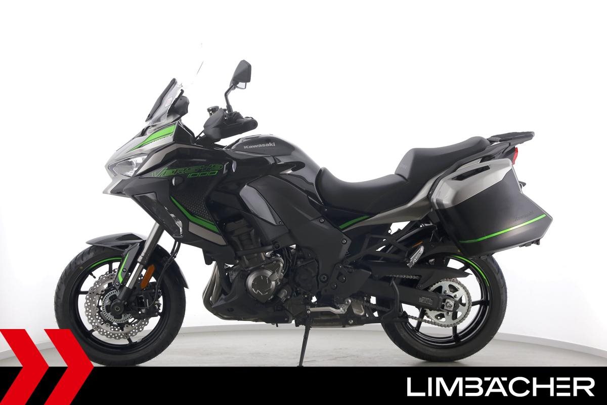 Eine Kawasaki Versys 1000 SE als Neufahrzeug u.a. mit Kawasaki-Koffersystem gleichschließend sowie einem Schaltassistenten.