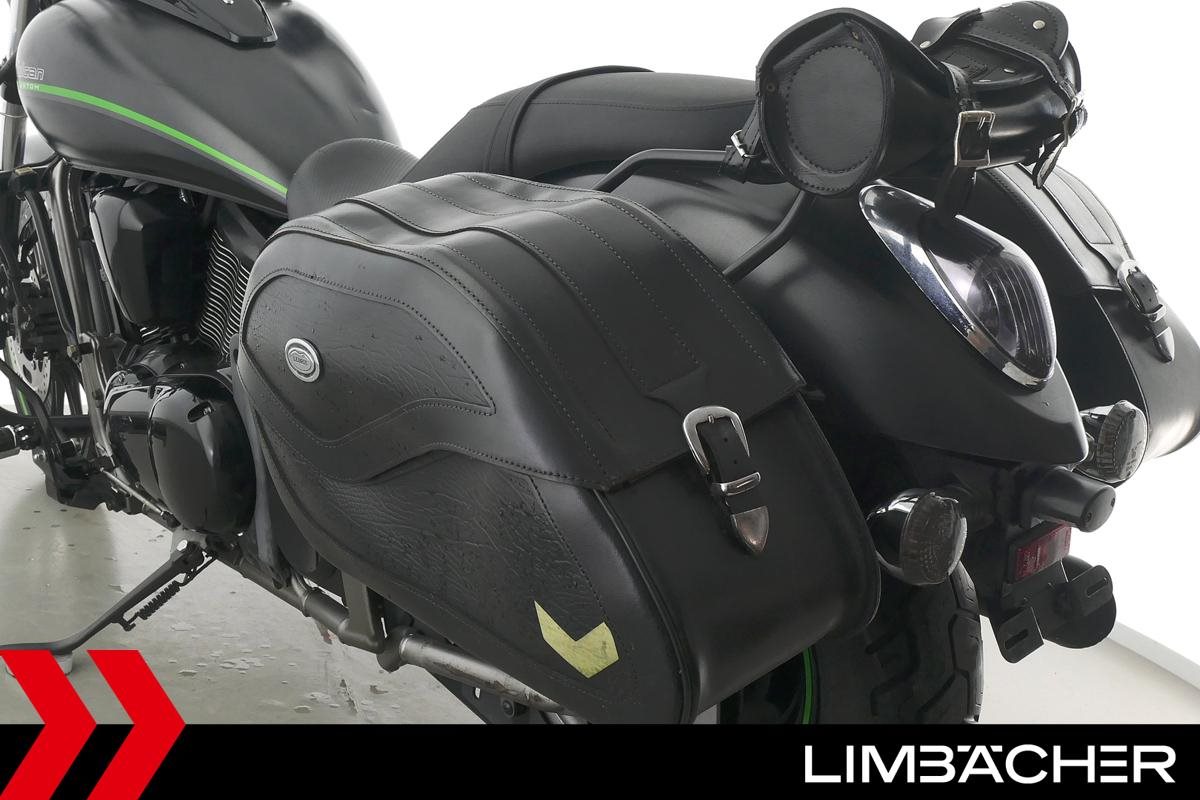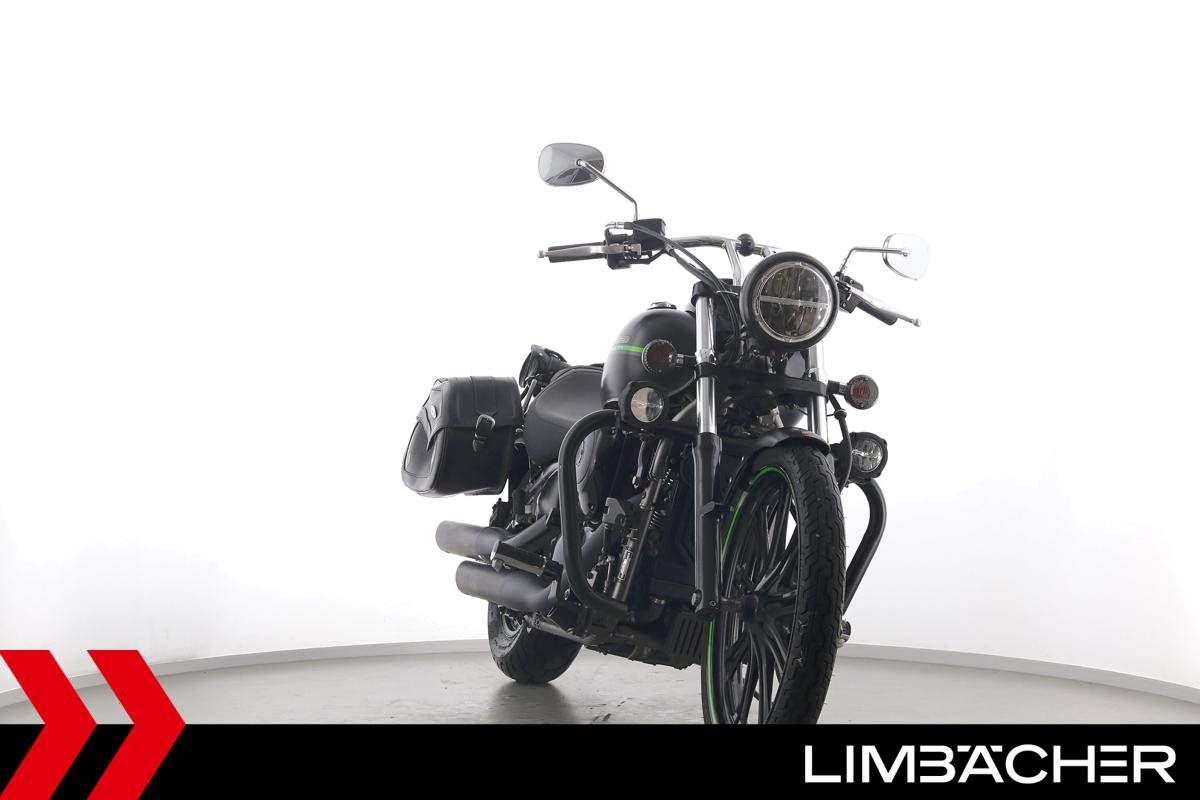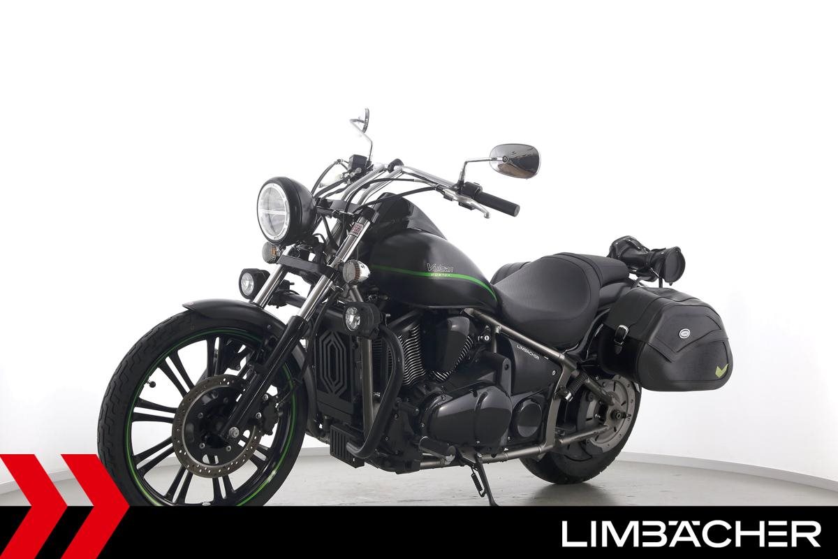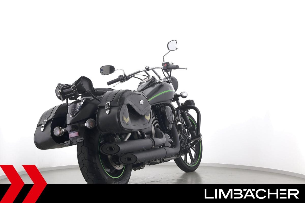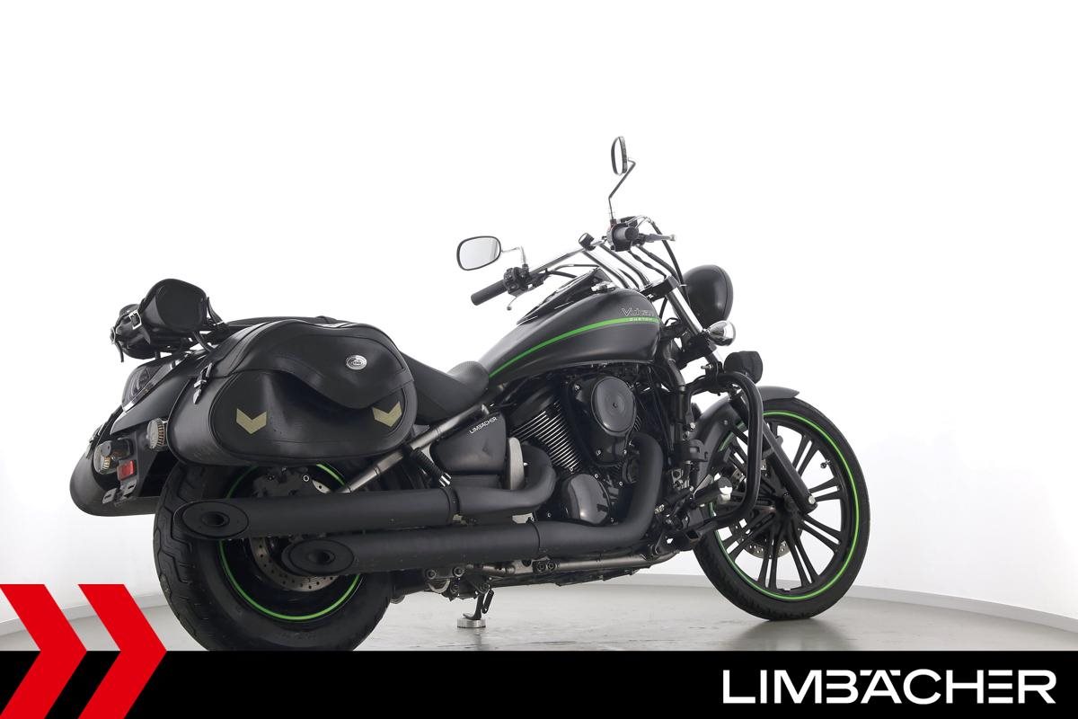 Eine Kawasaki VN 900 Custom aus zweiter Hand in gepflegtem Zustand u.a. mit Sturzbügel in schwarz sowie Zusatzscheinwerfern.