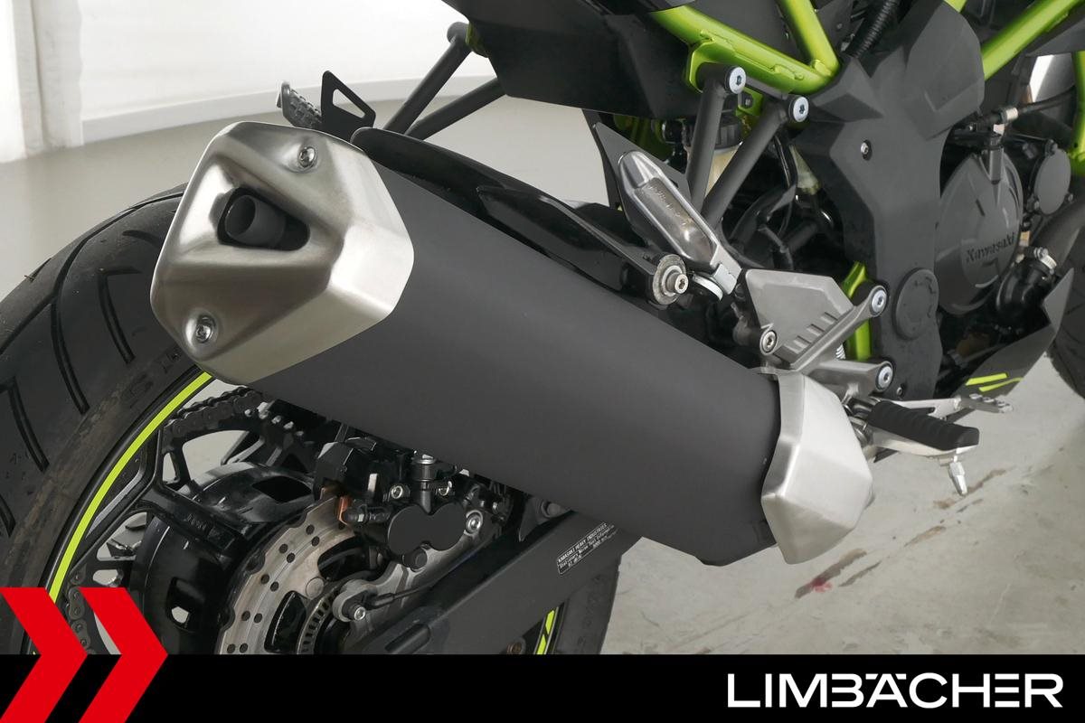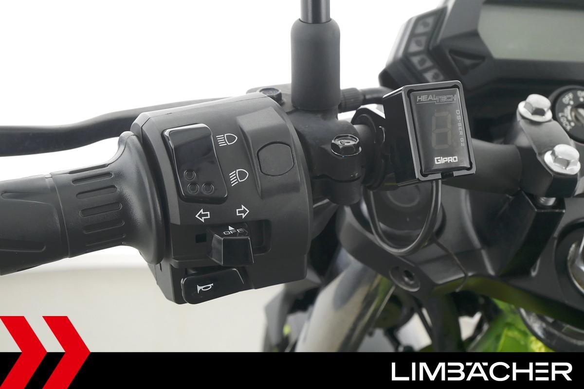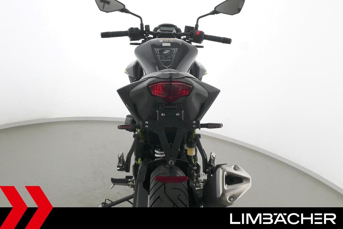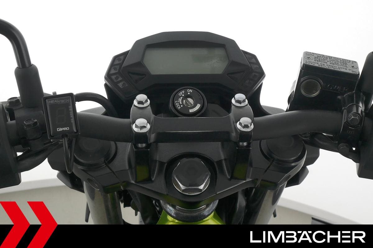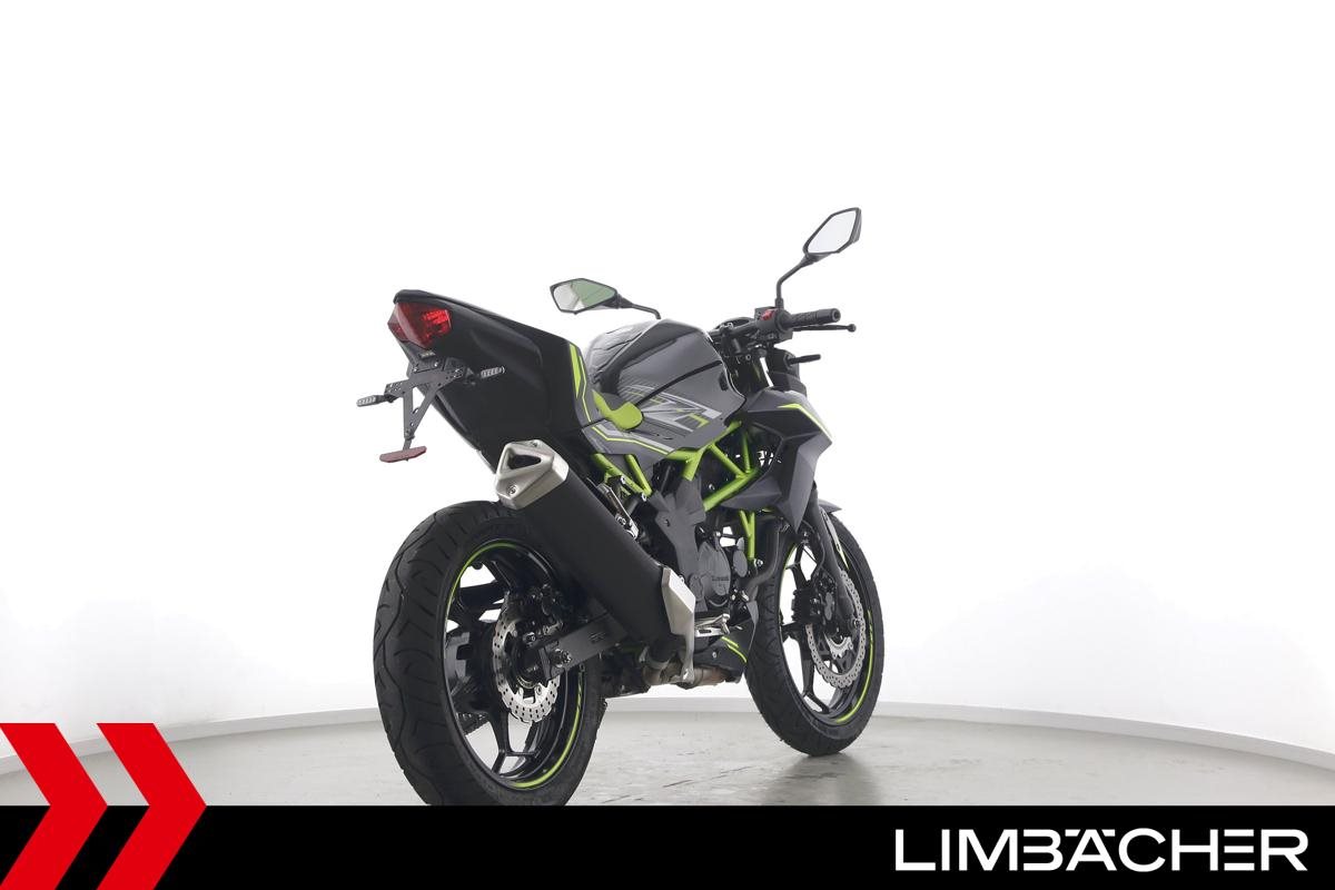 Eine scheckheftgepflegte Kawasaki Z 125 in gepflegtem Zustand u.a. mit kurzem Kennzeichenhalter sowie Custom-Ganganzeige.