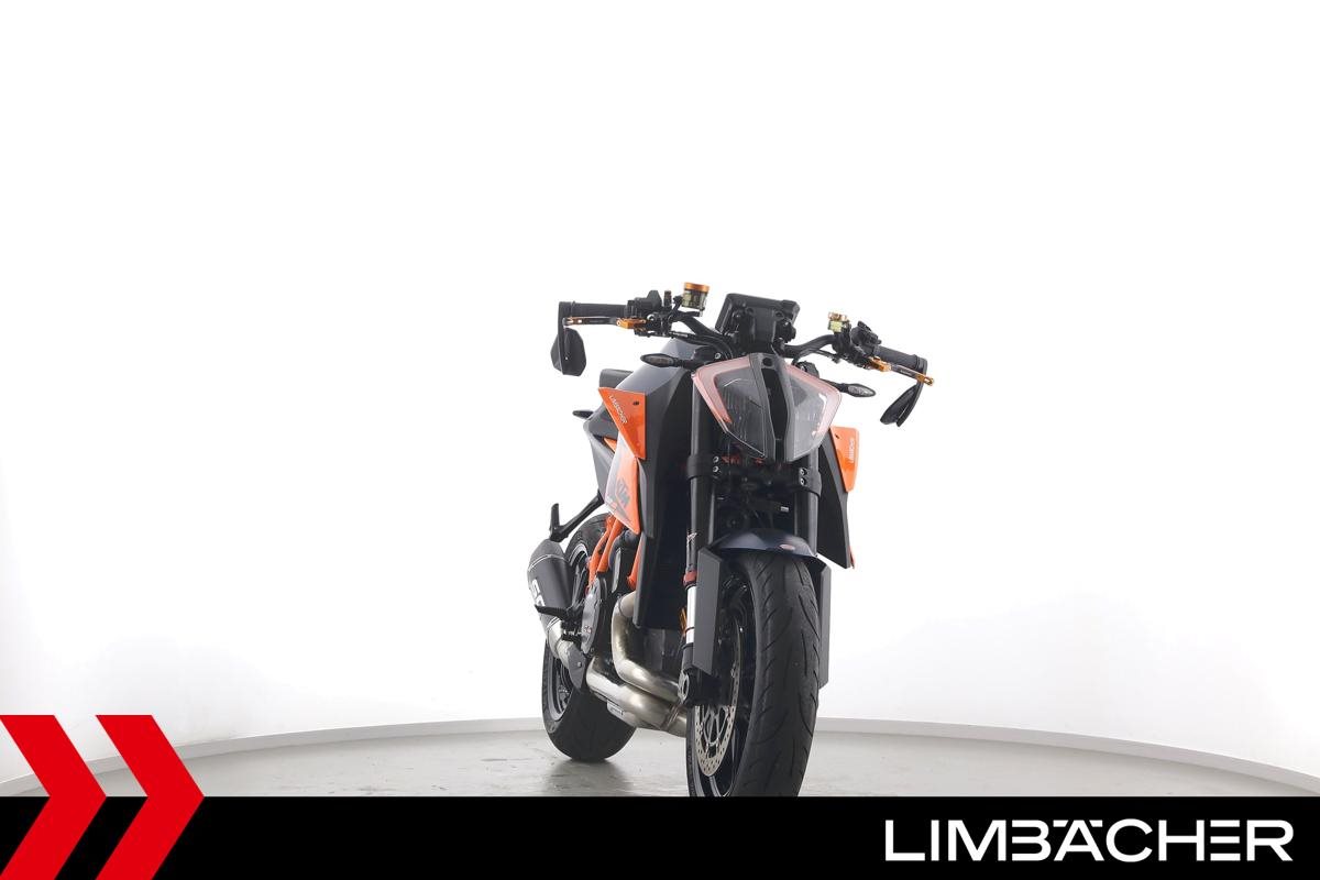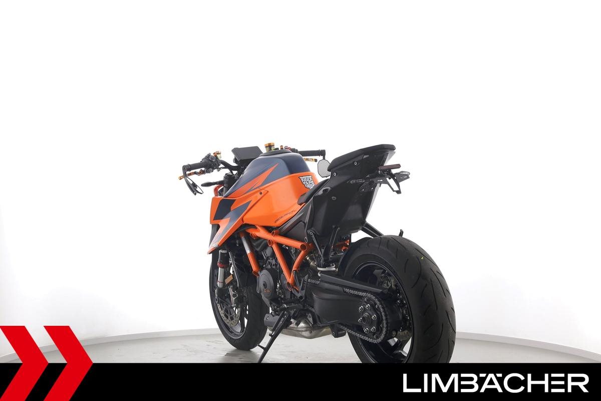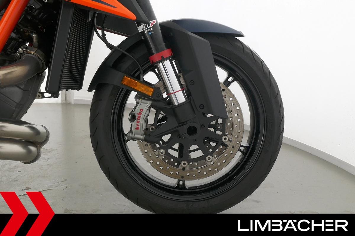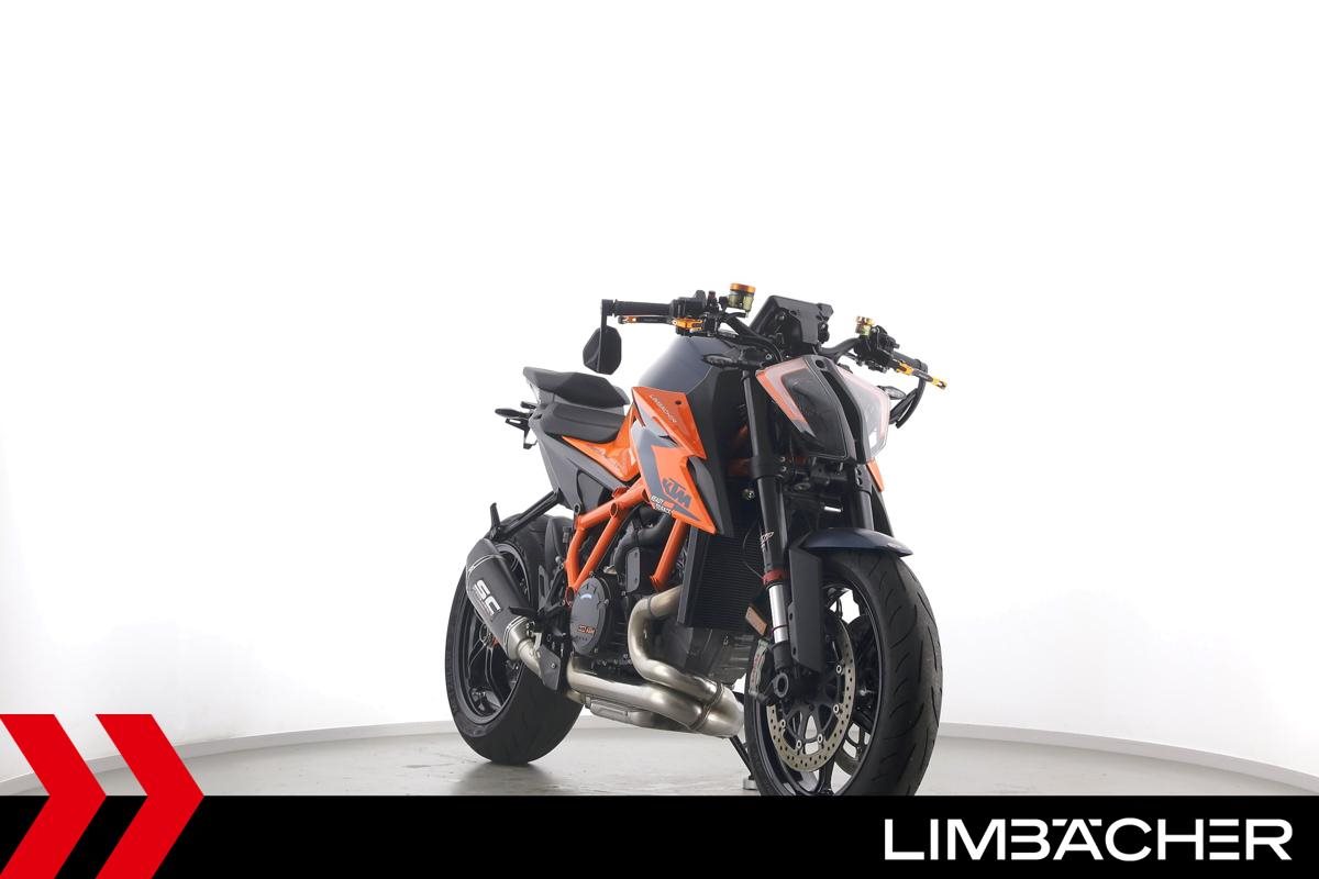 Eine KTM 1290 Super Duke R in sehr gepflegtem Zustand u.a. mit SC-Project-Endschalldämpfer sowie kurzem Kennzeichenhalter.