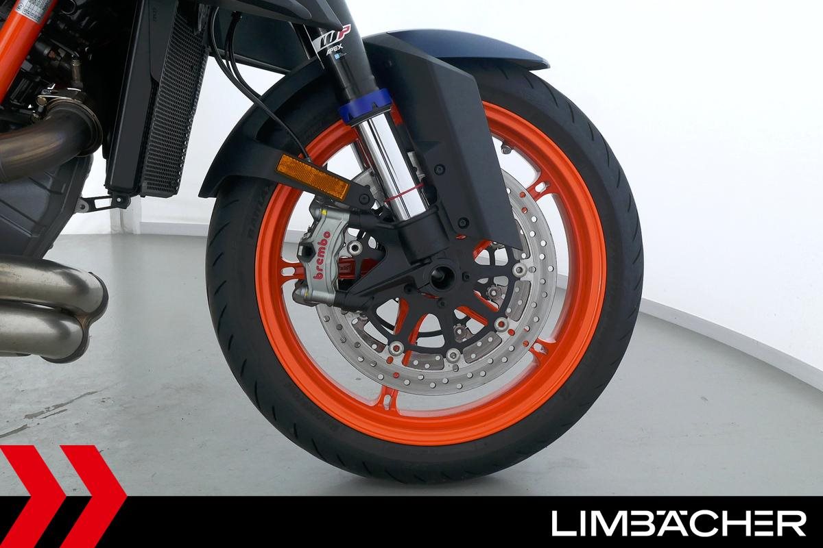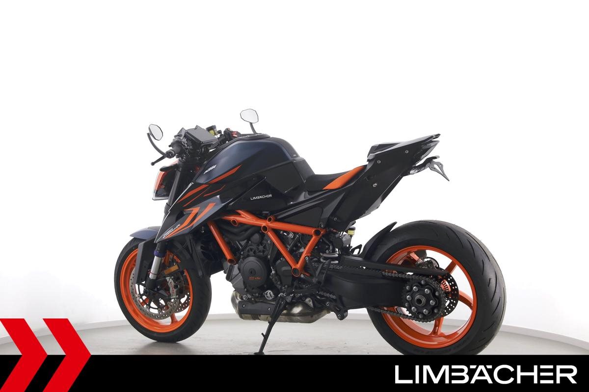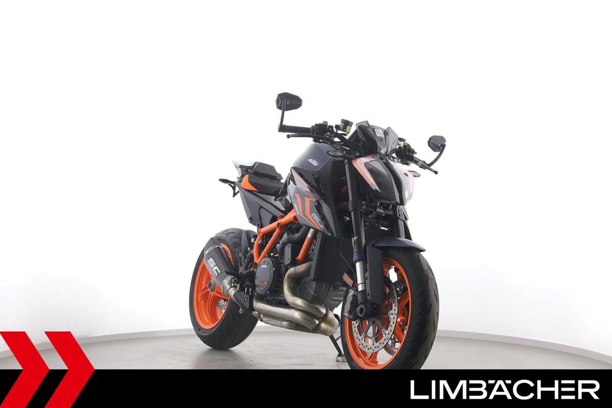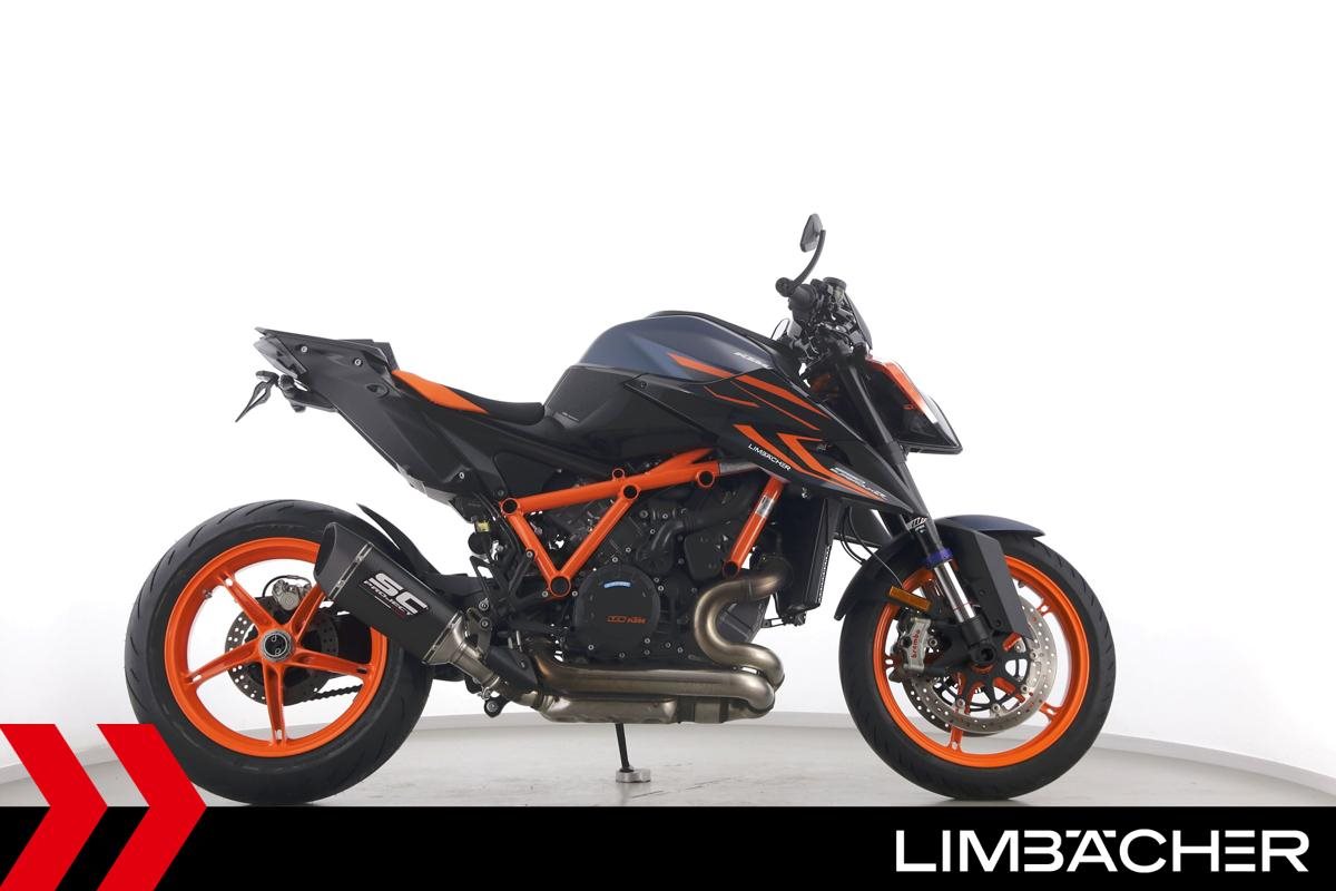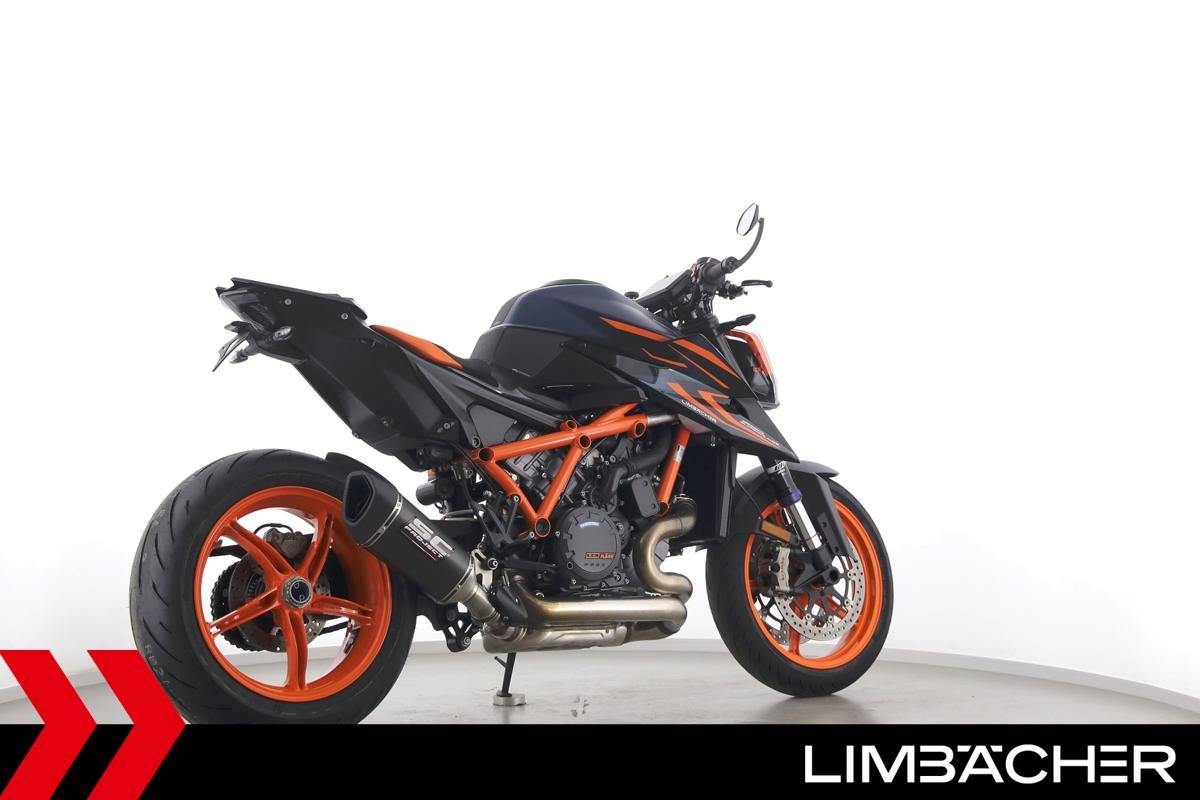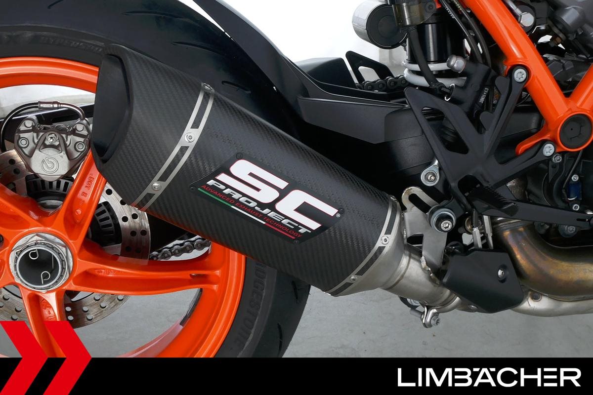 Eine scheckheftgepflegte KTM 1290 Super Duke R Evo aus zweiter Hand in Topzustand u.a. mit SC-Project-Endschalldämpfer sowie kurzem Kennzeichenhalter.