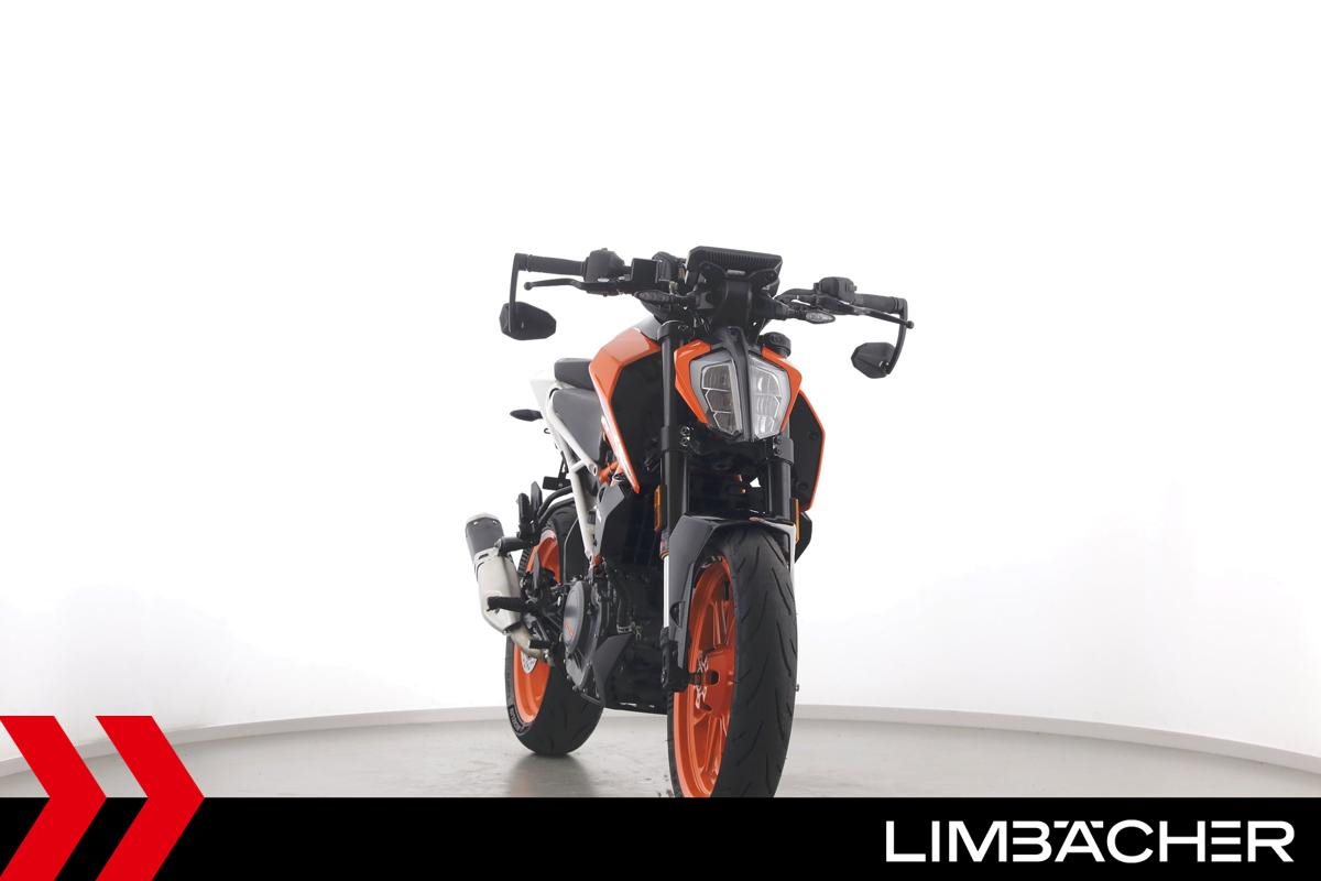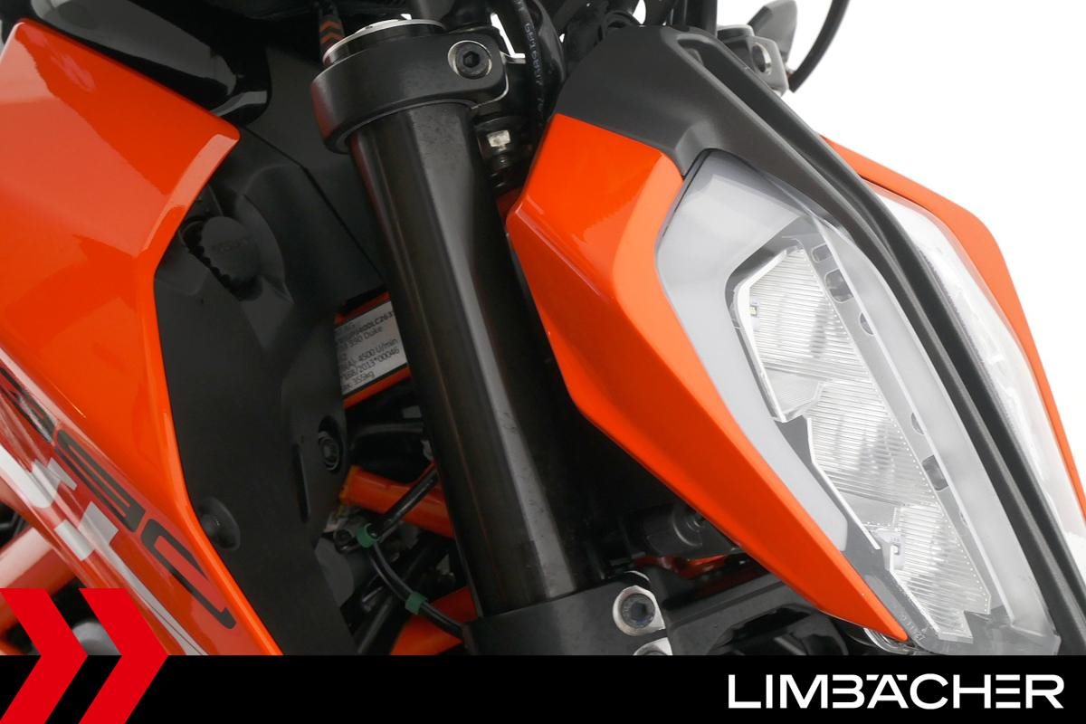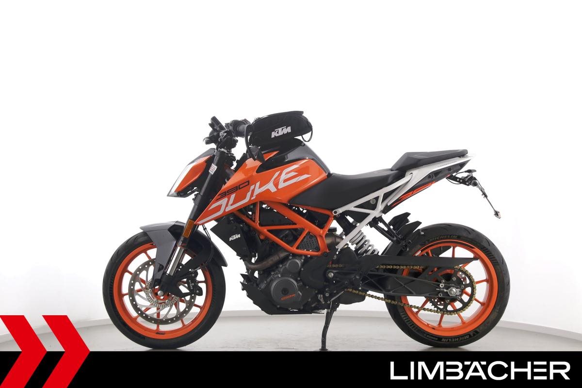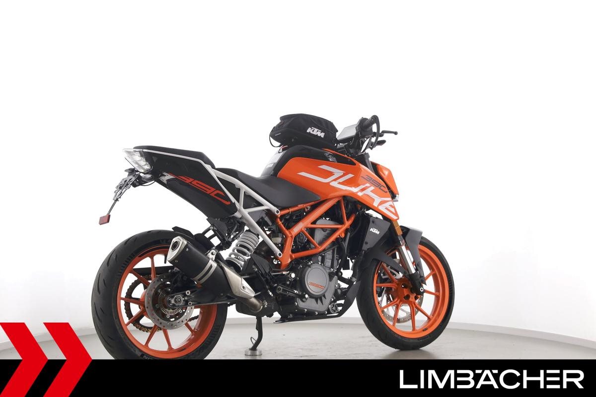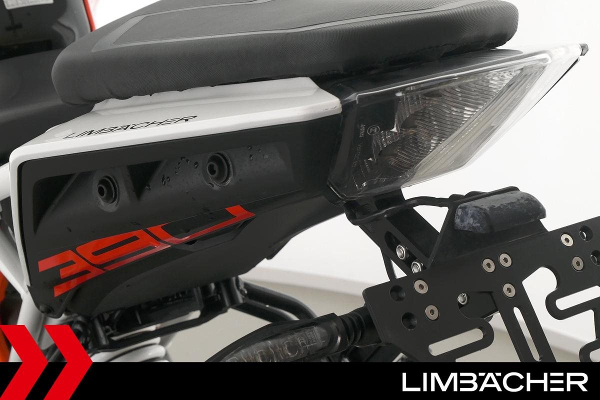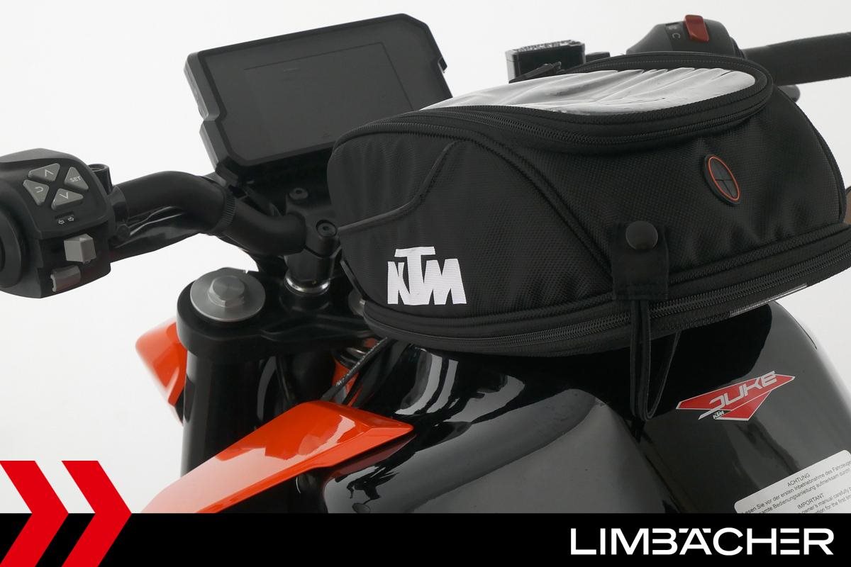 Eine scheckheftgepflegte KTM 390 Duke aus erster Hand in gepflegtem Zustand u.a. mit kurzem Kennzeichenhalter und KTM-Tankrucksack.