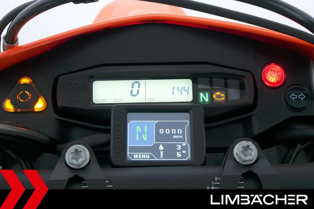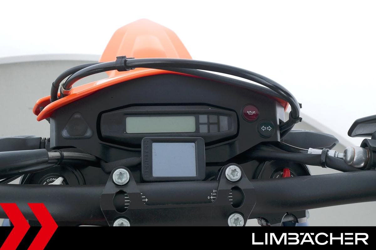 Eine KTM 690 SMC R aus erster Hand in sehr gepflegtem Zustand u.a. mit Traktionskontrolle sowie Cumpan Zusatzanzeige-Instrument.