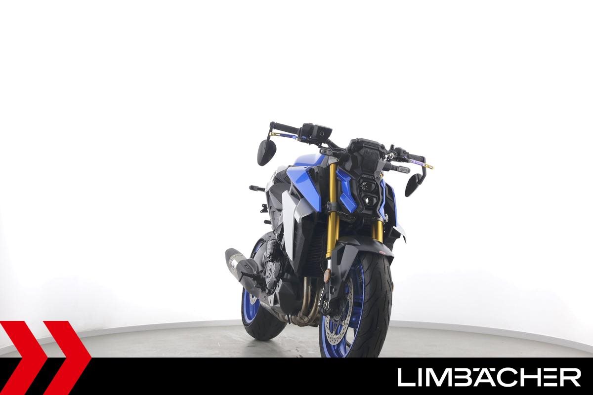 Eine scheckheftgepflegte Suzuki GSX-S 1000 aus zweiter Hand in gepflegtem Zustand u.a. mit Akrapovic-Endschalldämpfer sowie Raximo-Brems- und -Kupplungshebel.