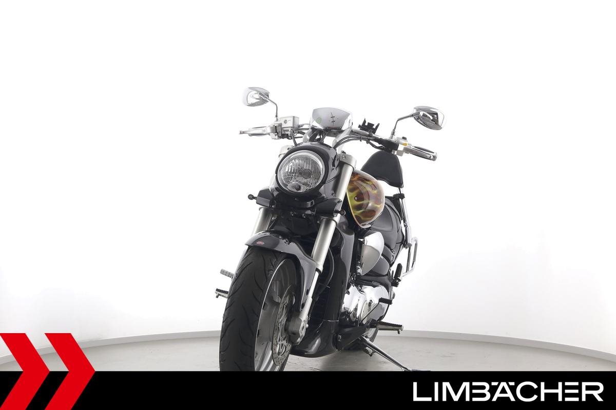 Eine Suzuki VZR M 1800 R Intruder in gepflegtem Zustand u.a. mit Supertrapp-Auspuff sowie Airbrush-Sonderlackierung.