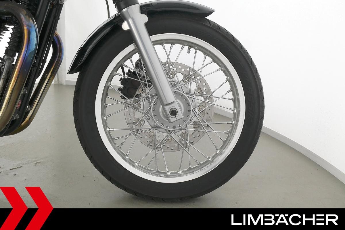 Wir bieten hier eine Triumph Thruxton. Alle unsere Fahrzeuge werden mit mindestens einem Jahr TÜV übergeben.