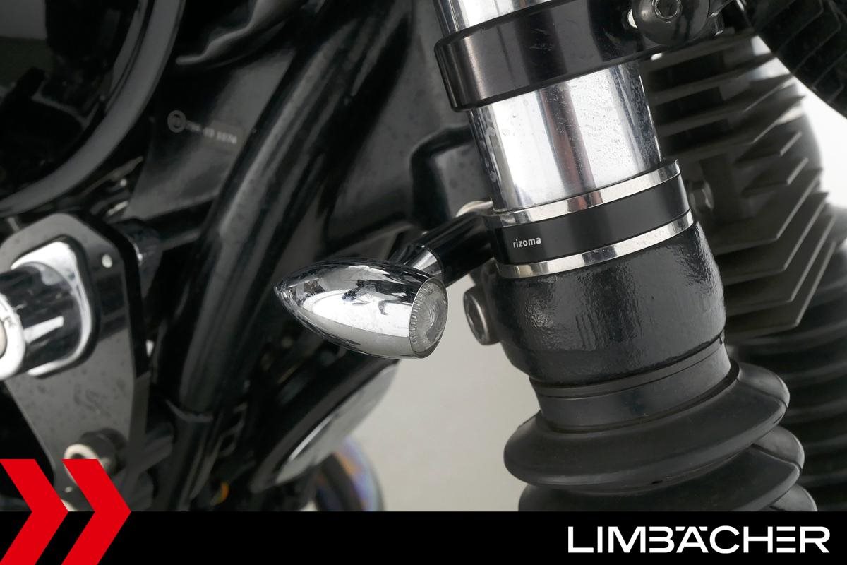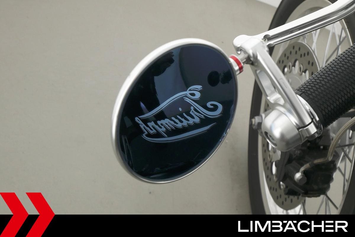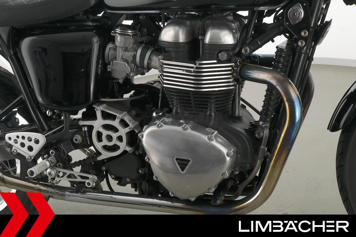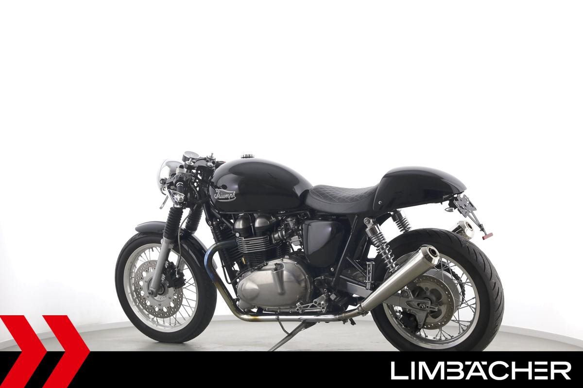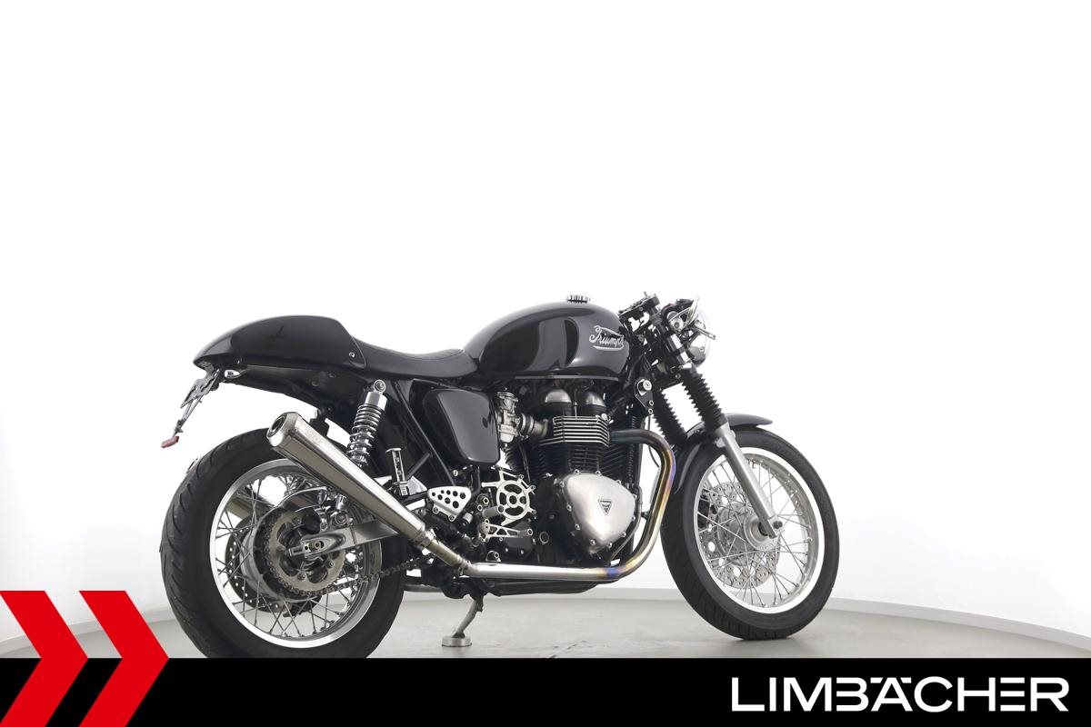 Eine Triumph Thruxton in gepflegtem Zustand u.a. mit Lenkerendspiegeln sowie Sonderlenker LSL.
